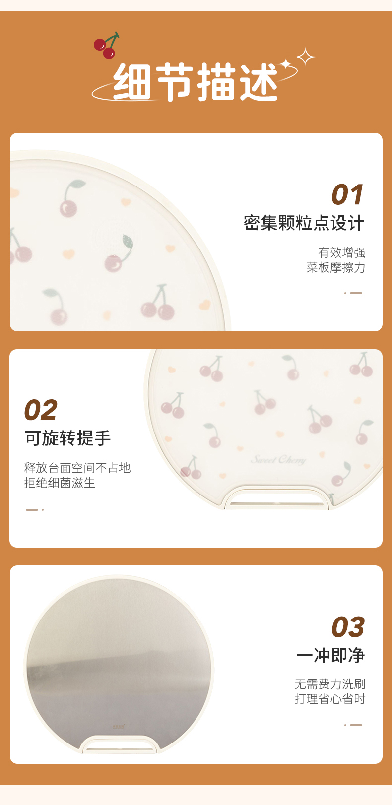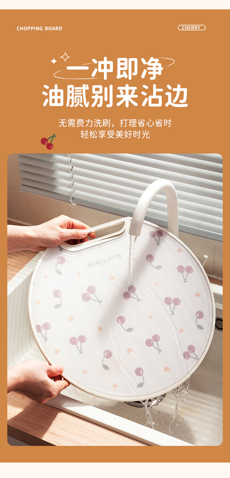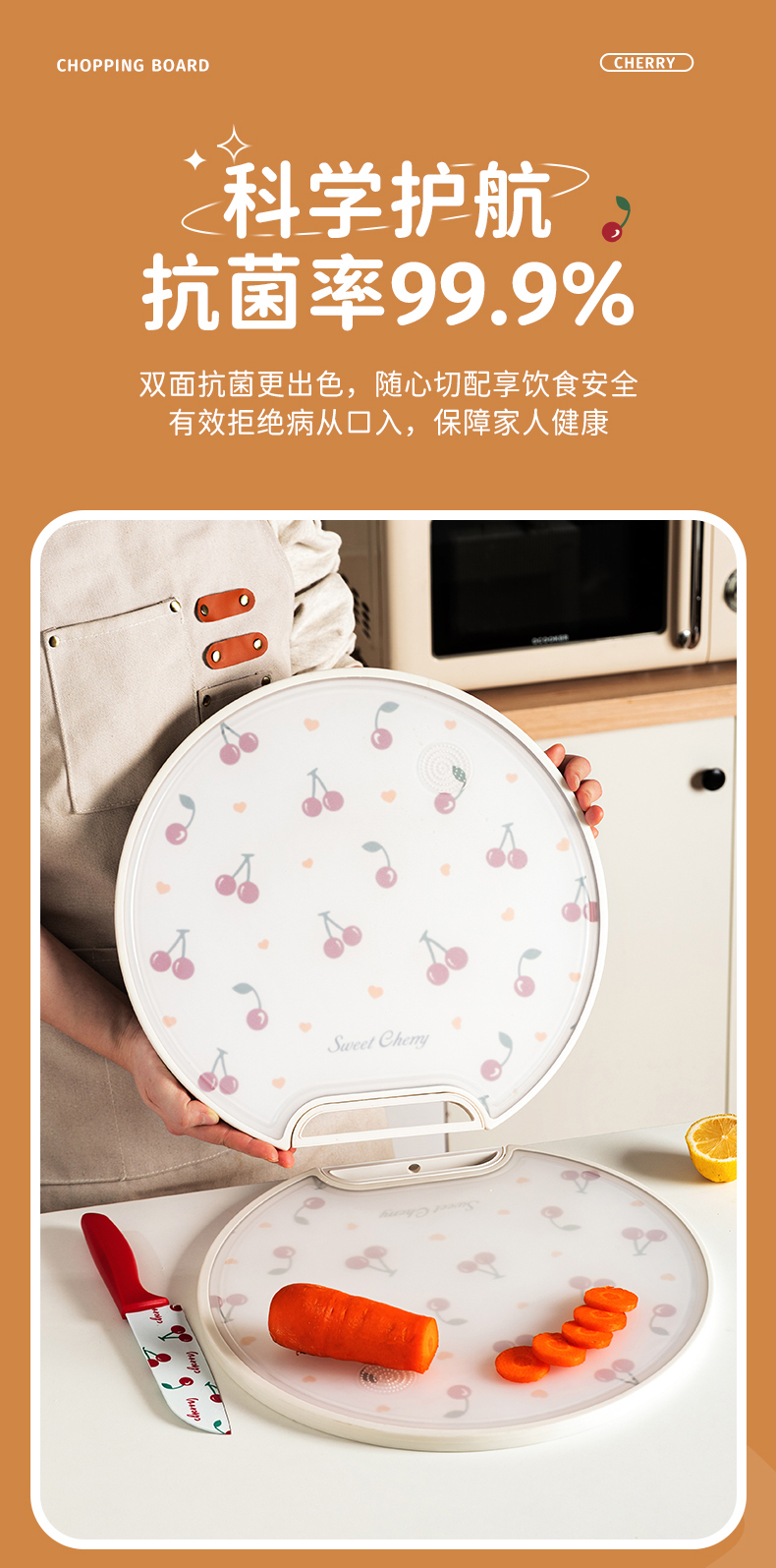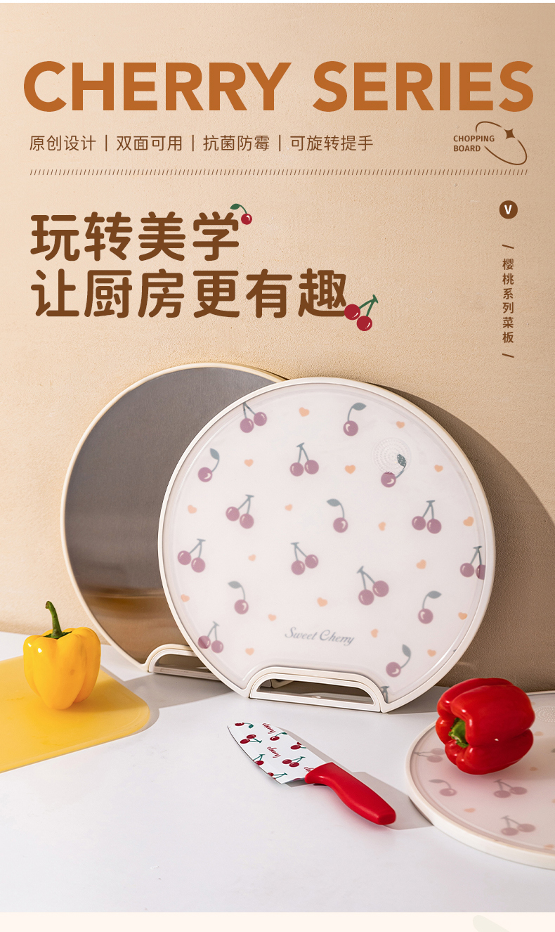 摩登主妇樱桃菜板家用防霉抗菌双面粘板厨房切水果案板不锈钢砧板
