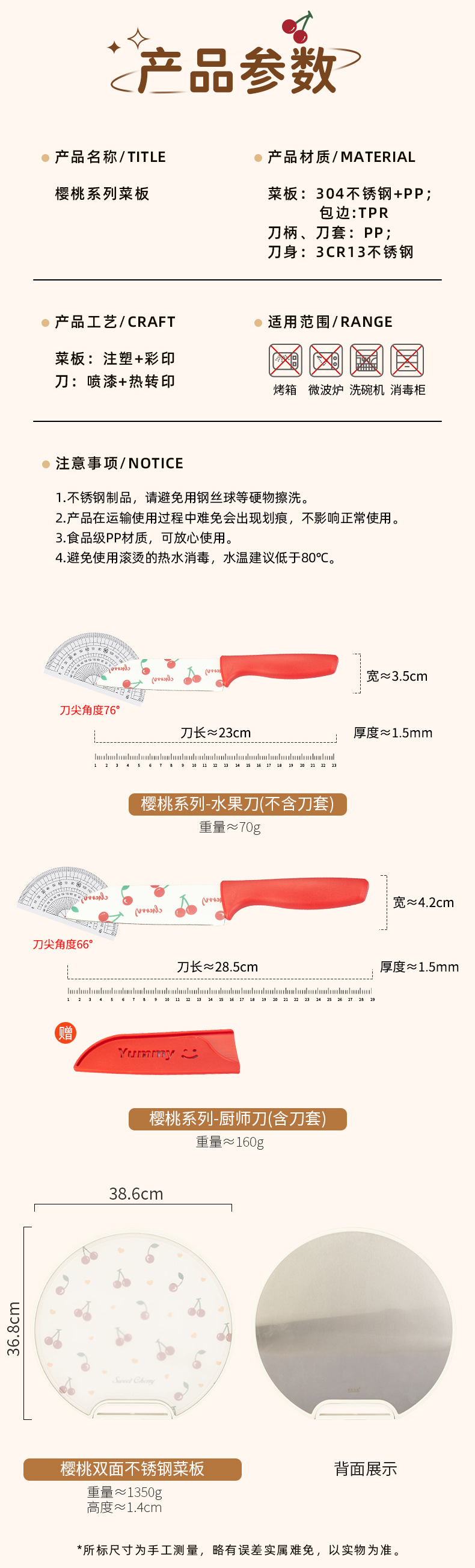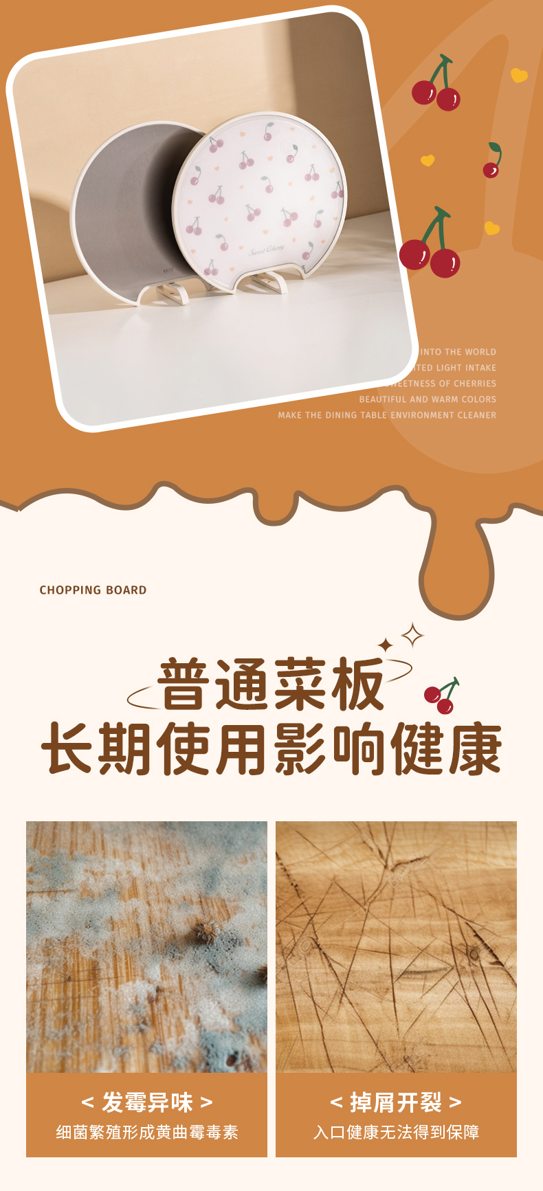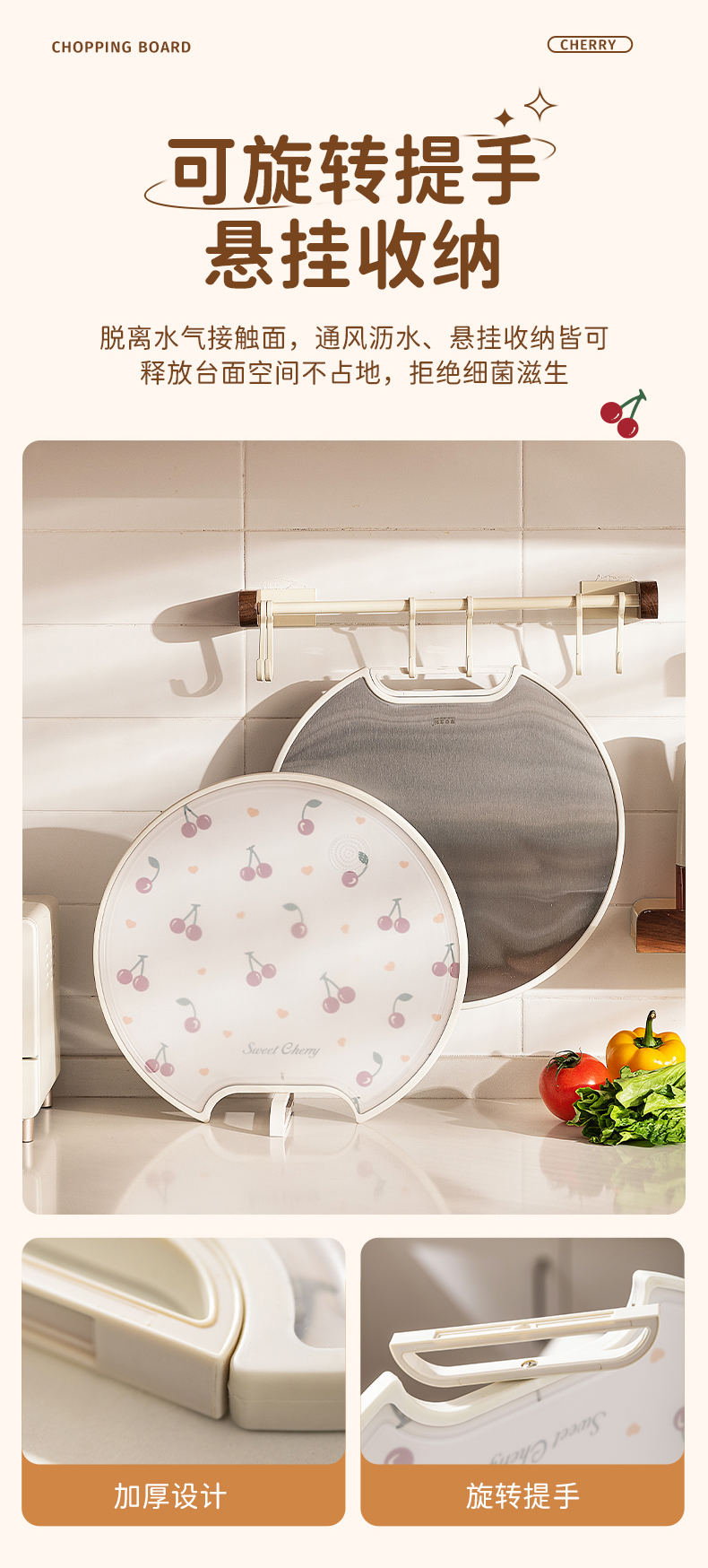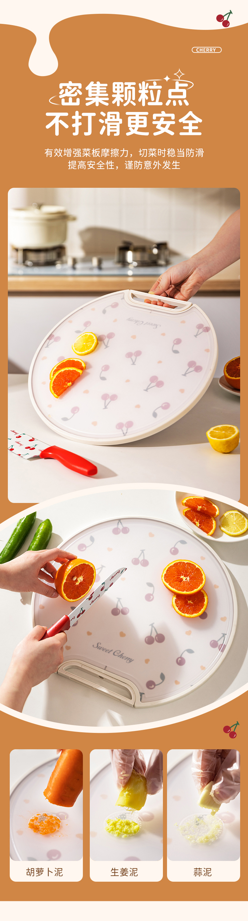 摩登主妇樱桃菜板家用防霉抗菌双面粘板厨房切水果案板不锈钢砧板