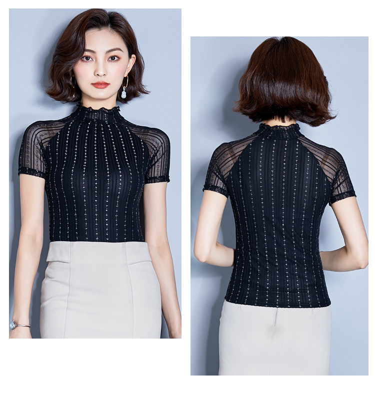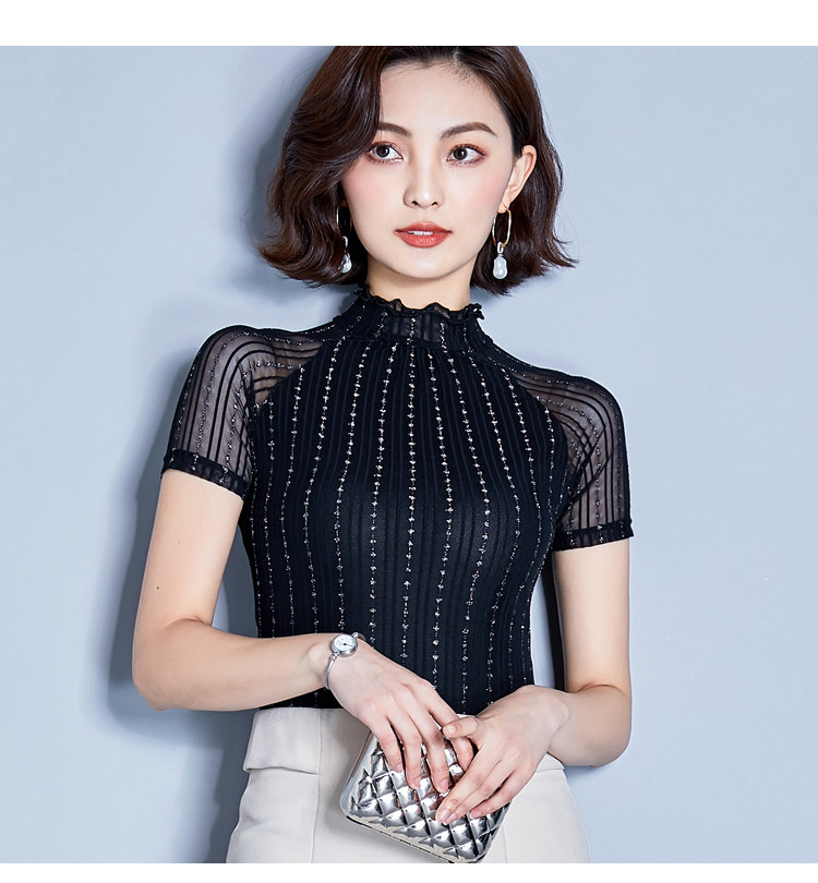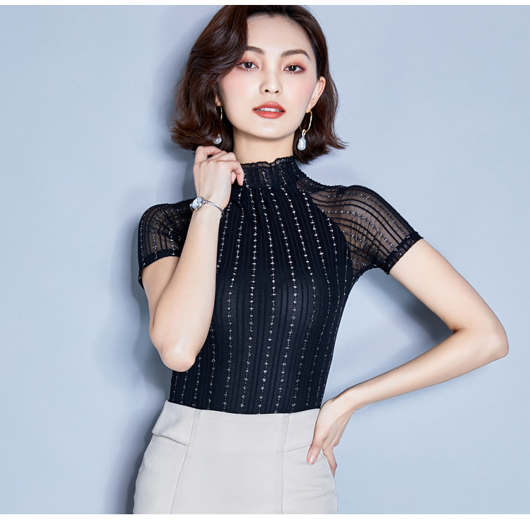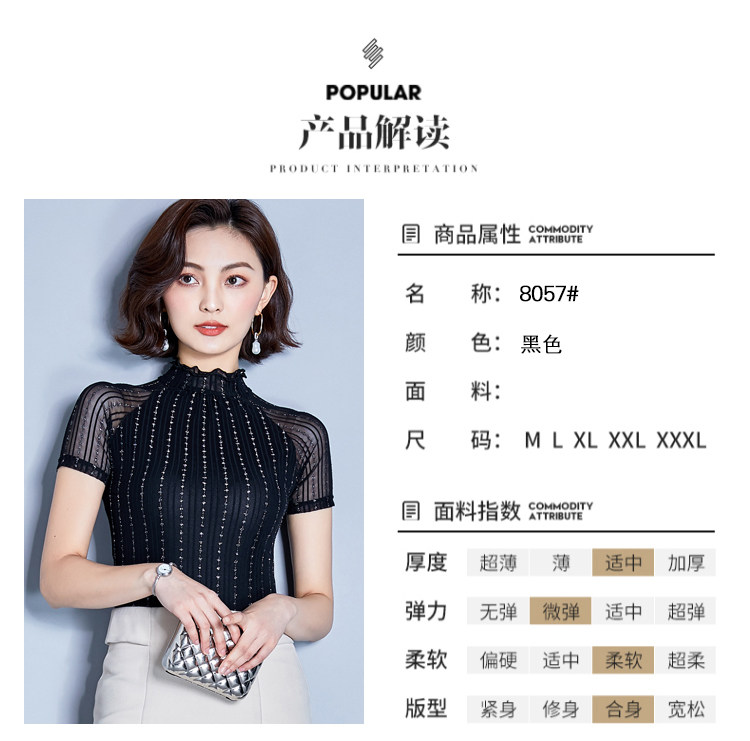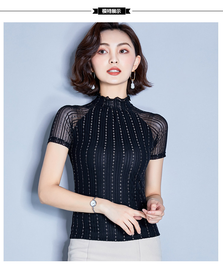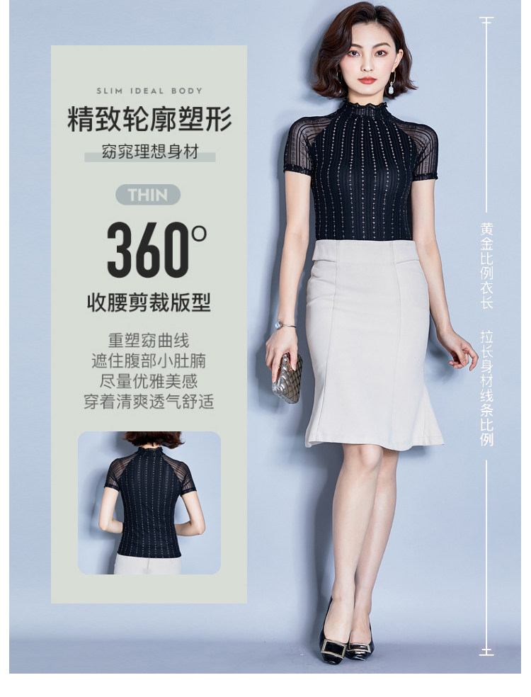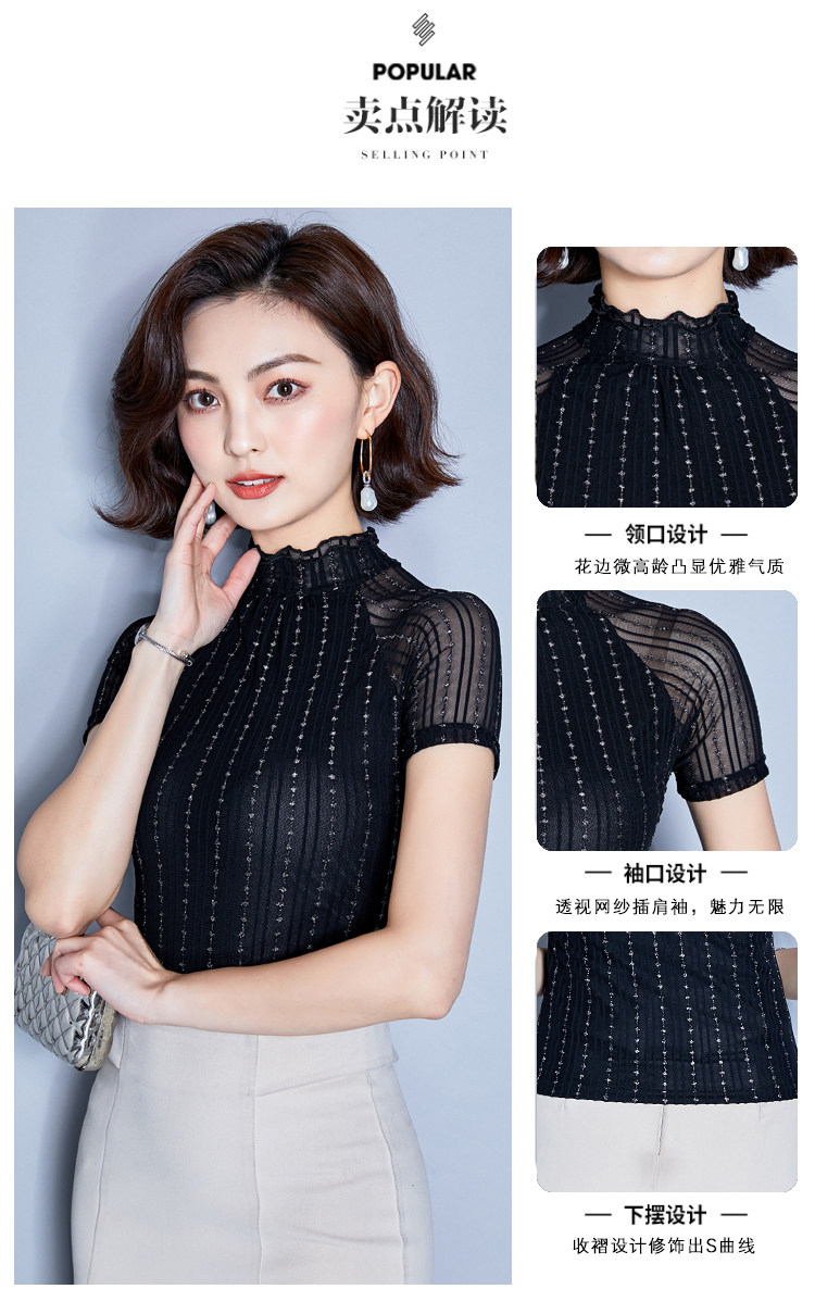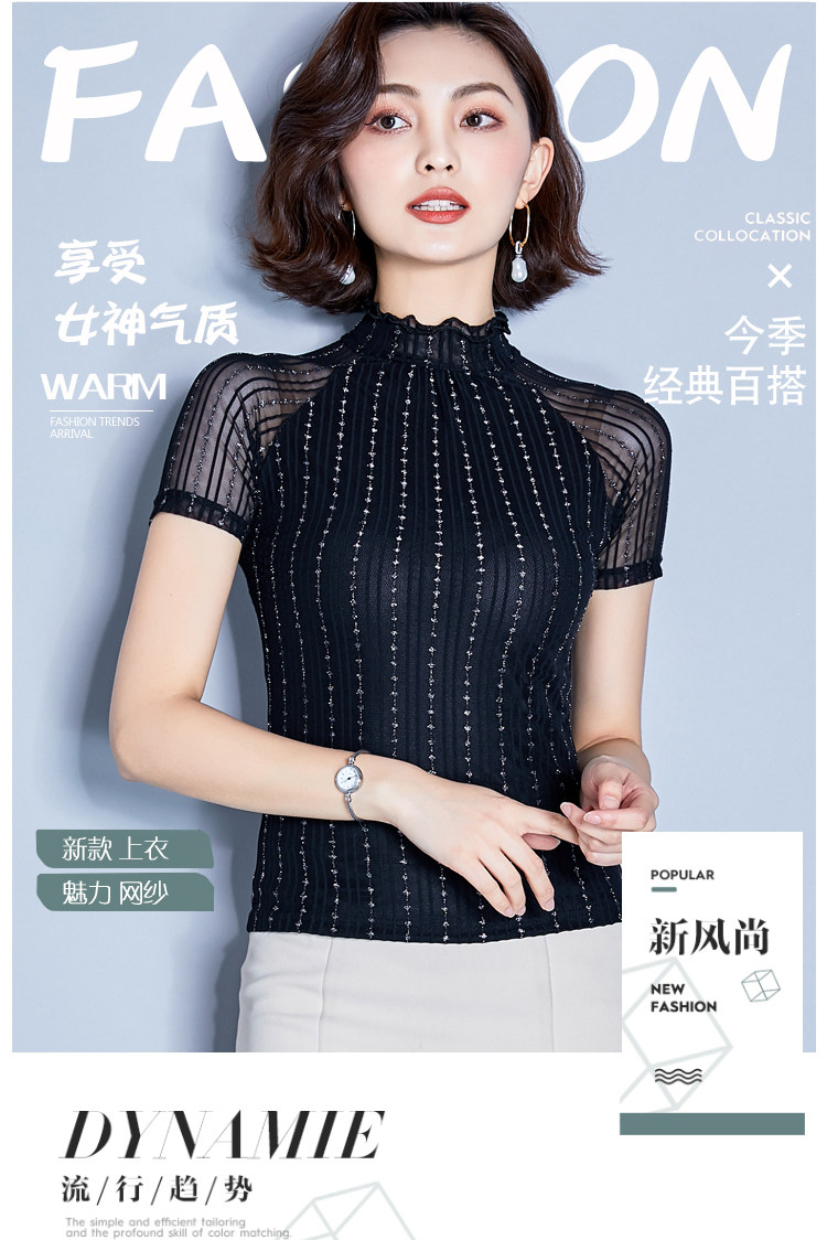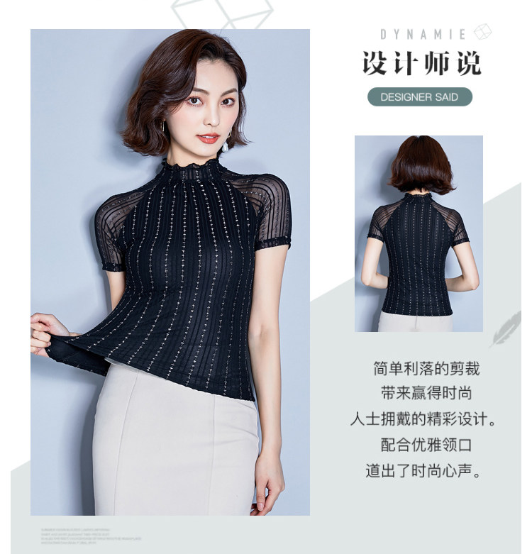 MZ-MZ2258创意款OL气质韩版棉套头短袖立领修身型女式T恤
