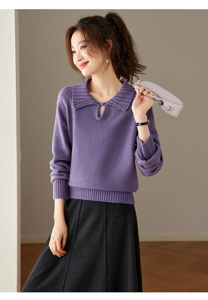 娃娃领镂空针织毛衣,高级感洋气内搭减龄打底上衣厚CC-27-25252
