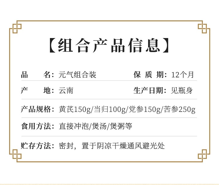【超值元气组合】在菌屋云南黄芪+当归+党参+苦参 650g/组 无农残 不染色