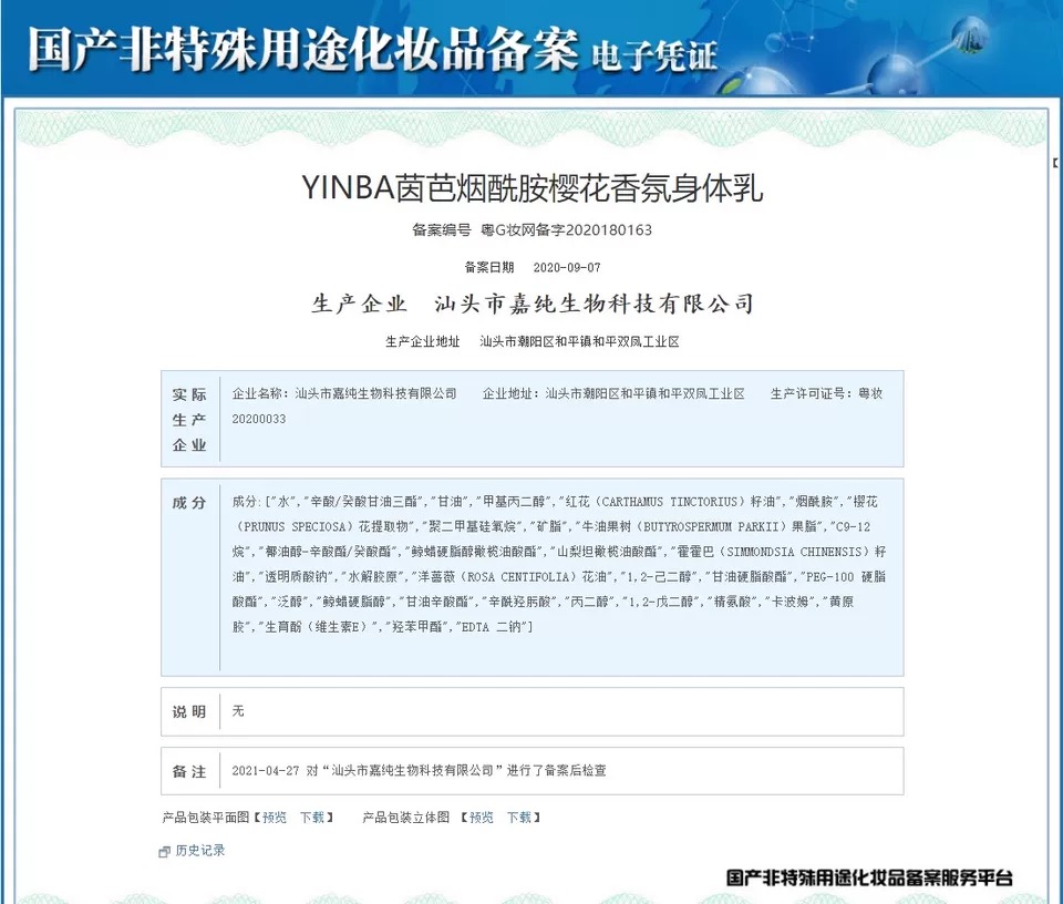 【第二瓶10元】YINBA 茵芭烟酰胺樱花香氛身体乳