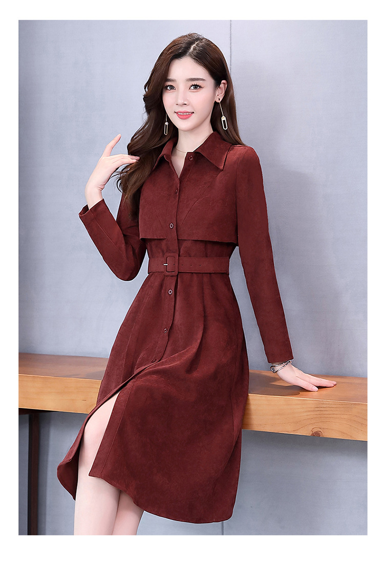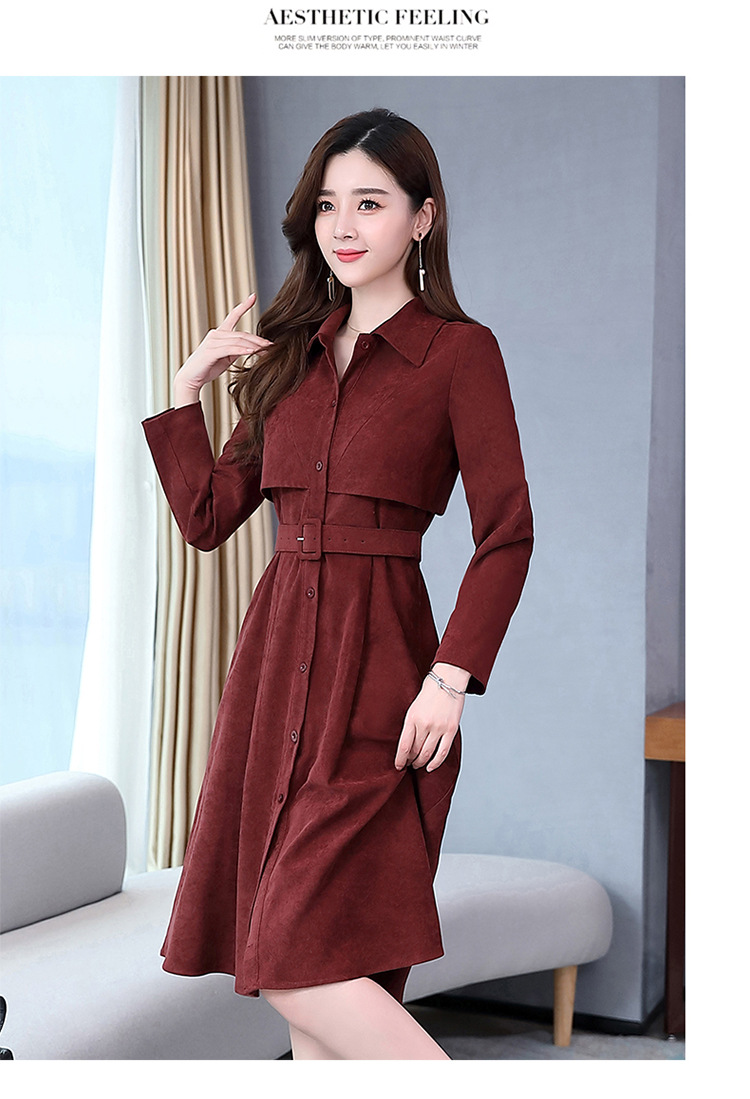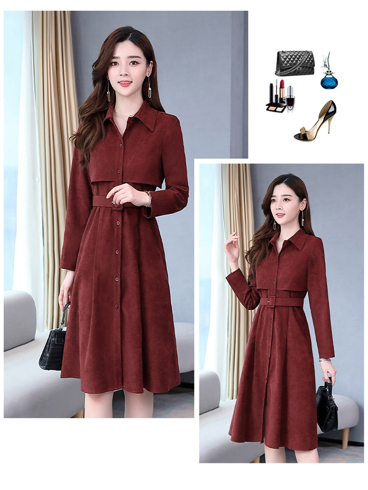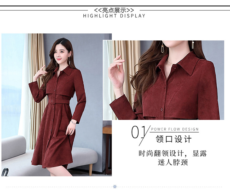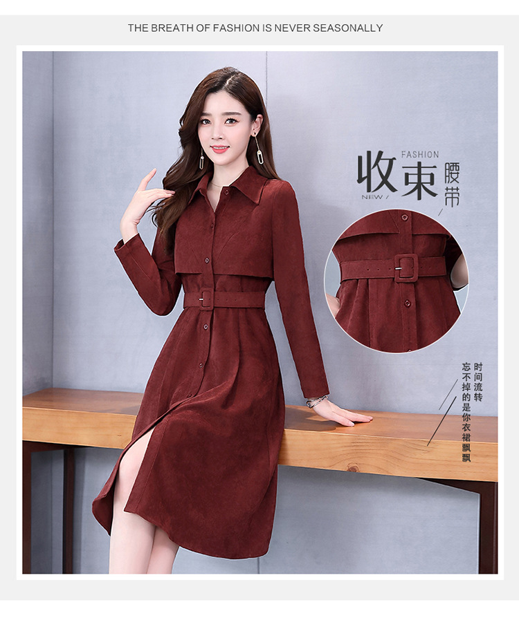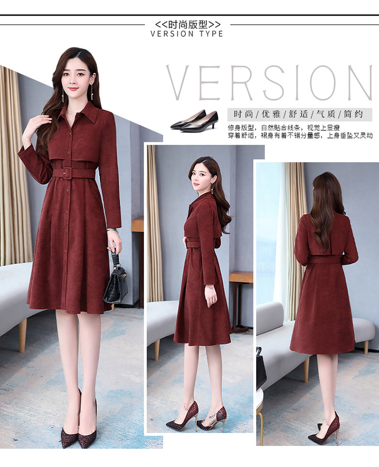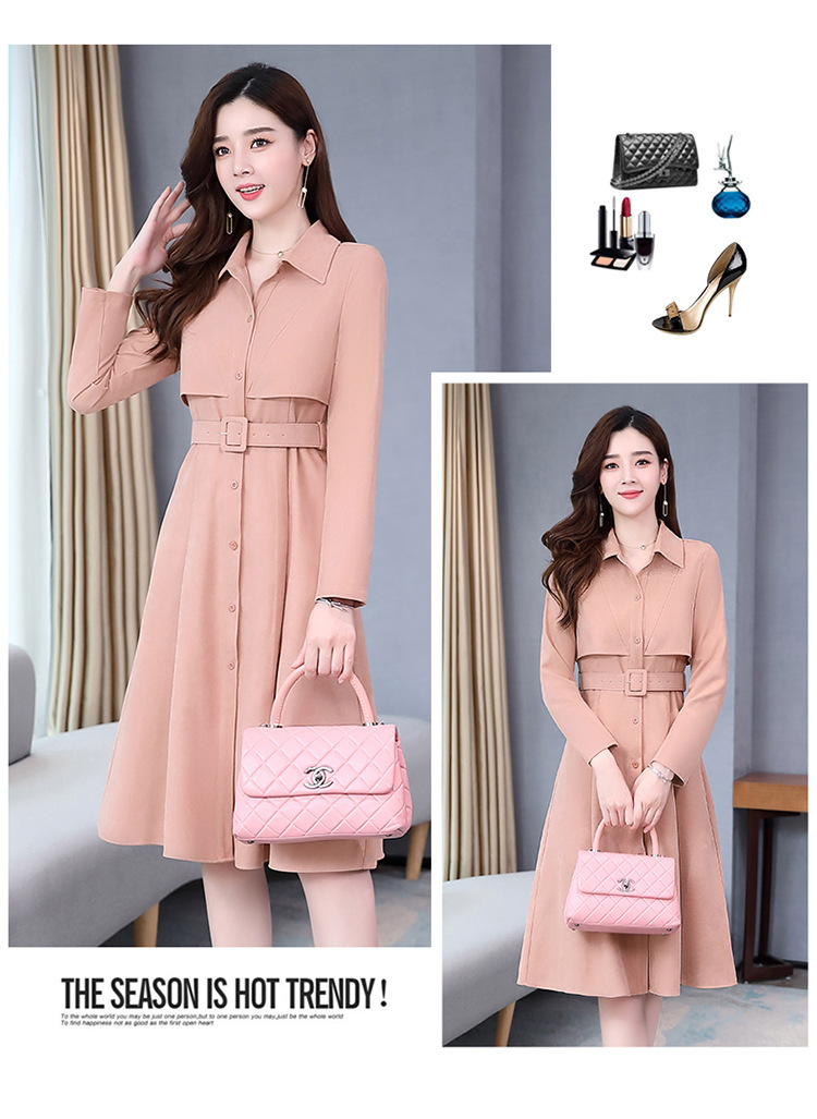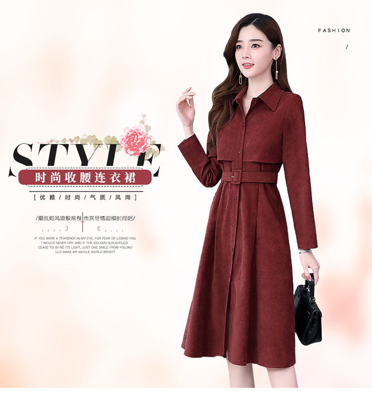 WZNH-WM66019秋新款女气质翻领优雅时尚修身显瘦连衣裙