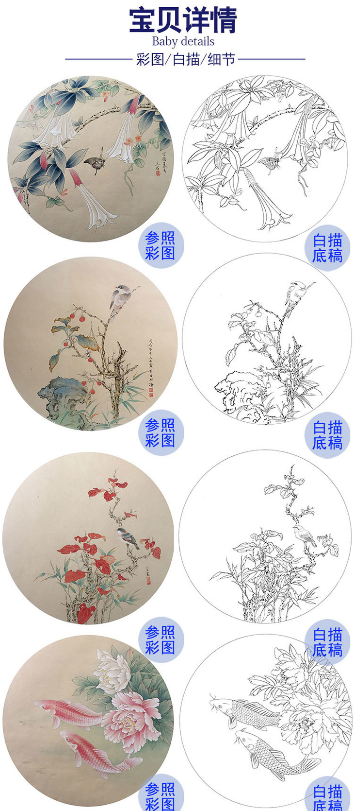 潘磊工笔花鸟小品白描底稿-套图一套20幅册页-A621