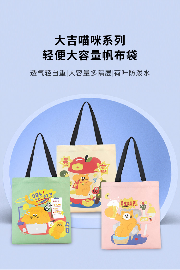 卡拉羊轻便大容量帆布袋大吉猫咪系列S0338