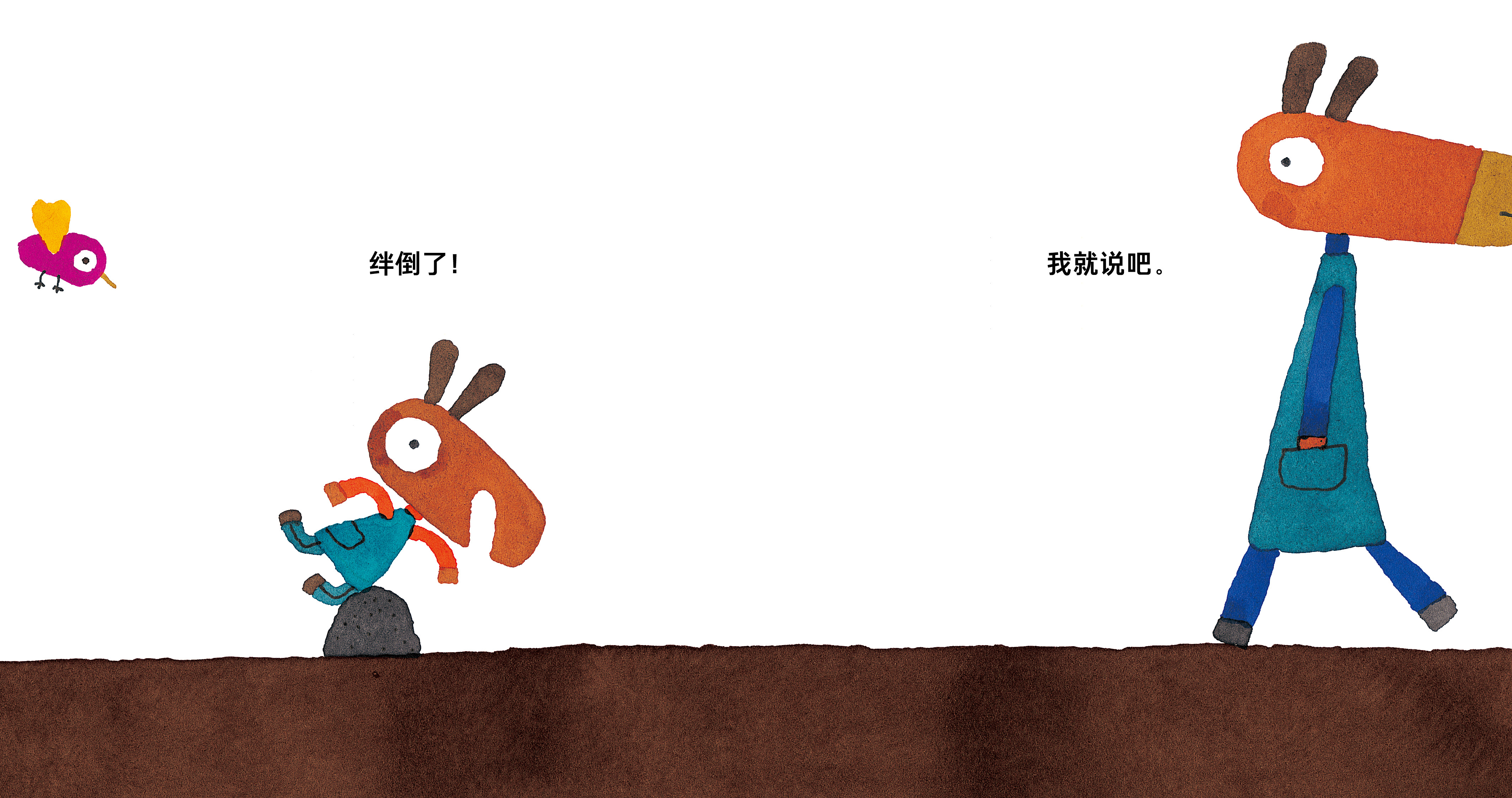 《一起玩吧!》中,故事讲述了两个动物之间互相认识玩游戏的过程。在我们的生活中,孩子们的相处经常会出现这样的对话——“一起玩吧!”“我不跟你玩!”而故事中,小鸟和小鹿也遇到了这样的情况——有人很想交朋友一起玩,有人却会害羞不敢一起玩,甚至拒绝对方的热情邀请。五味太郎用了一个有趣的故事,重现了孩子们交朋友的场景。用“一起玩吧!”“我不跟你玩!”这样反复重现的对话结合生动的图画,告诉孩子们,认识新朋友,就要勇敢跨出第一步。