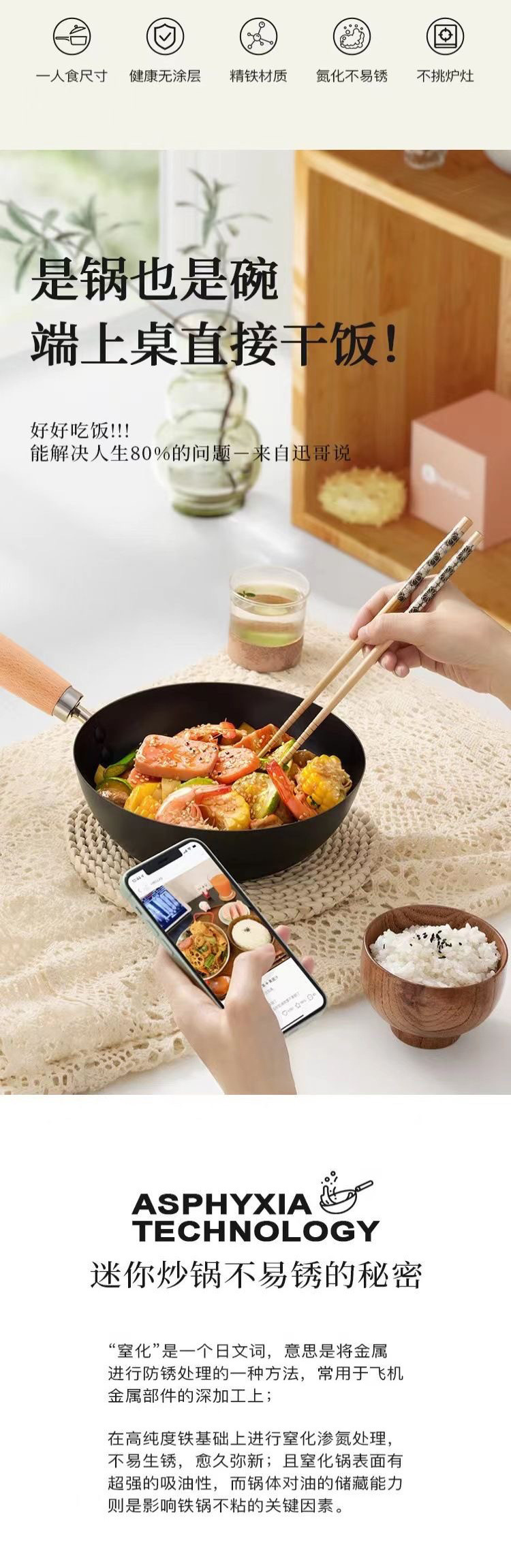 【无涂层导热均匀❗️高精纯铁用料扎实】日式小铁锅窒化不粘锅一人食小锅通用炒菜锅平底不粘锅极铁炒锅新。jb