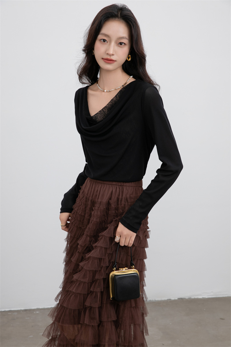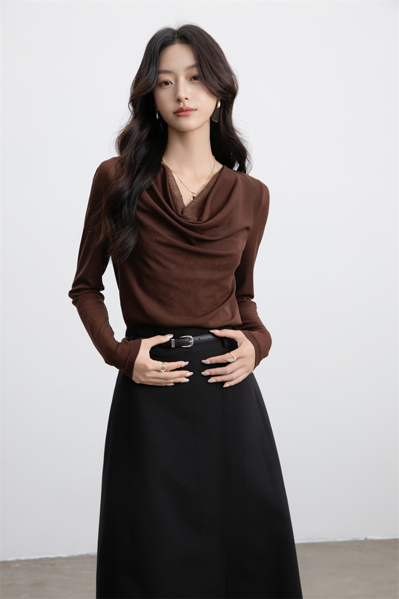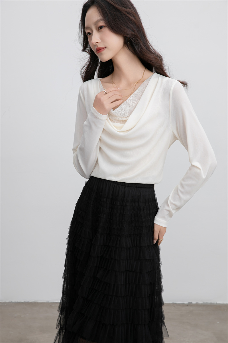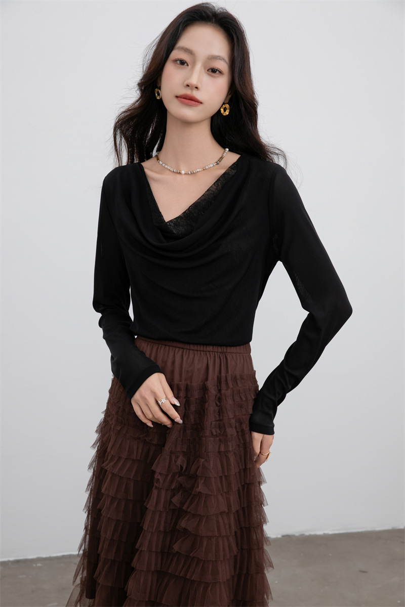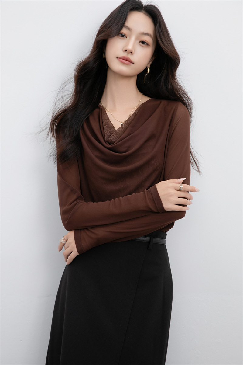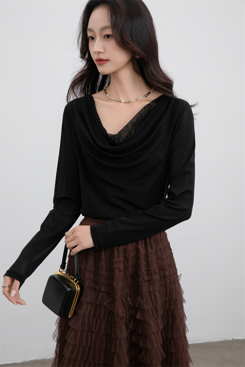 「老顾客福利早秋洋气堆堆领上衣」秋季优雅蕾丝拼接上衣2025新款显瘦长袖洋气小衫04146