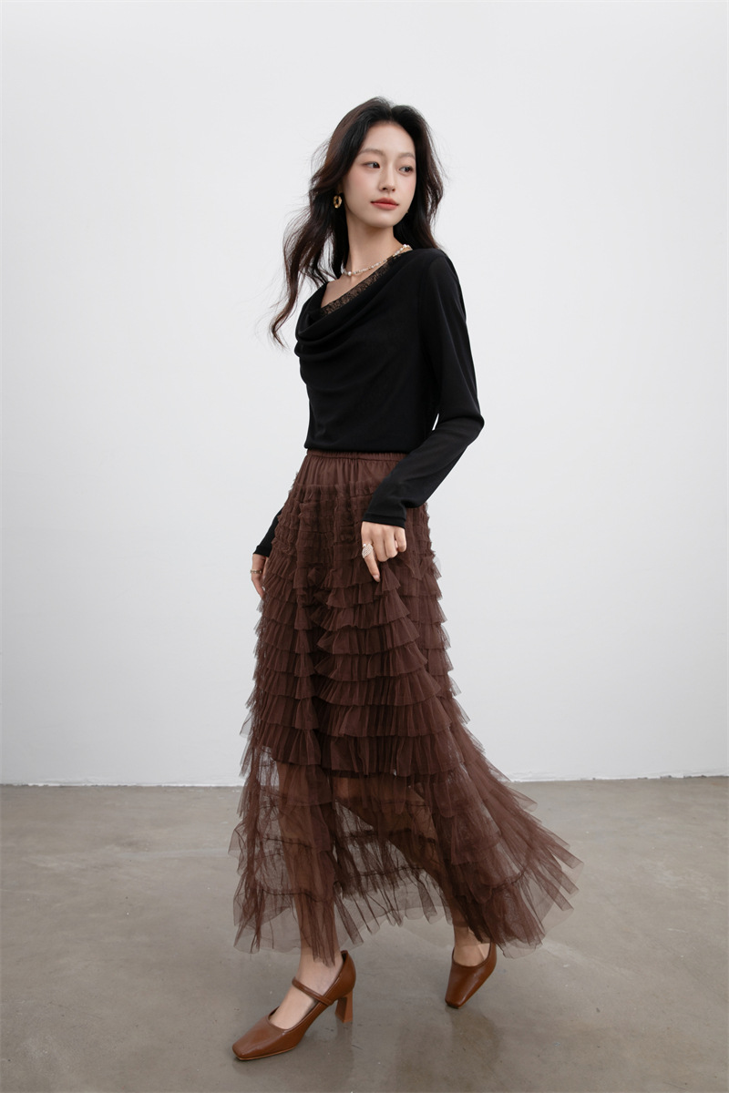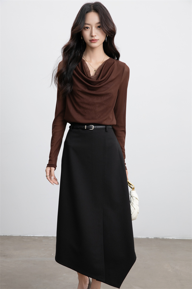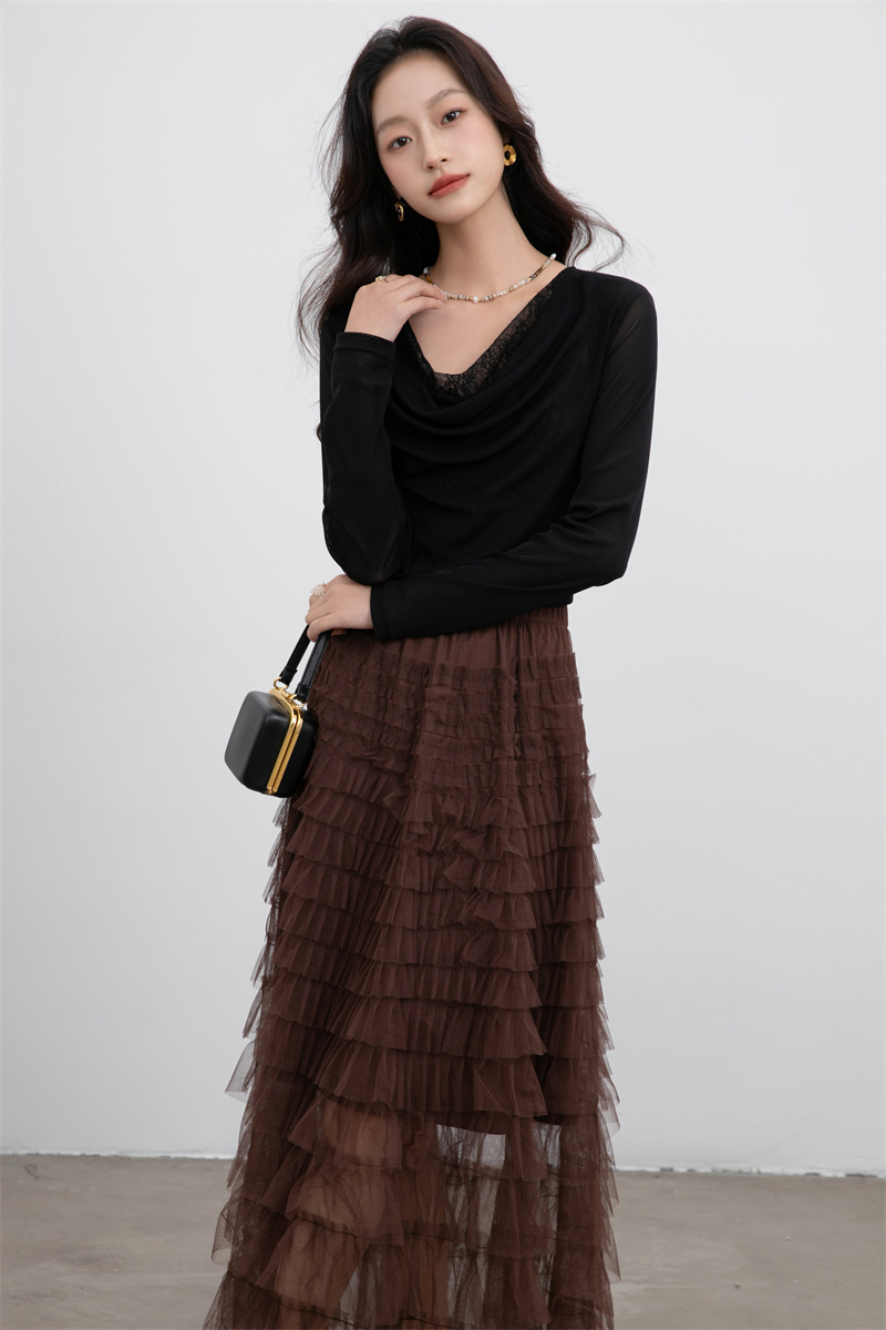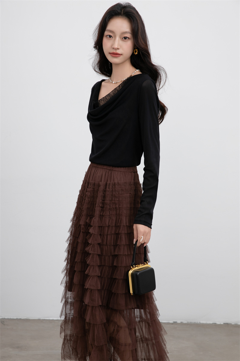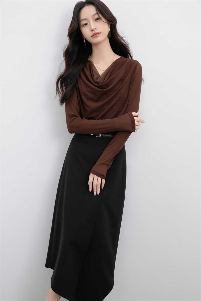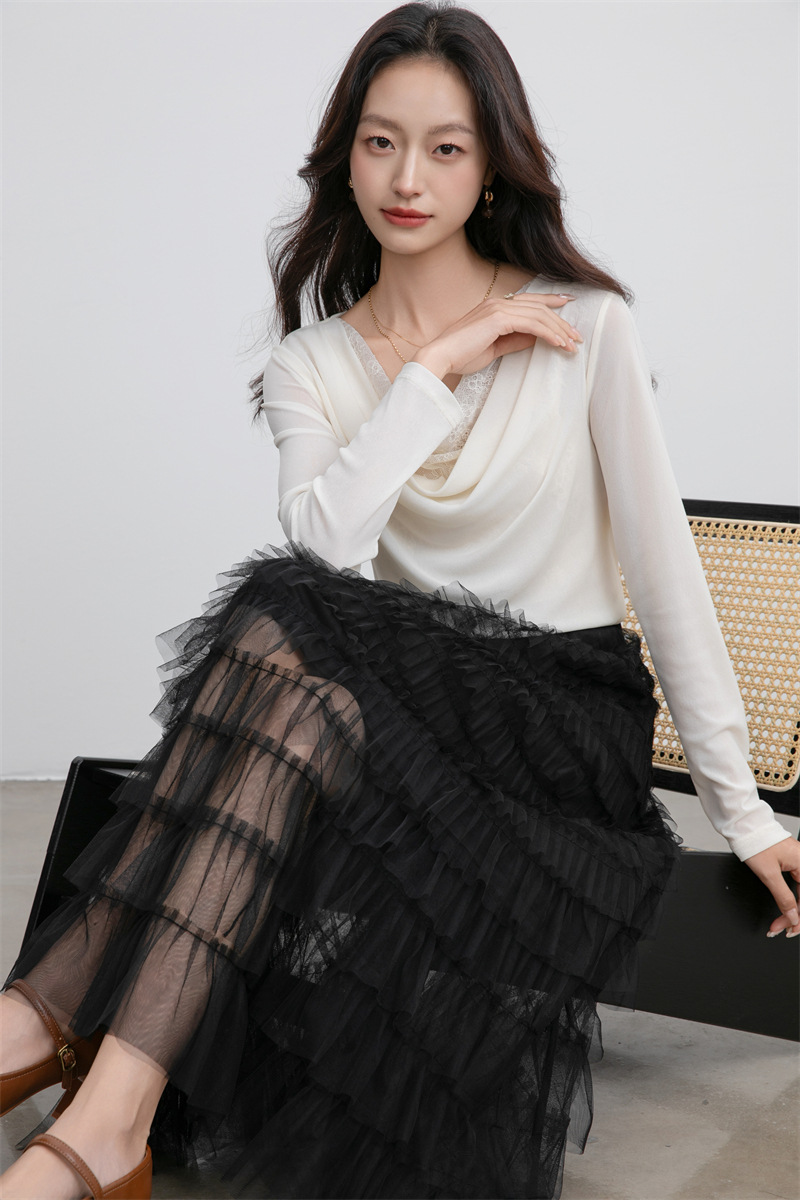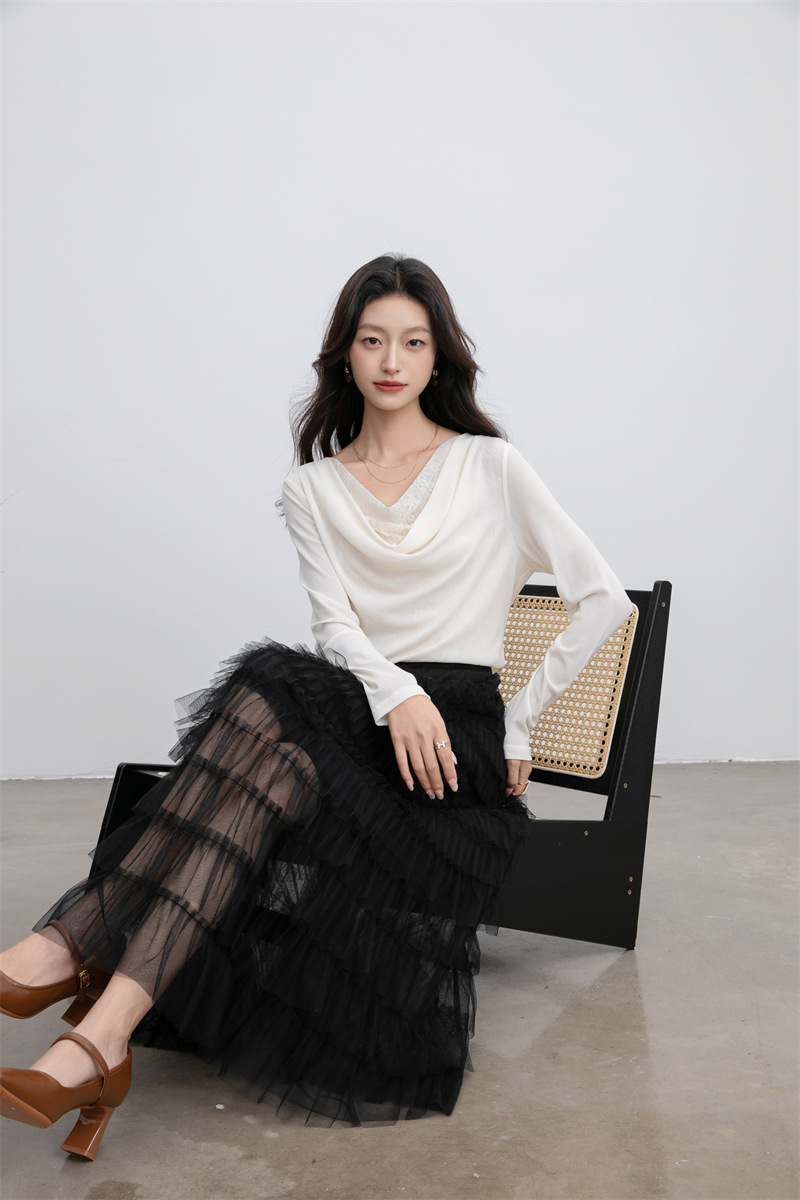 「老顾客福利早秋洋气堆堆领上衣」秋季优雅蕾丝拼接上衣2025新款显瘦长袖洋气小衫04146