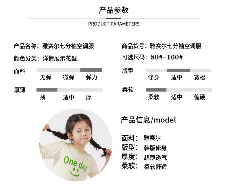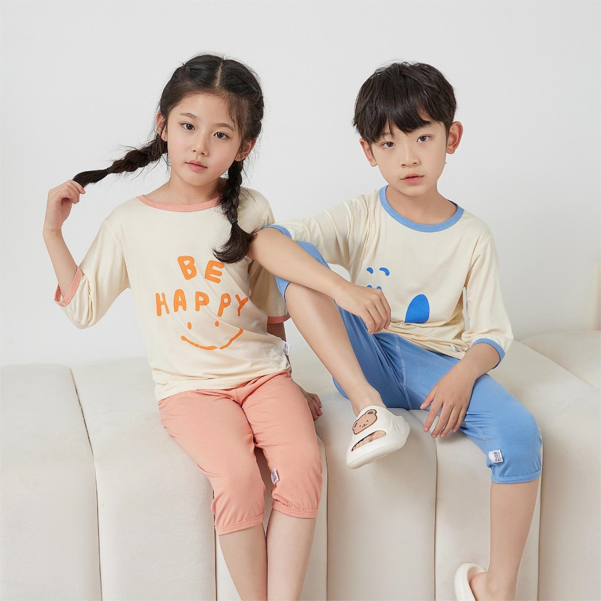 【限量抢,莫代尔升级款更舒适】2024儿童雅赛尔家居服,夏季薄款男童女宝雅赛尔七分袖套装宝宝休闲A类空调服