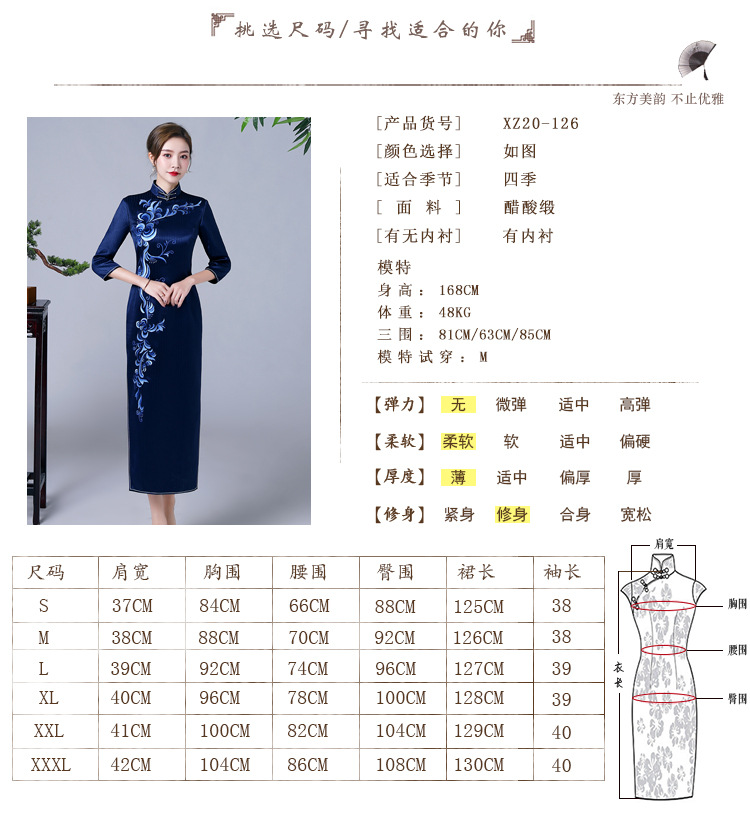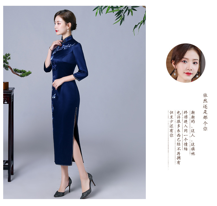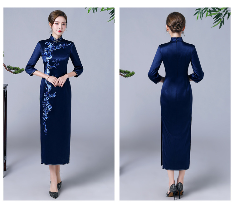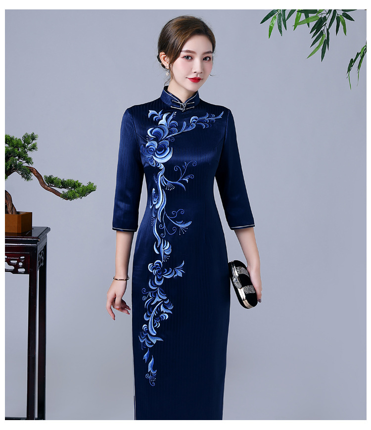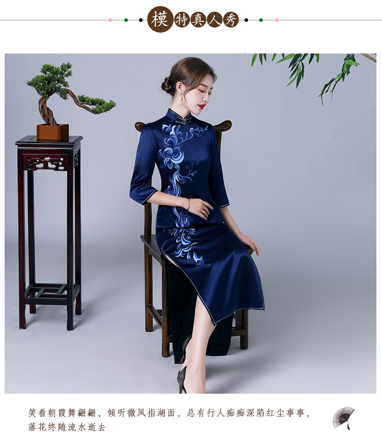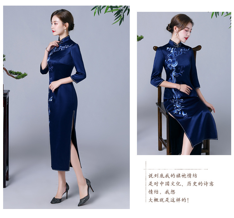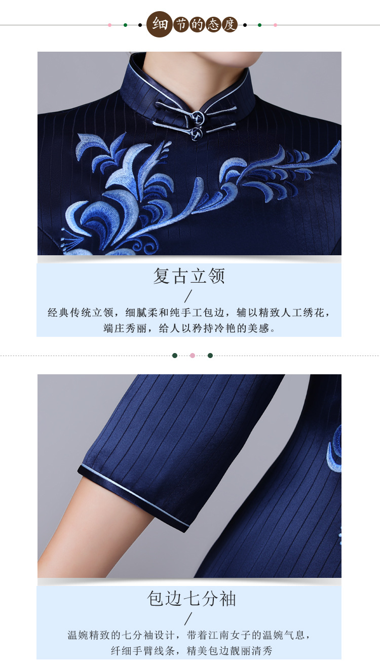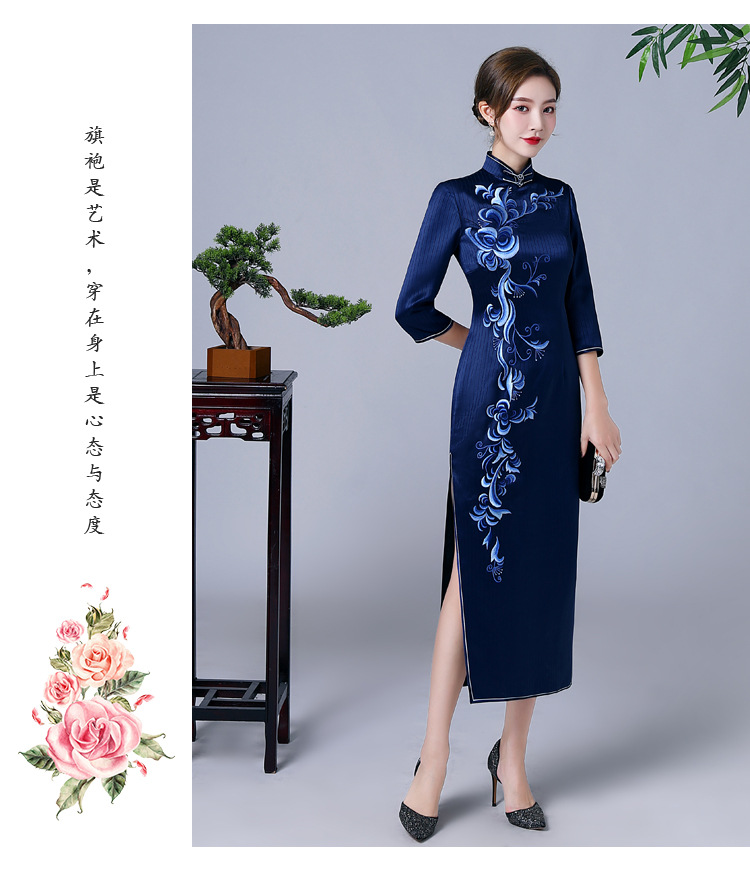 JQY-XZ20-126金齐奕蓝色醋酸手工旗袍
