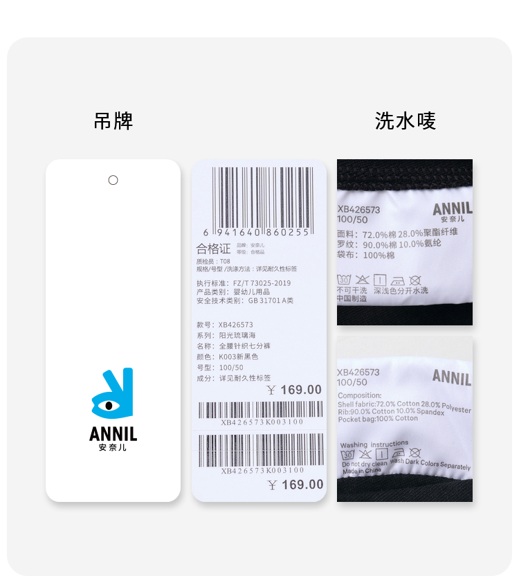 男童弹力保型七分裤裤子新款安奈儿童装实体店同款XB426573