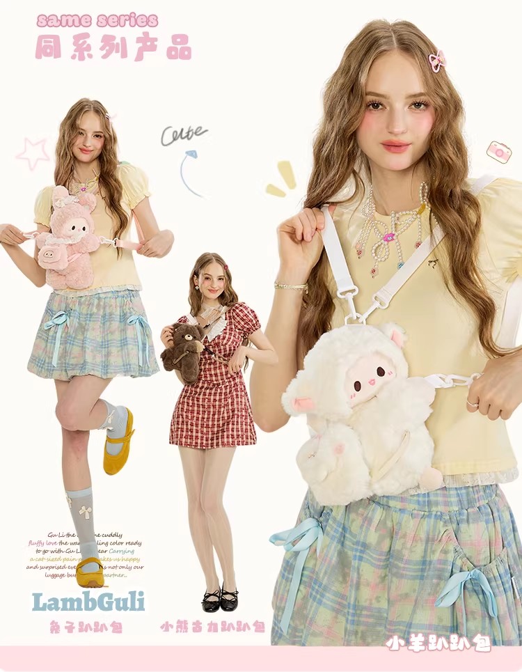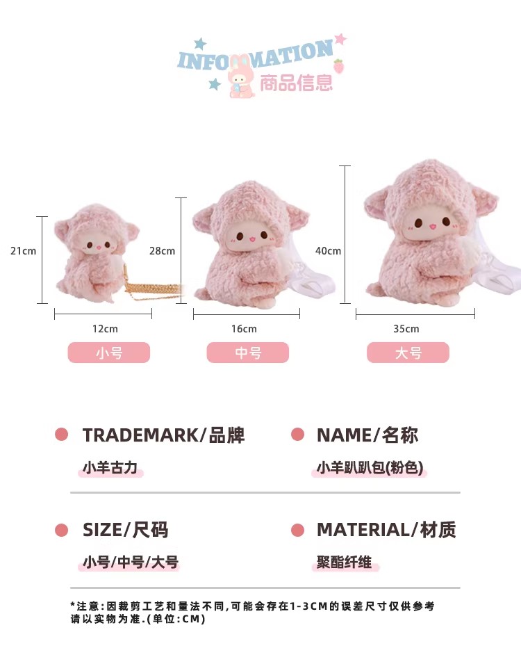 小羊古力·小羊桃·毛绒趴趴包plus版(粉色)