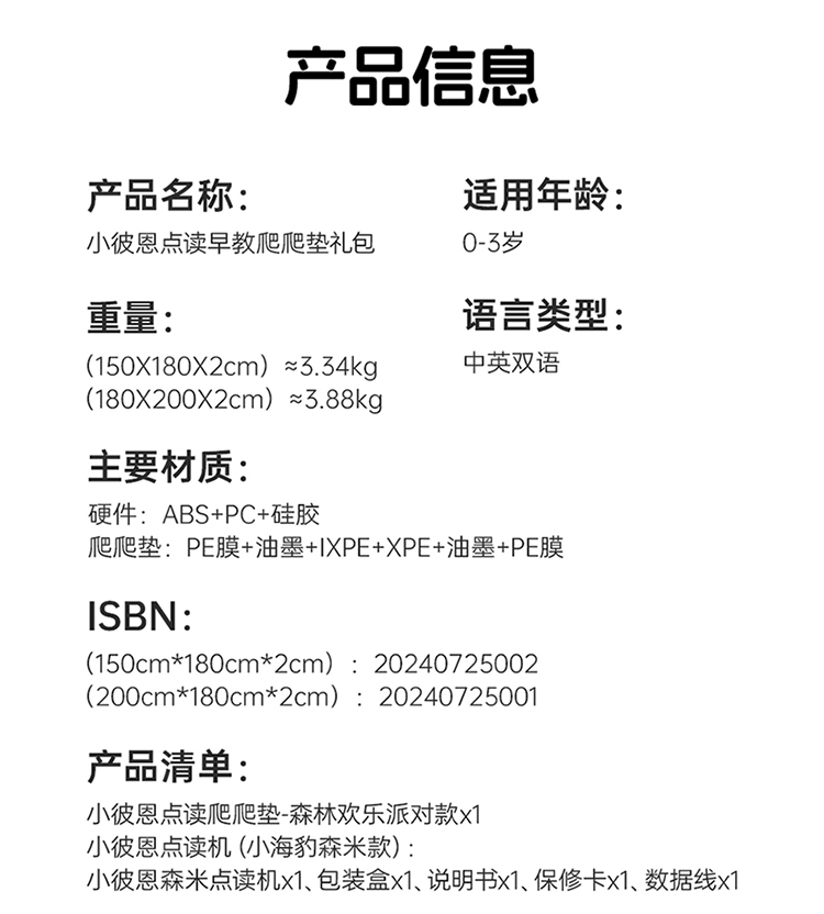 【小彼恩出品】 小彼恩点读早教爬爬垫礼包 猴哥甄选