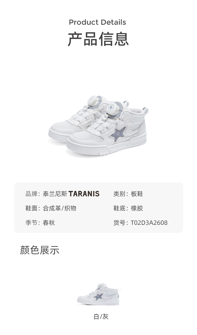 【2025春季新款】泰兰尼斯春款中大童经典校园小白鞋板鞋T02D3A2608