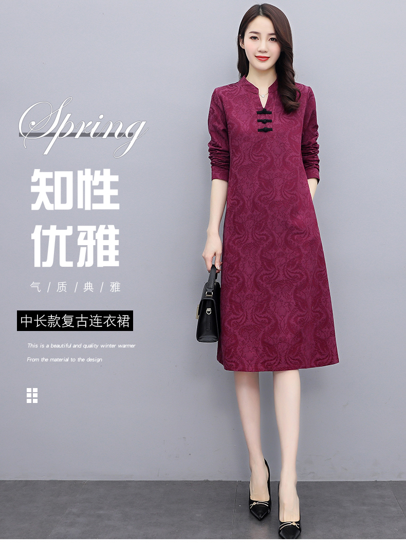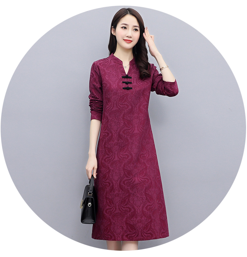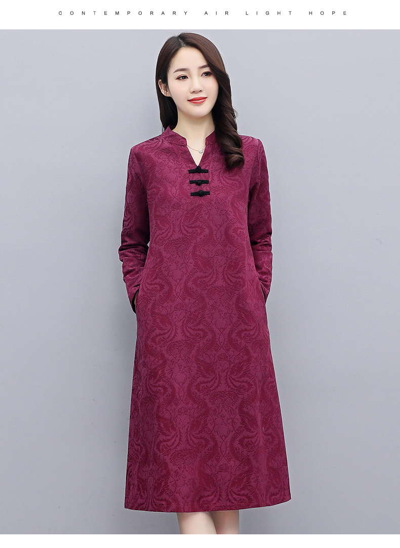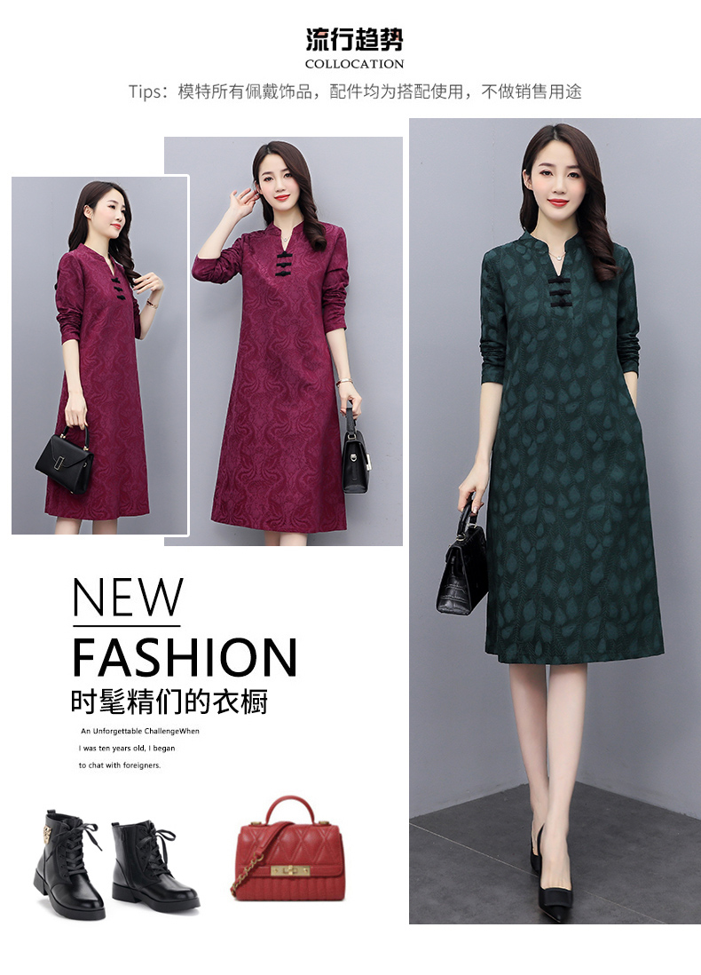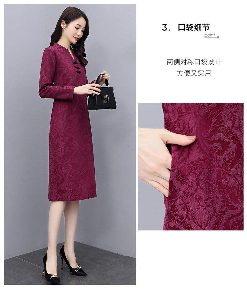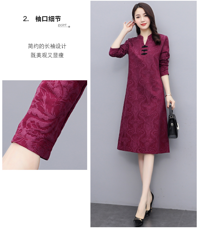高端针织提花喜婆婆旗袍加绒加厚冬季喜妈妈婚宴装JH248