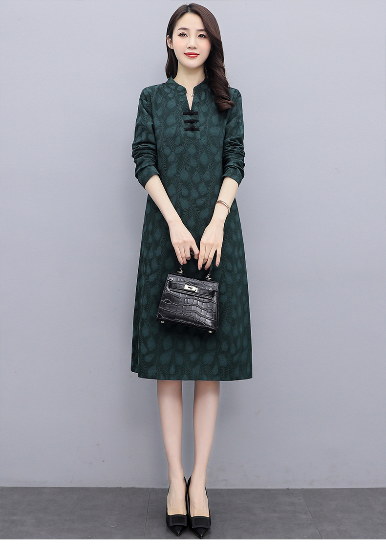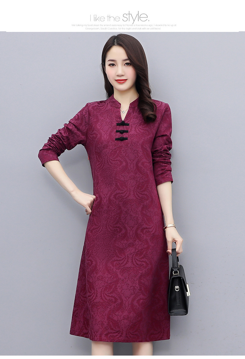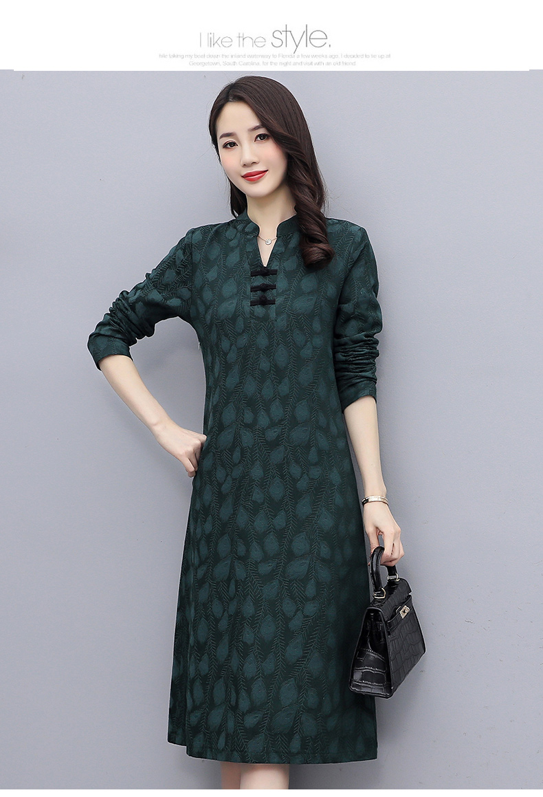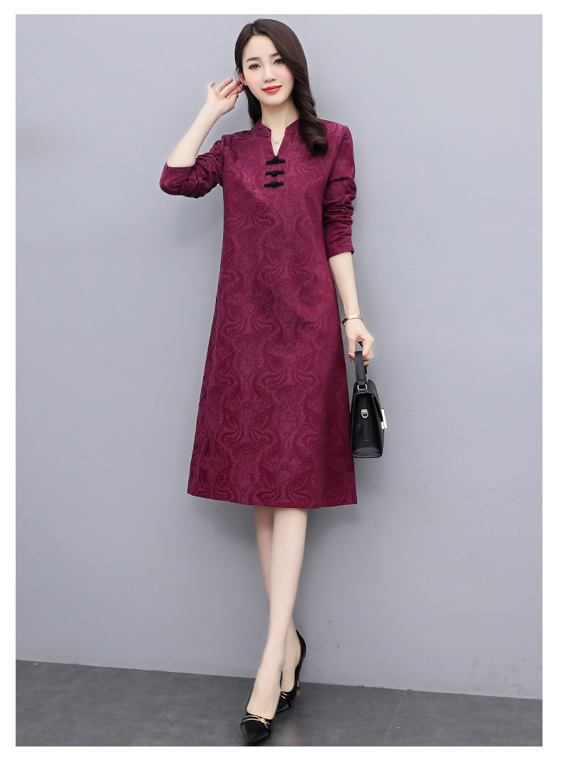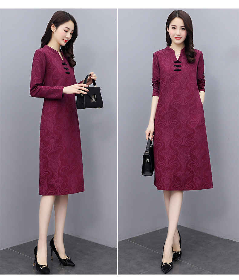 高端针织提花喜婆婆旗袍加绒加厚冬季喜妈妈婚宴装JH248