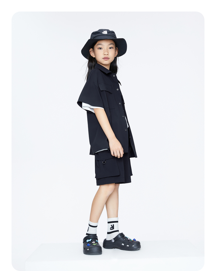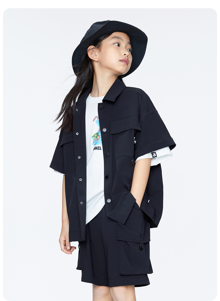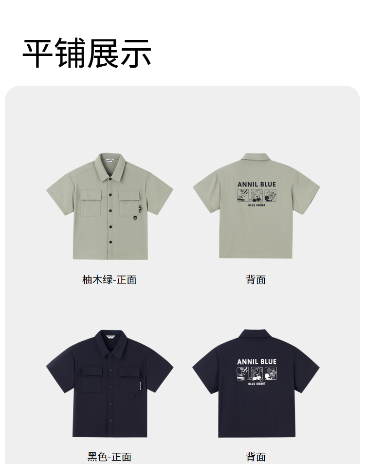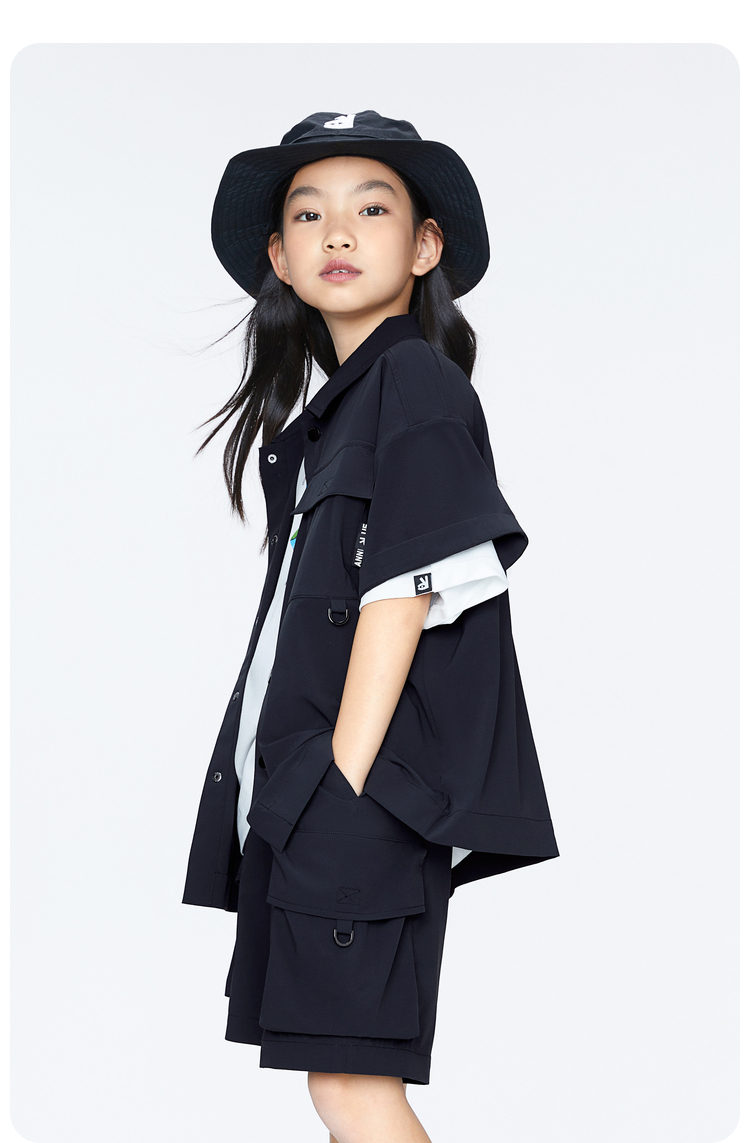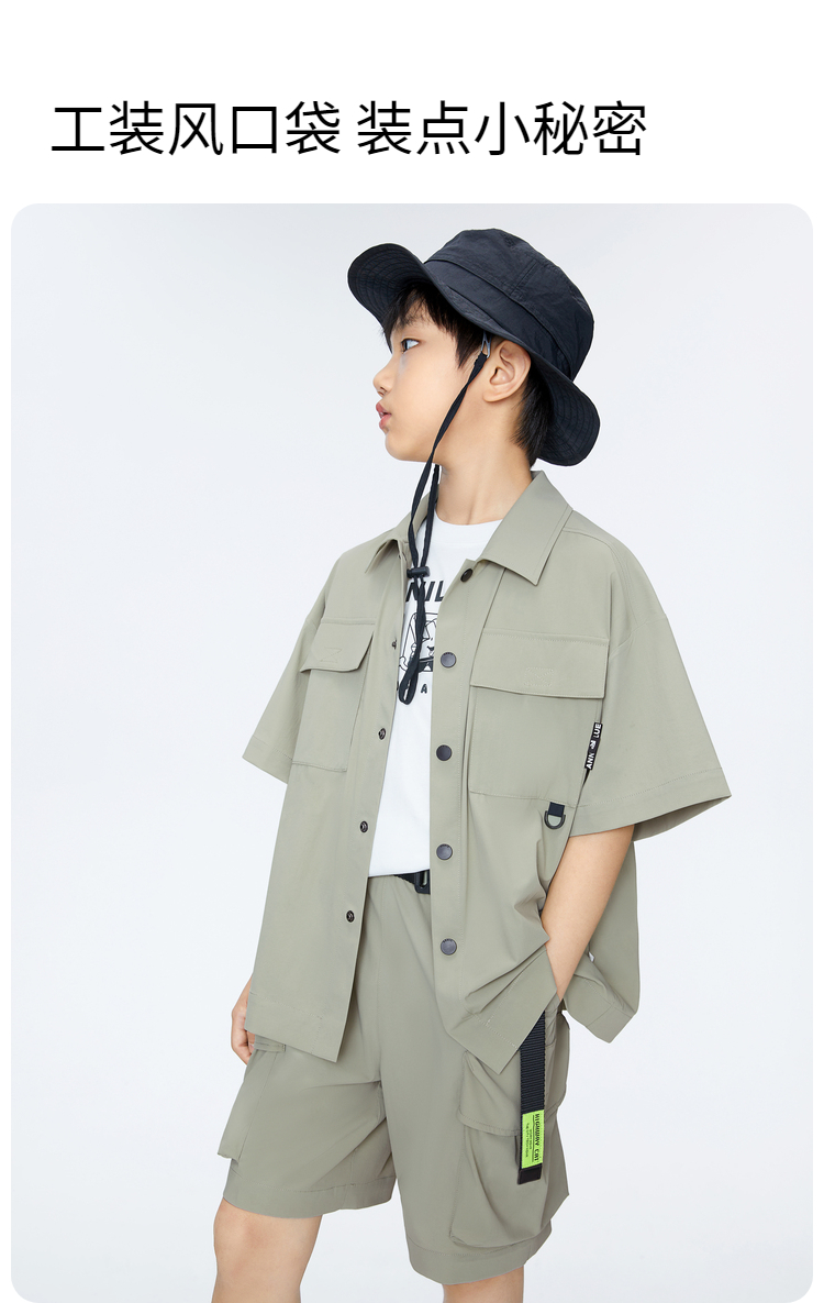 男童工装风衬衣短袖上衣BLUE新款安奈儿童装实体店同款AB421865