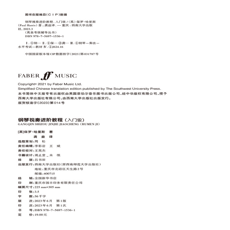 *书名: 钢琴视奏进阶(入门级) | *ISBN: 978-7-5697-1536-1 |
