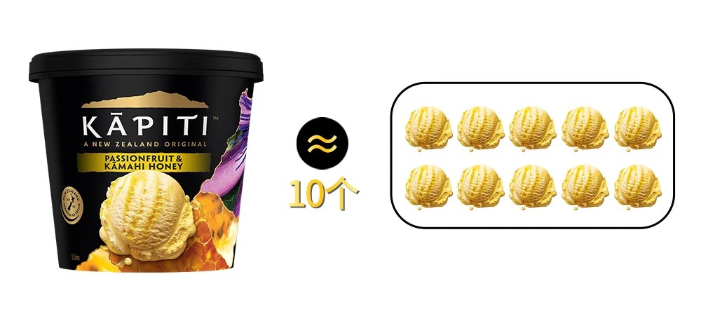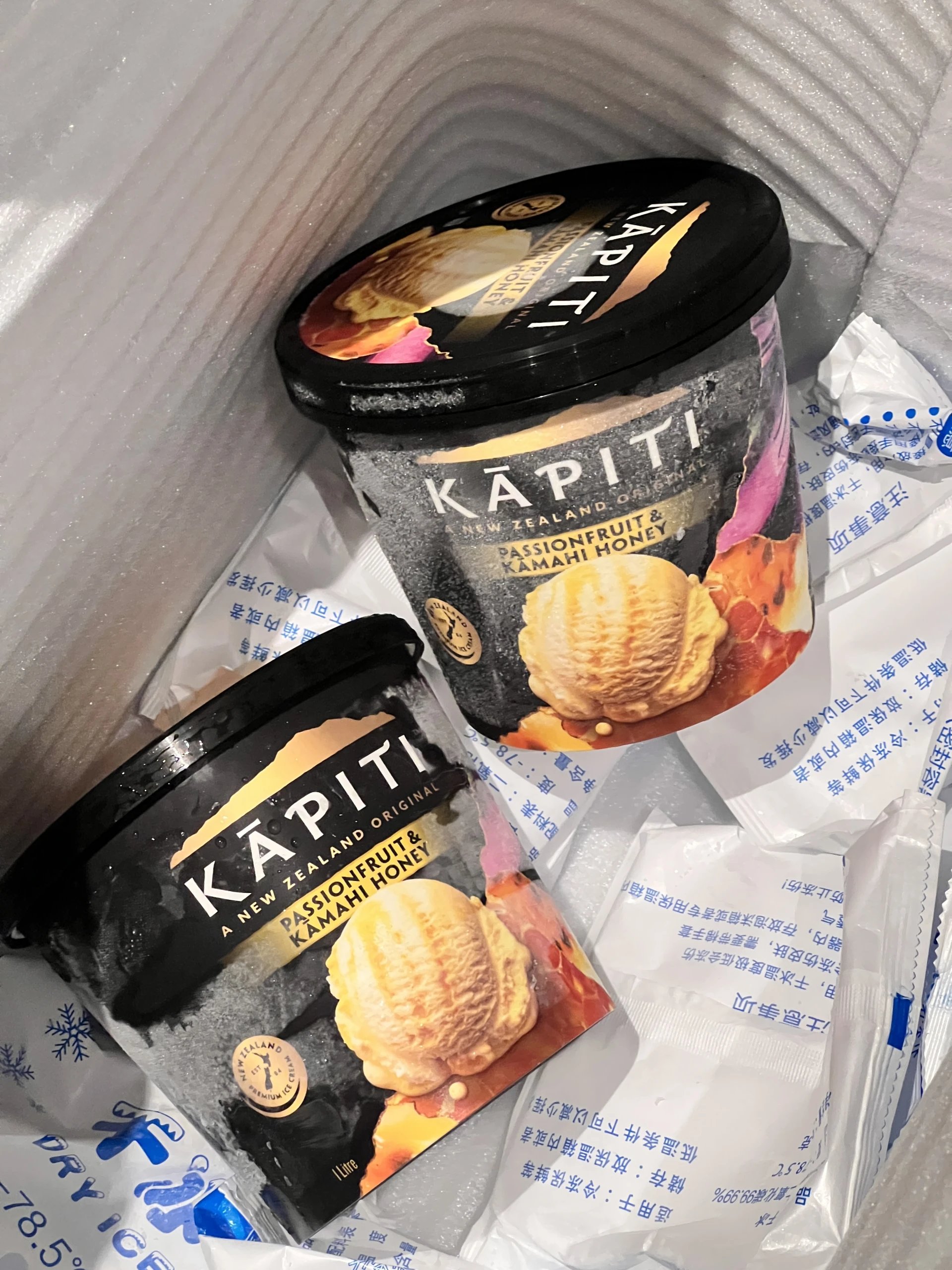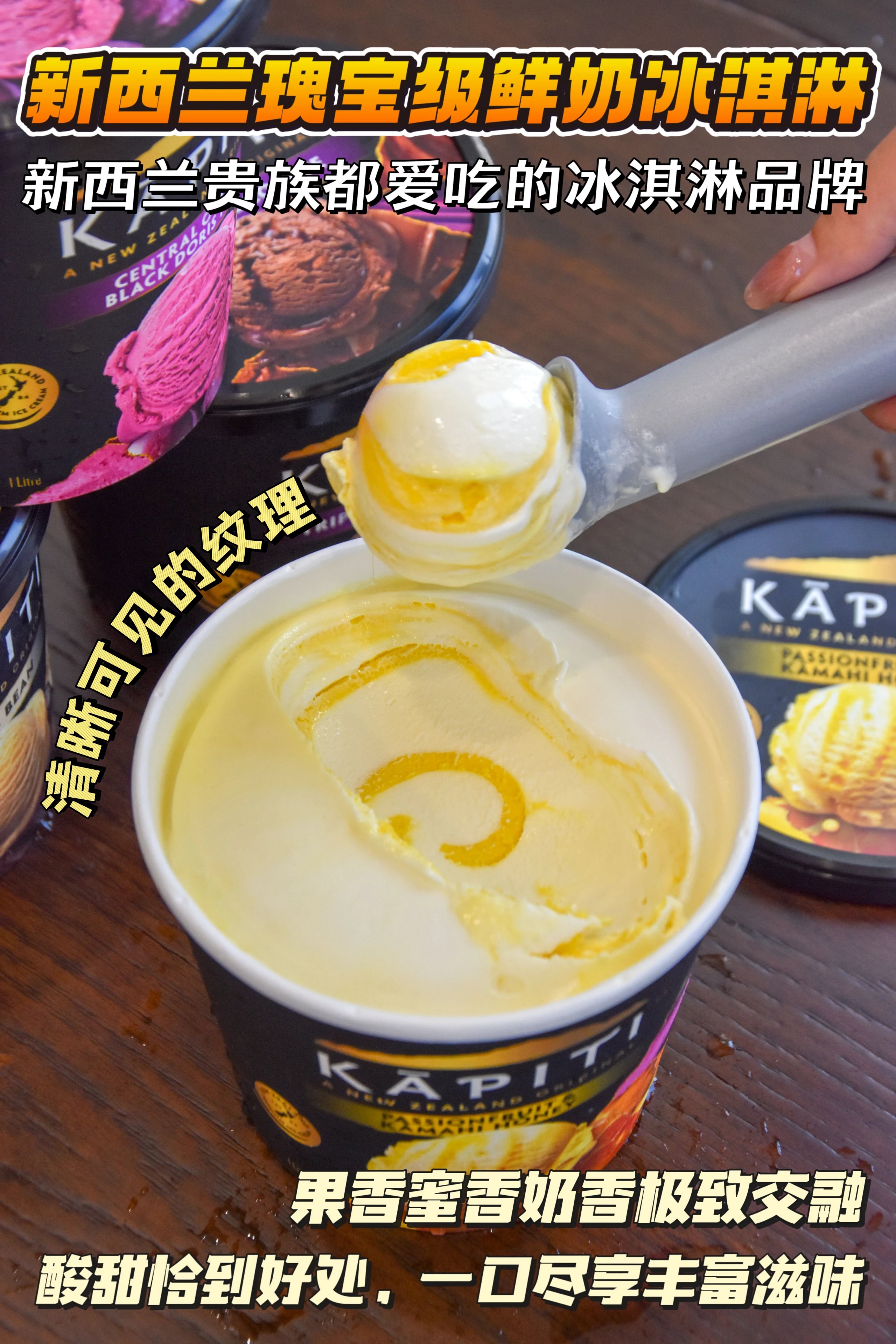 99️团『新西兰KAPITI冰淇淋』国内能买到了1L奢华黑金桶1盒可挖10个球新西兰航空头等舱御用品牌米其林级别的冰淇淋基地直邮