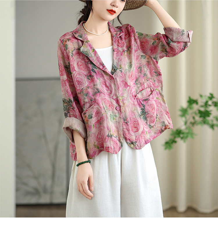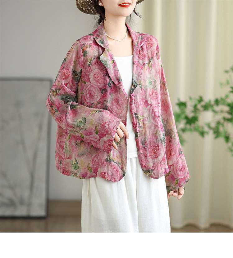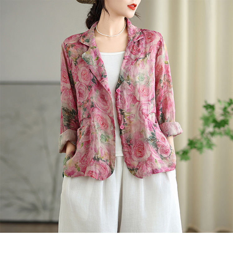 GYH 1292休闲时尚气质宽松复古花西装外套