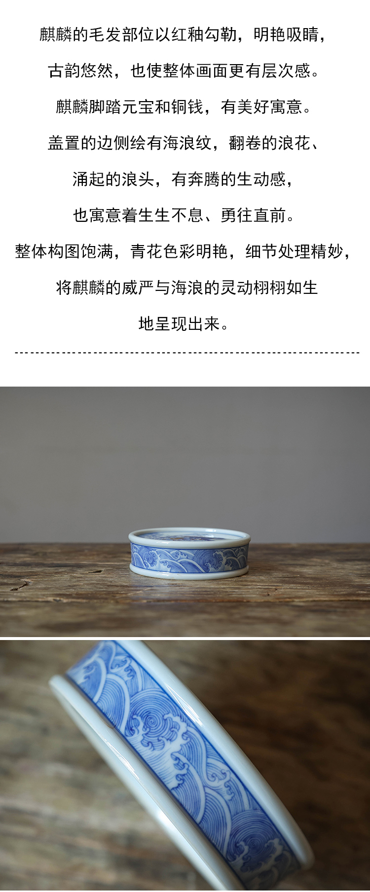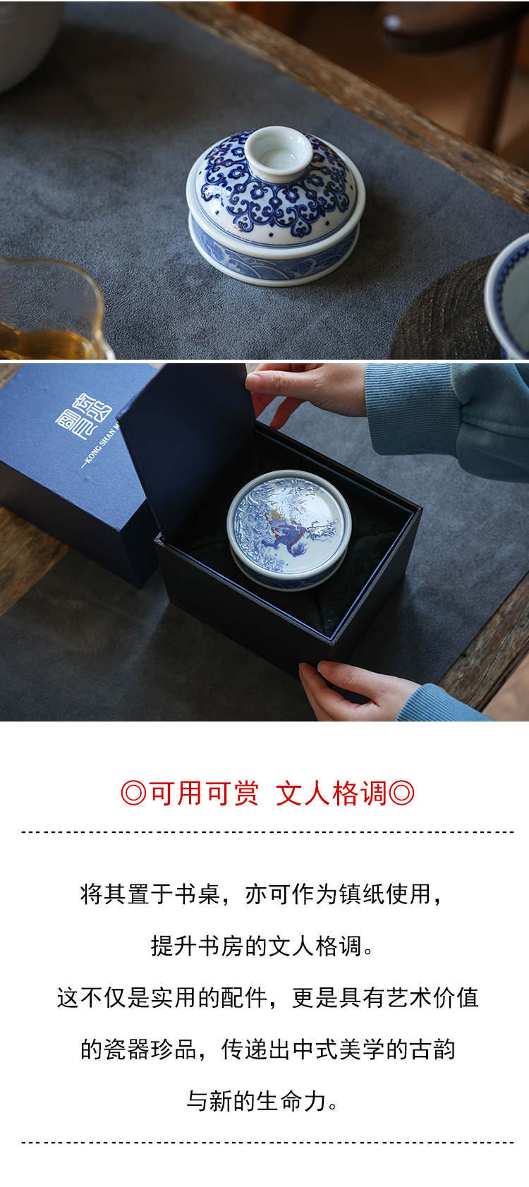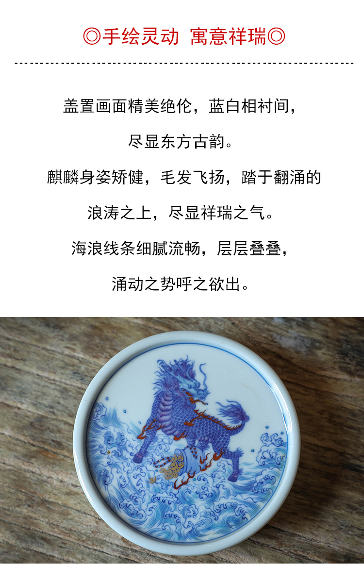 茶香记 景德镇空山明月麒麟踏浪盖置青花茶具红釉陶瓷茶道零配