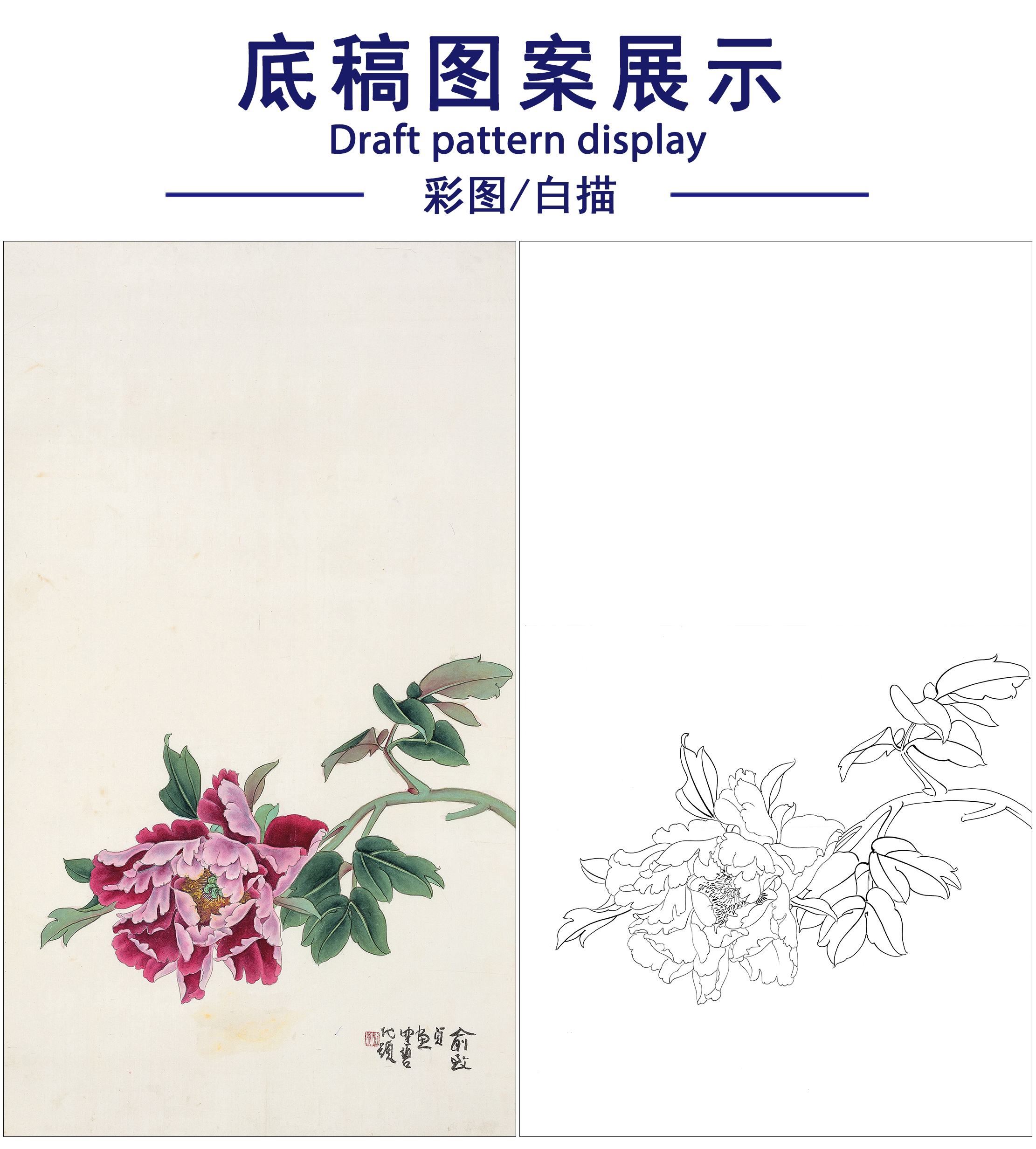 俞致贞花鸟工笔画白描底稿《牡丹》临摹勾线高清打印稿ZZ69