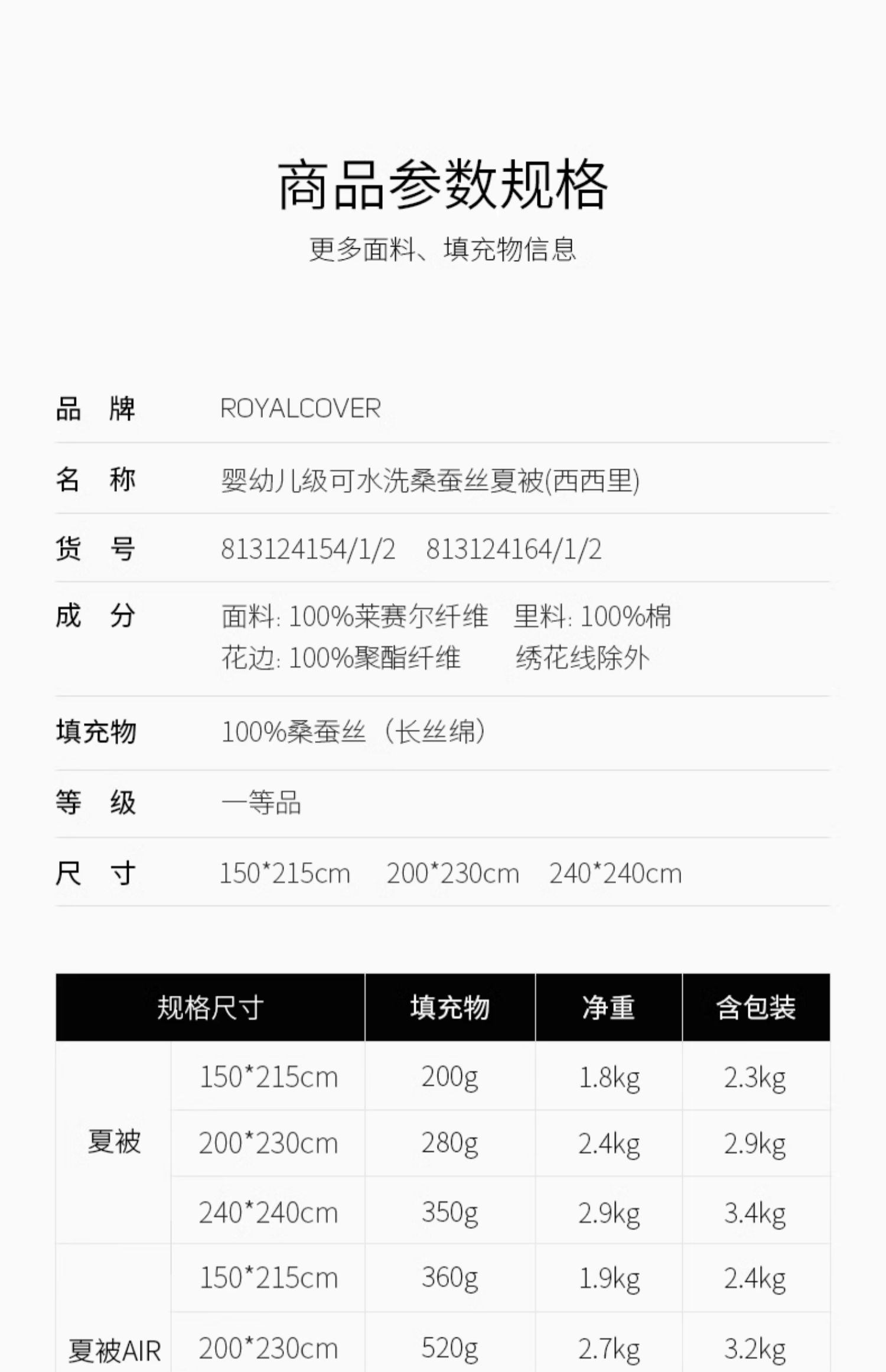 【ROYALCOVER】罗卡芙 西西里婴幼儿级A类可水洗100%桑蚕丝空调夏被