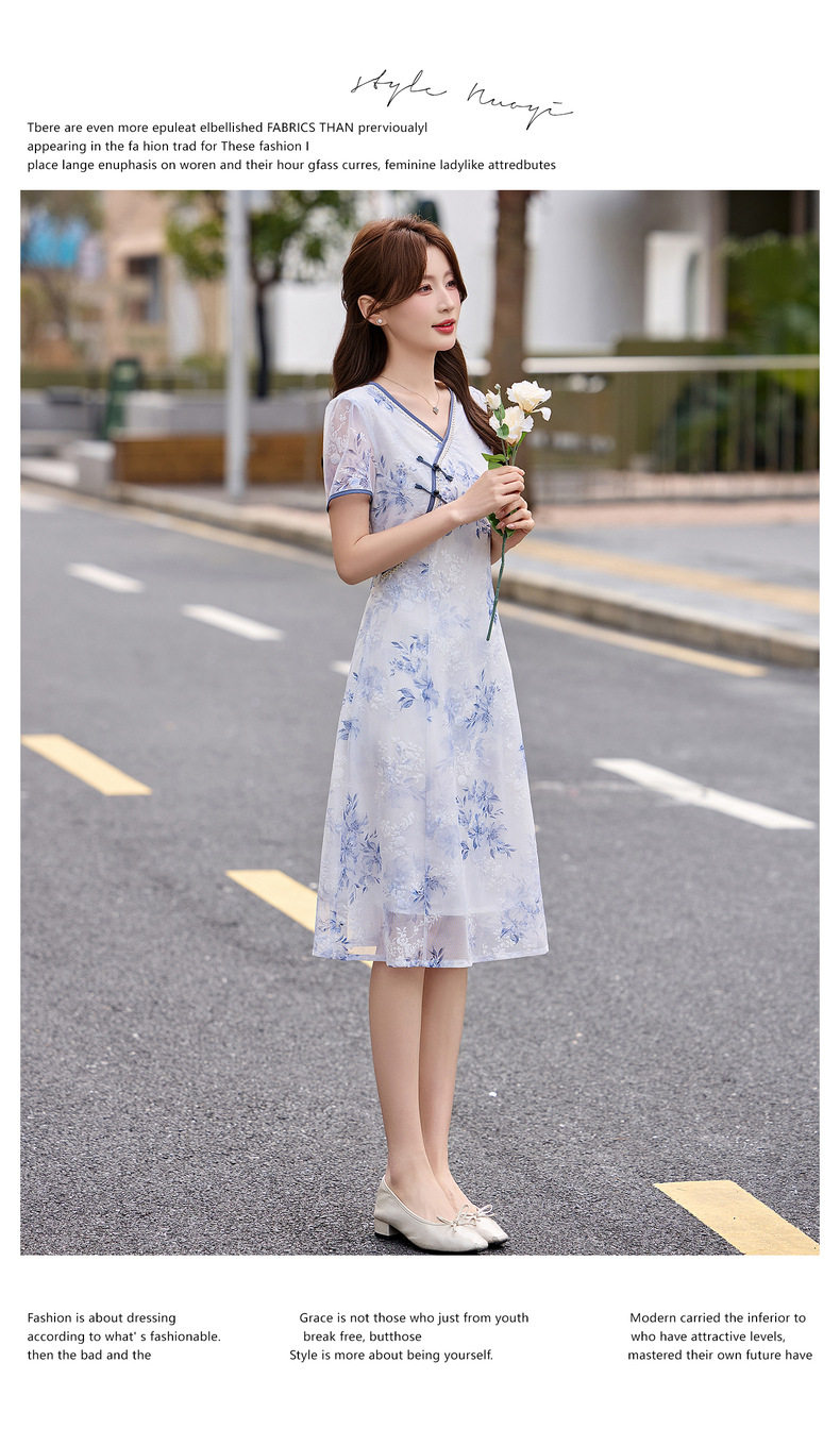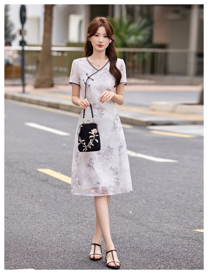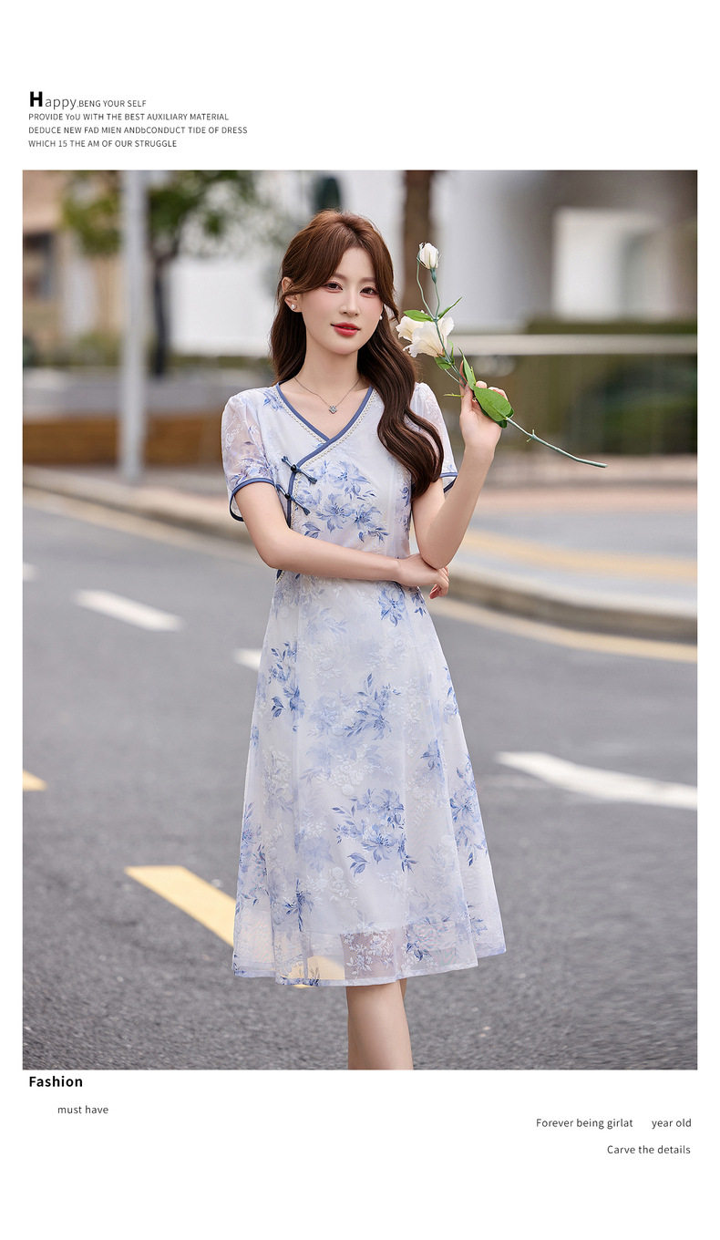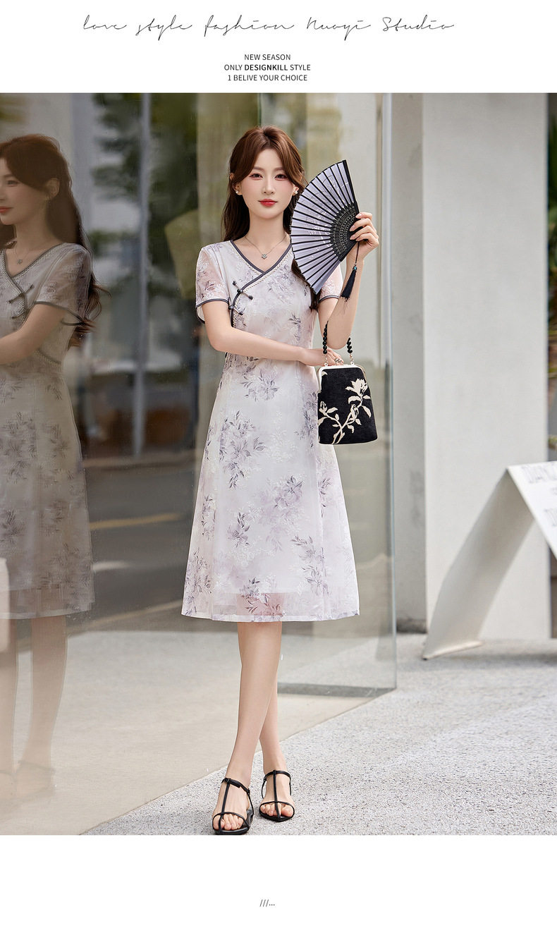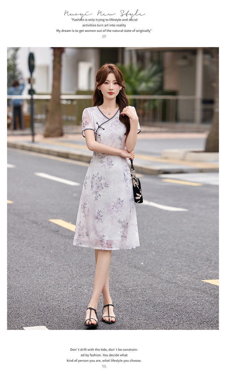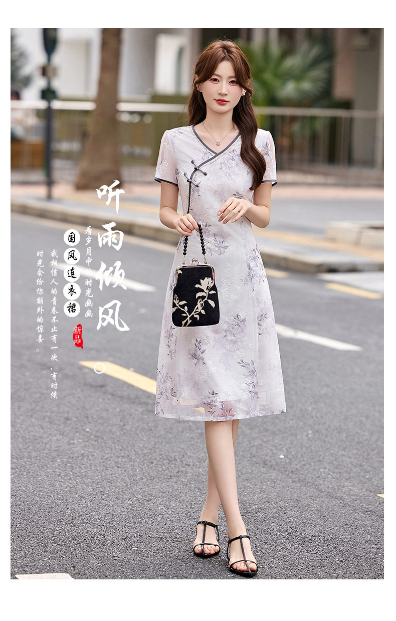 「自」全新升级【铂金会员257/天猫339/差价82】(01032)洛诗琳气质新中式盘扣连衣裙2026新款V领显瘦中长款印花裙