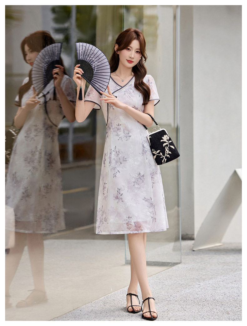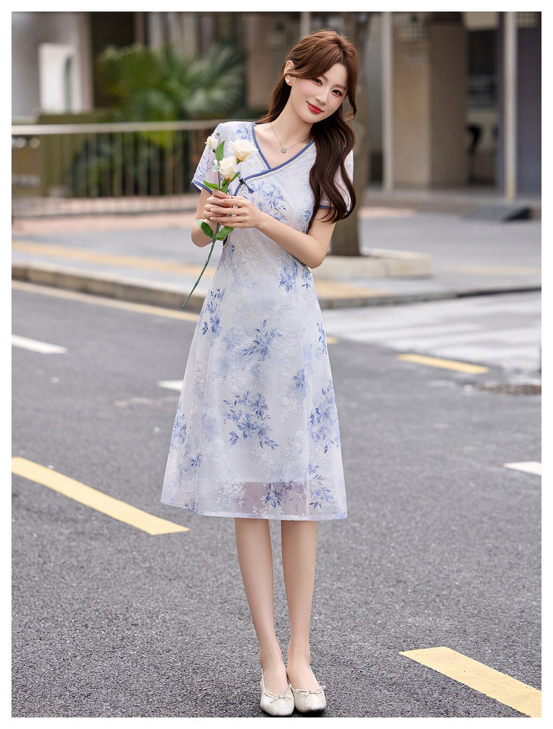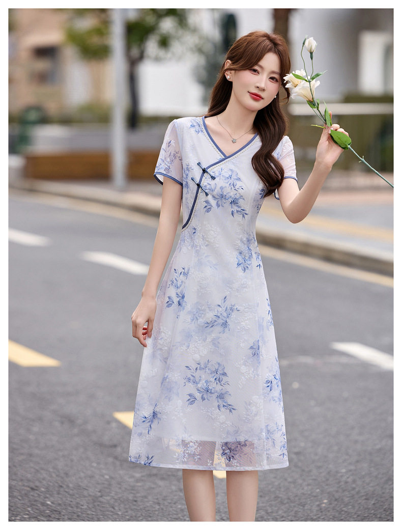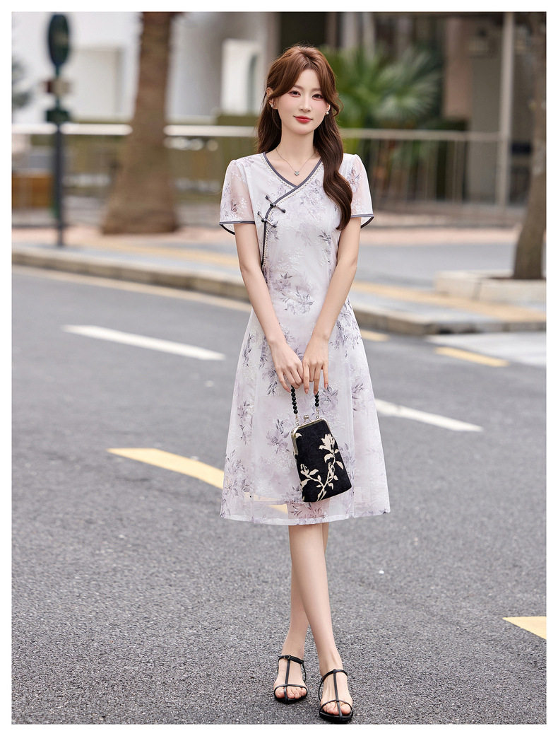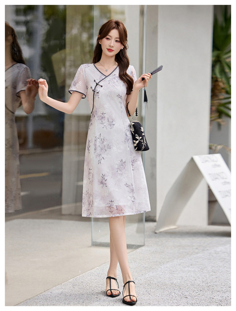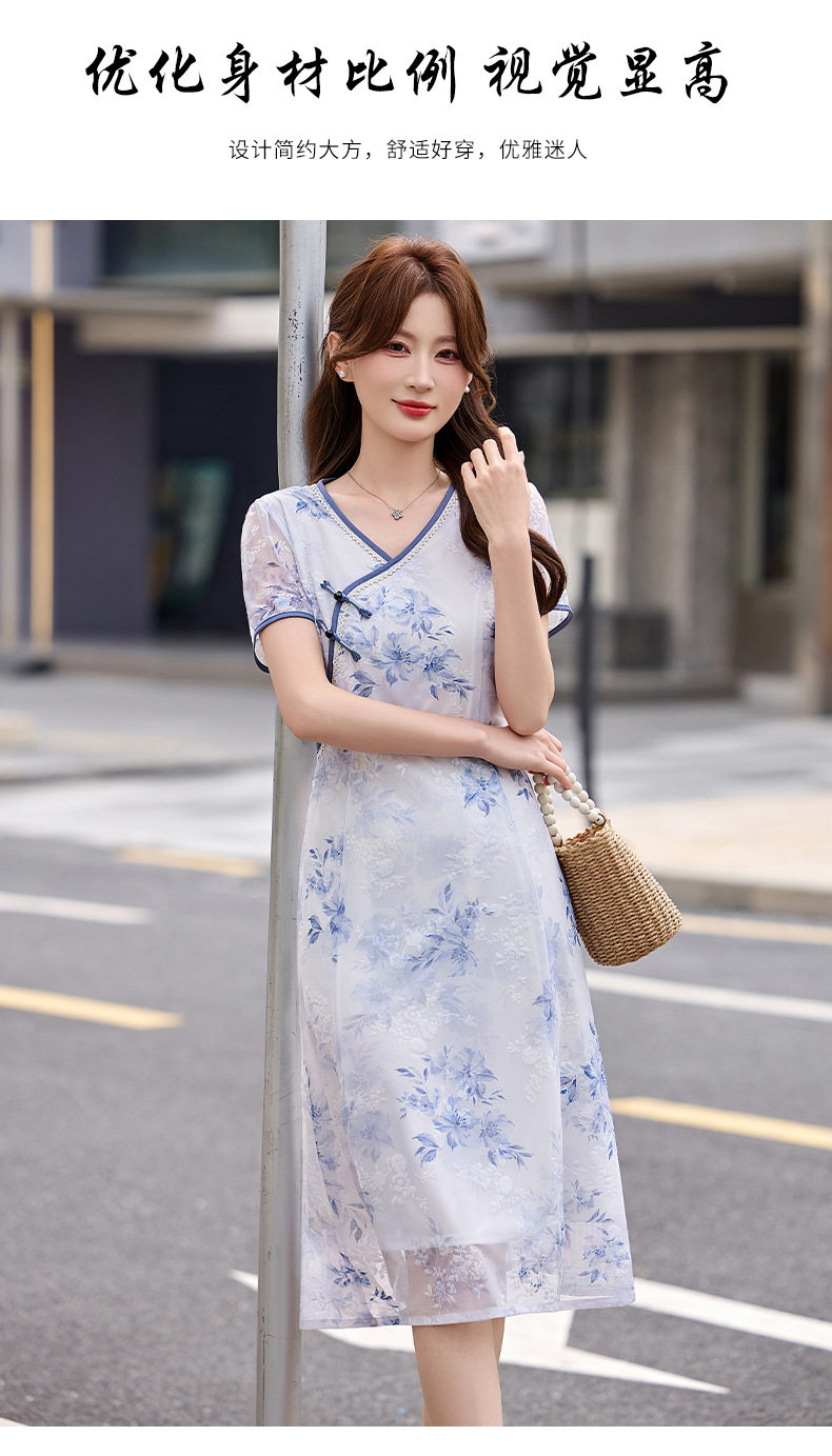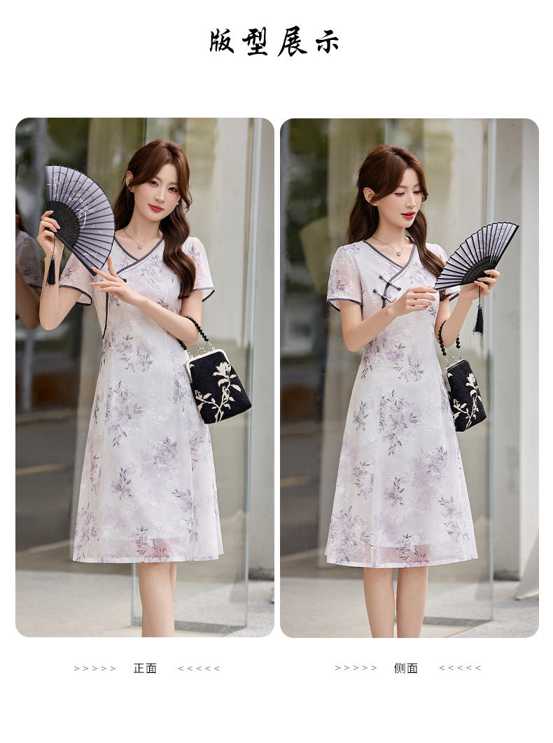 「自」全新升级【铂金会员257/天猫339/差价82】(01032)洛诗琳气质新中式盘扣连衣裙2026新款V领显瘦中长款印花裙
