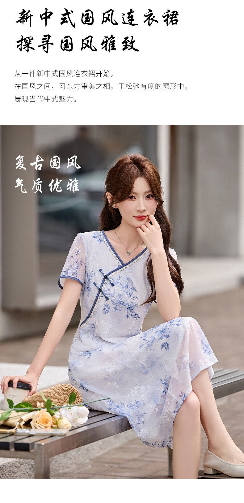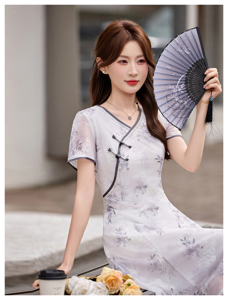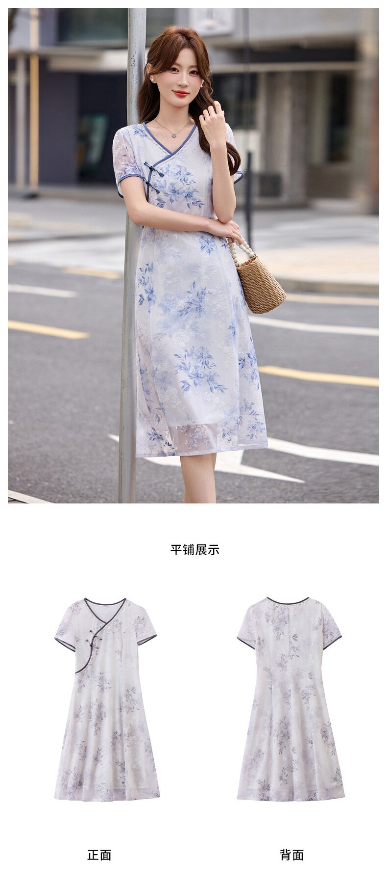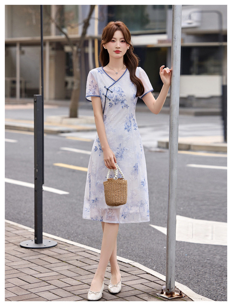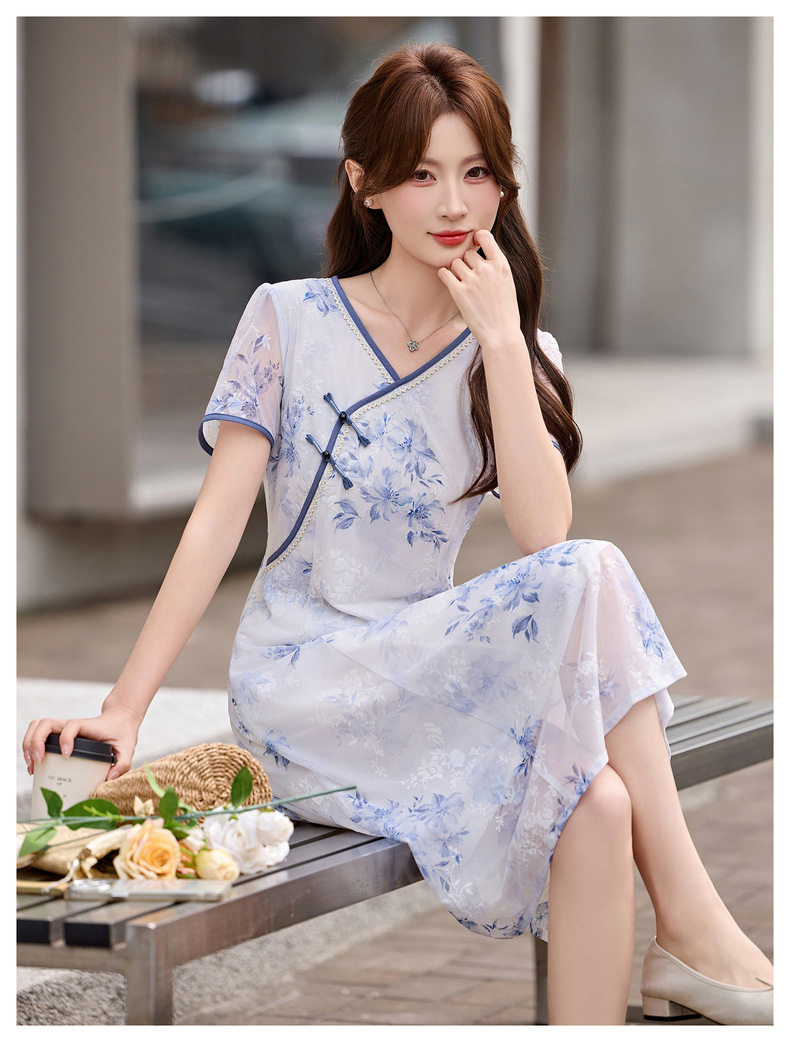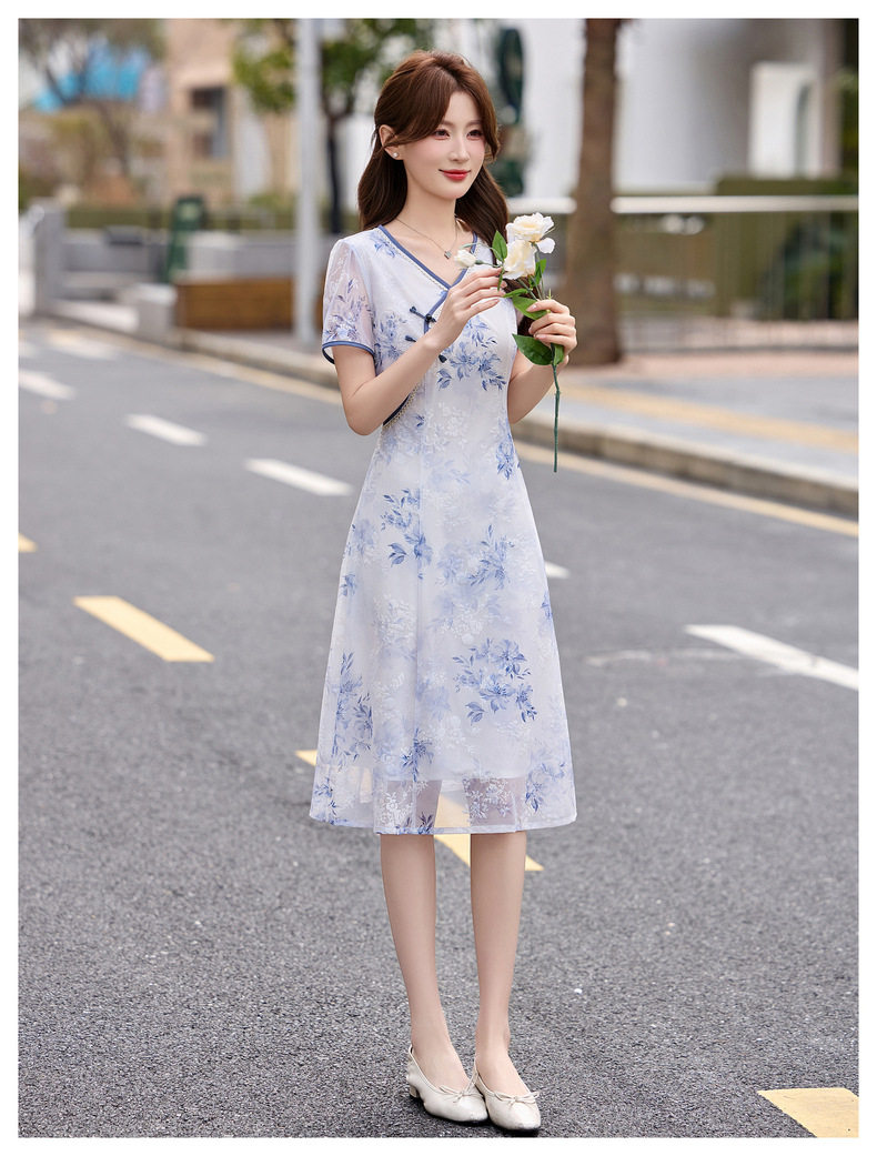 「自」全新升级【铂金会员257/天猫339/差价82】(01032)洛诗琳气质新中式盘扣连衣裙2026新款V领显瘦中长款印花裙