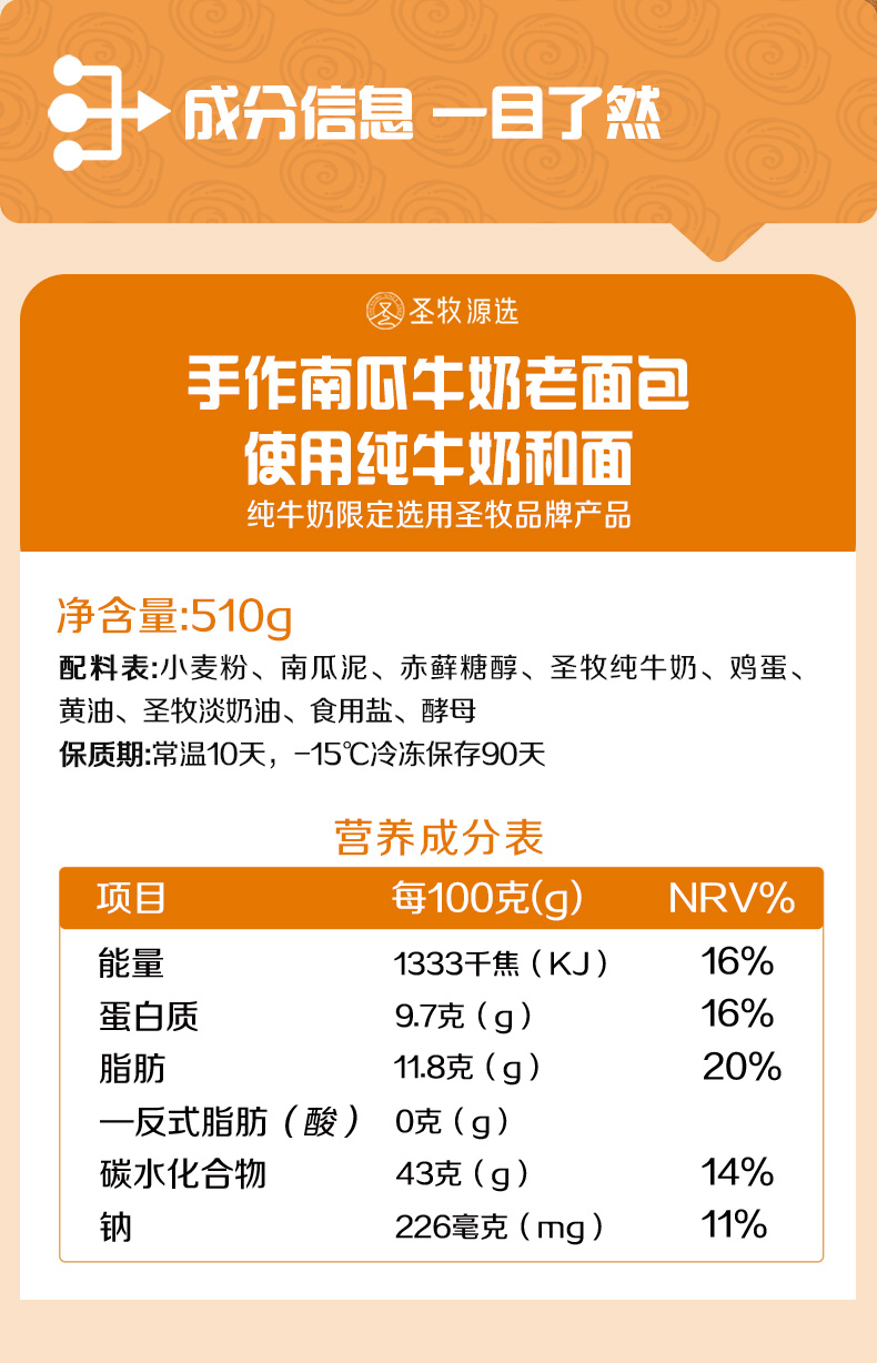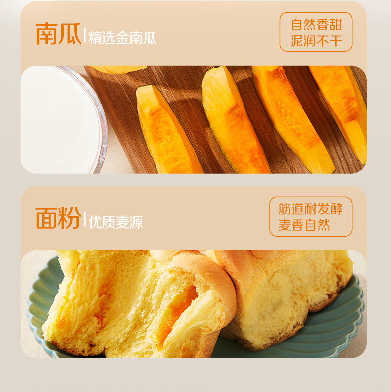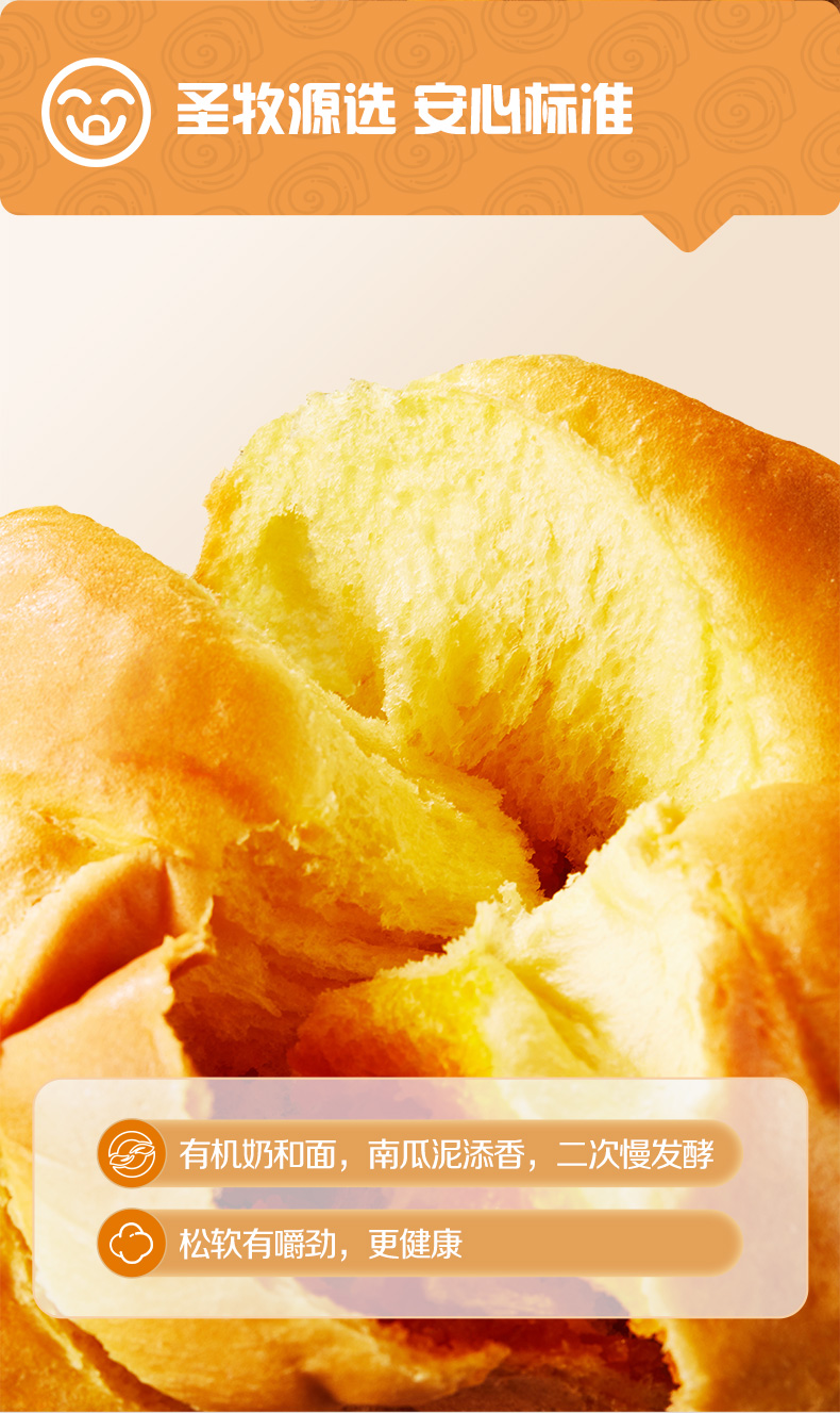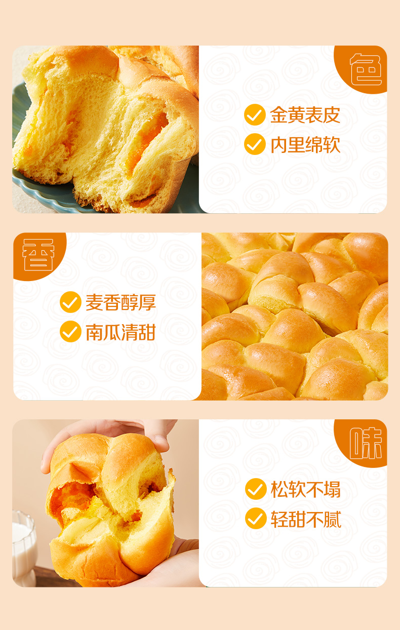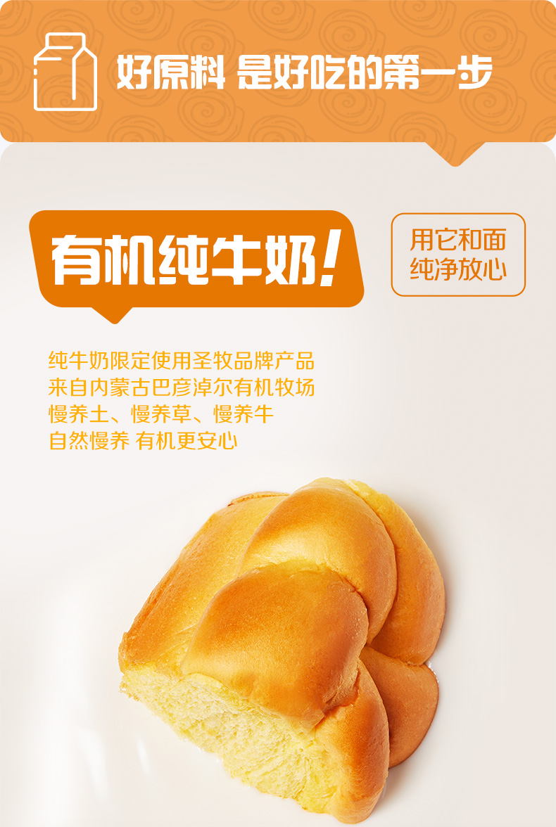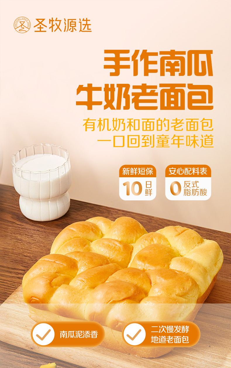有机纯牛奶和面 | 手作南瓜牛奶老面包 早餐面包餐包 510g/袋 [新鲜短保,请尽快食用]