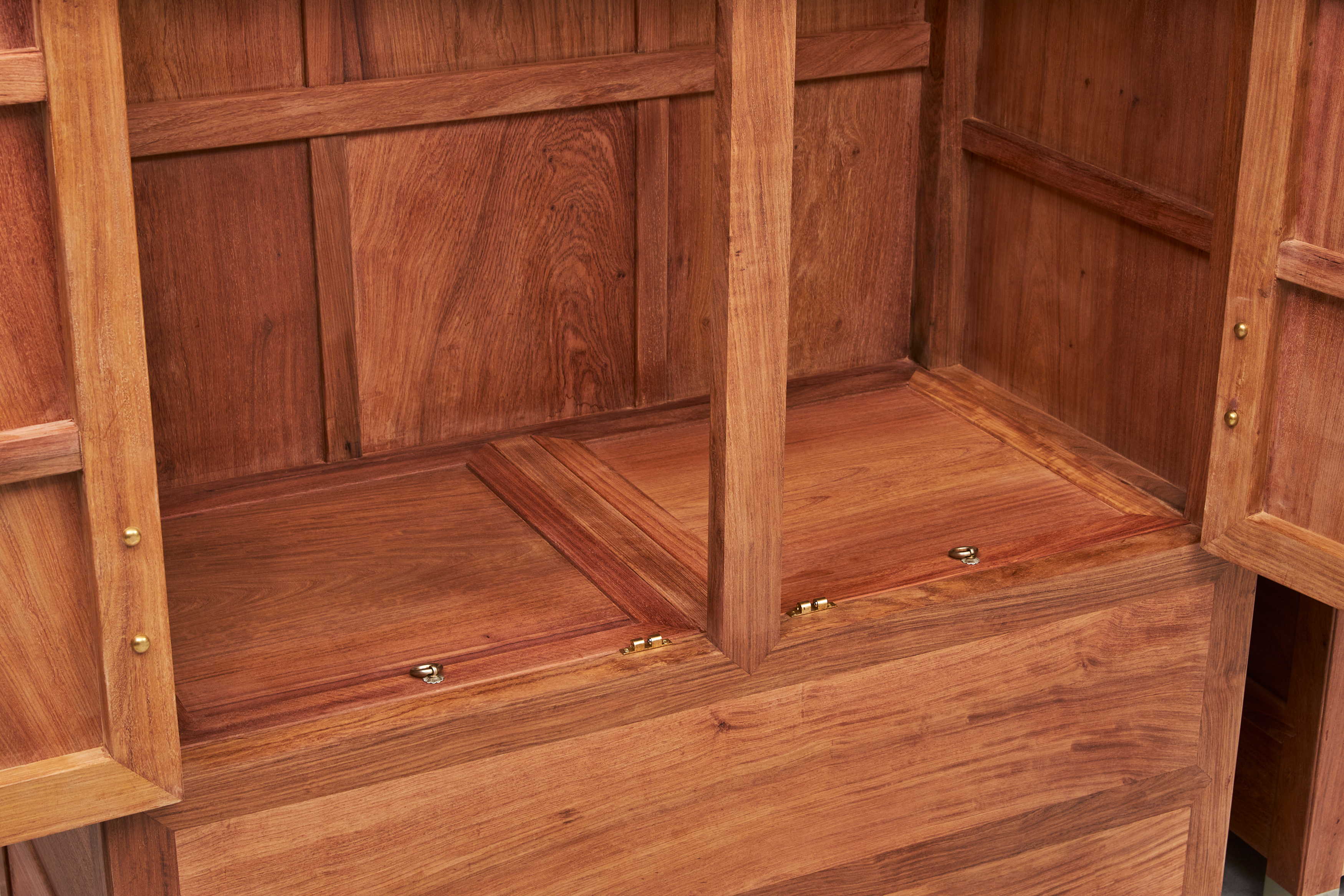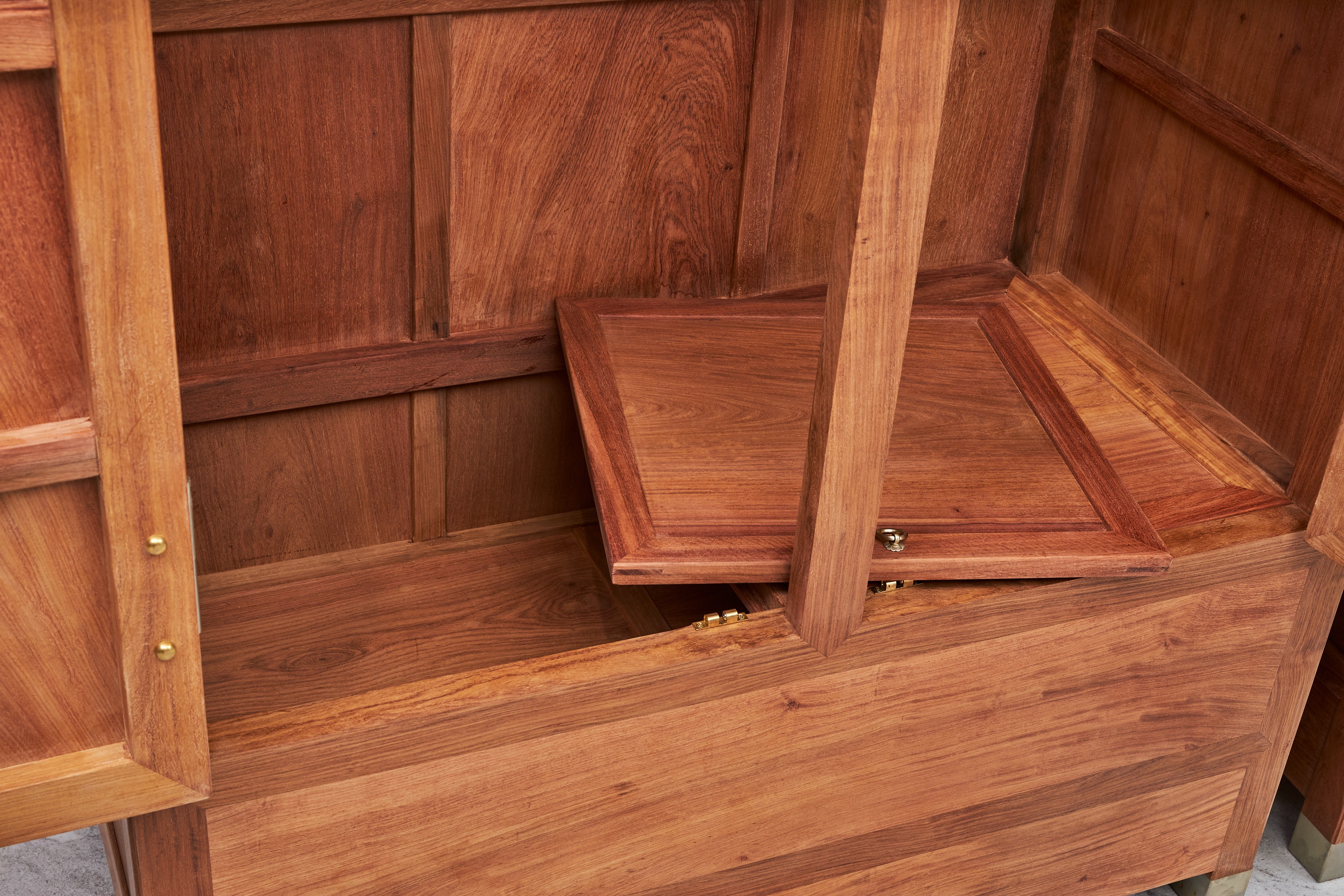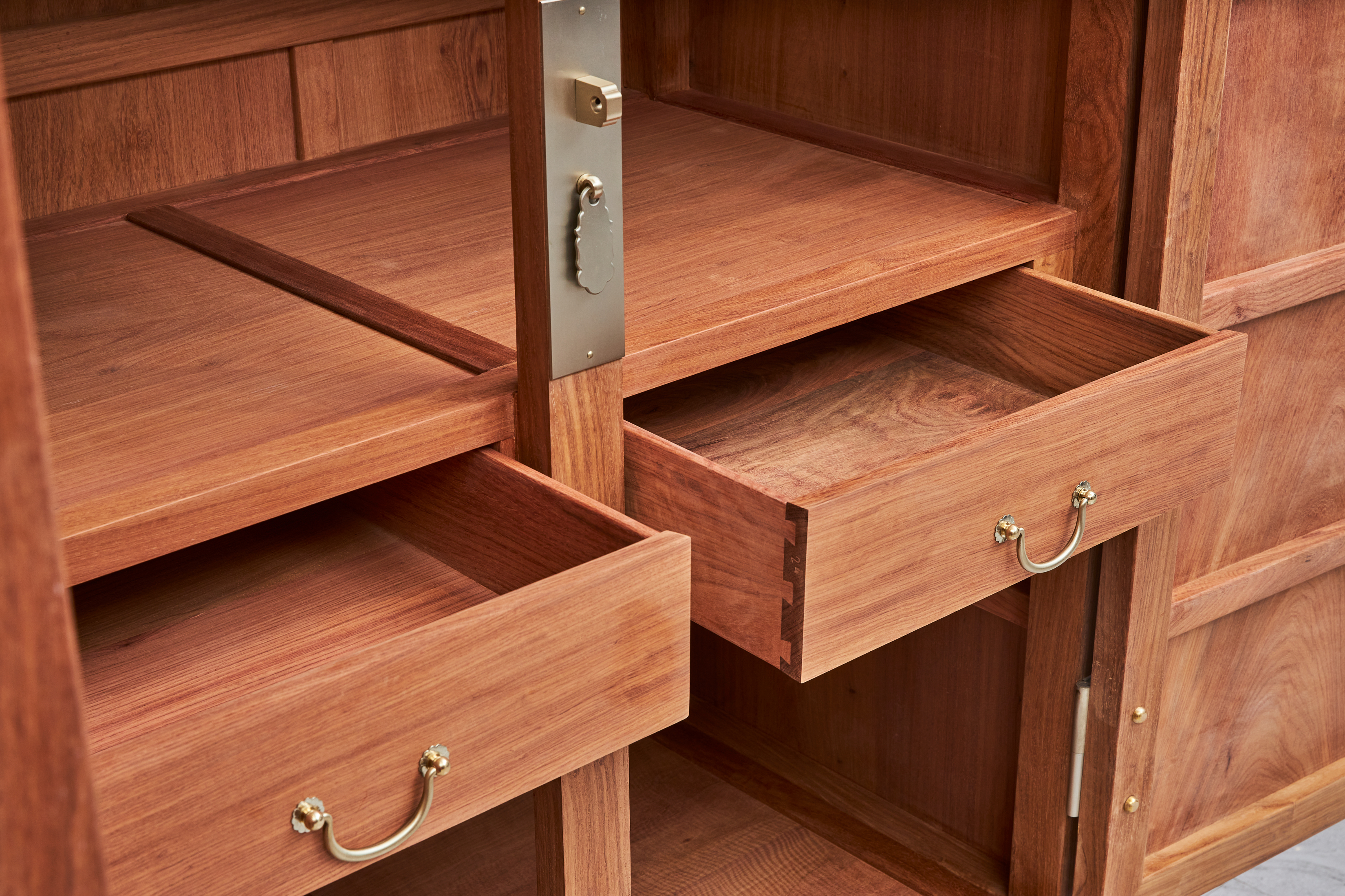 尤其正面通常取同料一木所开,因而制作精良者很难量产,有闩杆及柜膛,柜膛上盖板做闷仓。