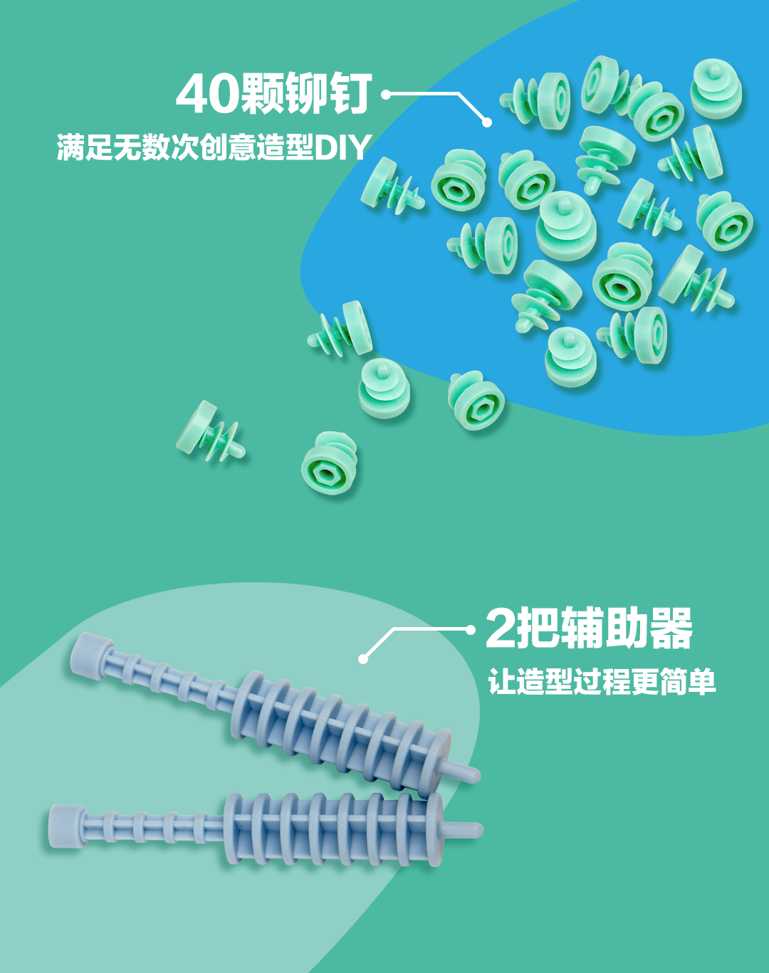 造型说明:宇宙飞船(1盒铆钉+5张纸板)、汽车人(3盒铆钉+10张纸板)···