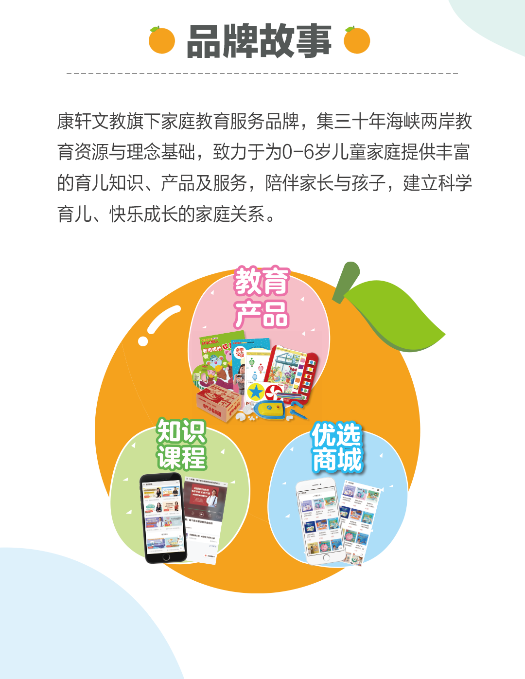 - 康轩文教旗下家庭教育服务品牌,集三十年海峡两岸教育资源与理念基础,致力于为0-6岁儿童家庭提供丰富的育儿知识、产品及服务,陪伴家长与孩子,建立科学育儿、快乐成长的家庭关系。