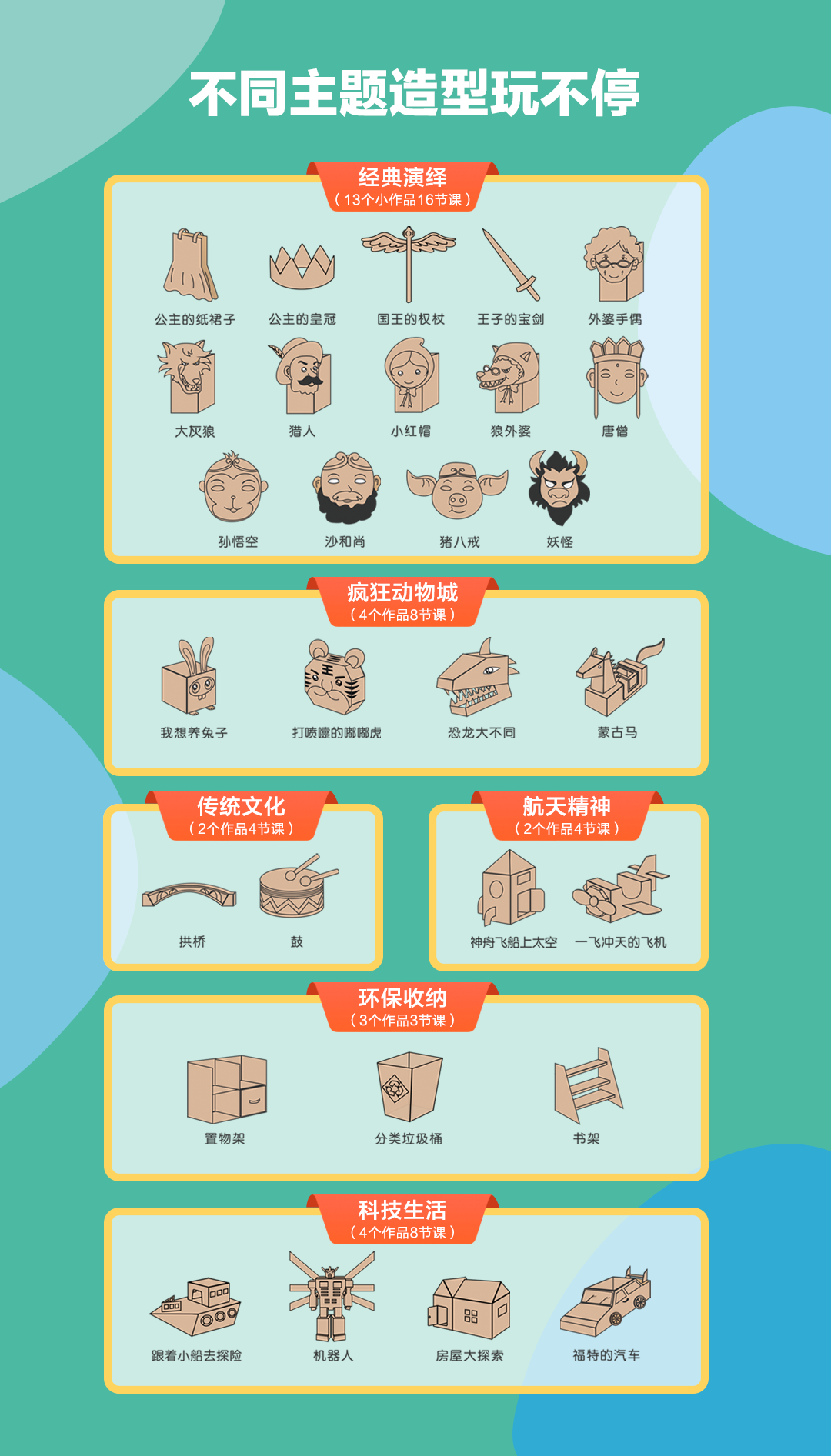 疯狂的铆钉-steam纸箱创意课 6大主题 28+造型 40节课程 纸盒的百变之旅