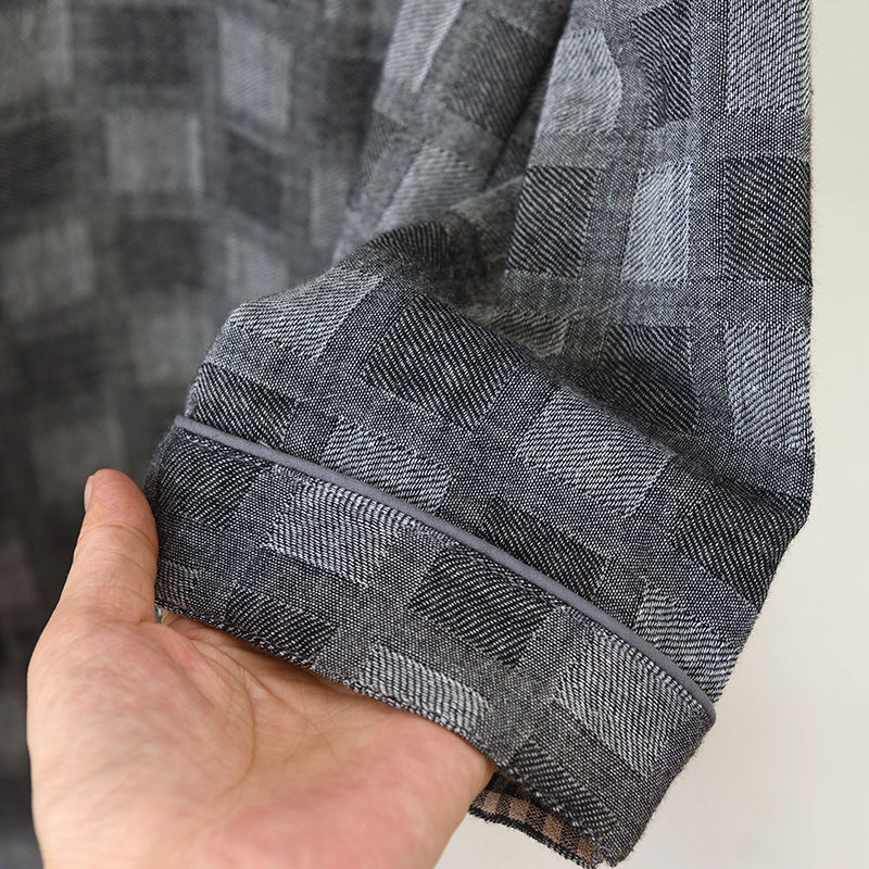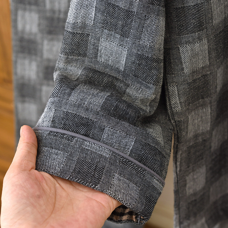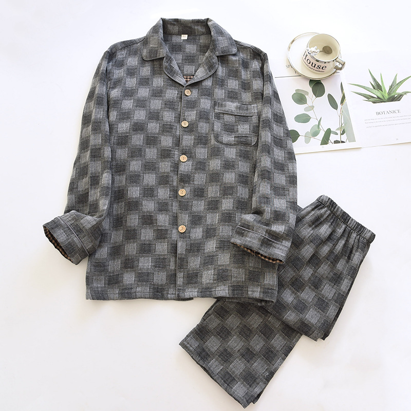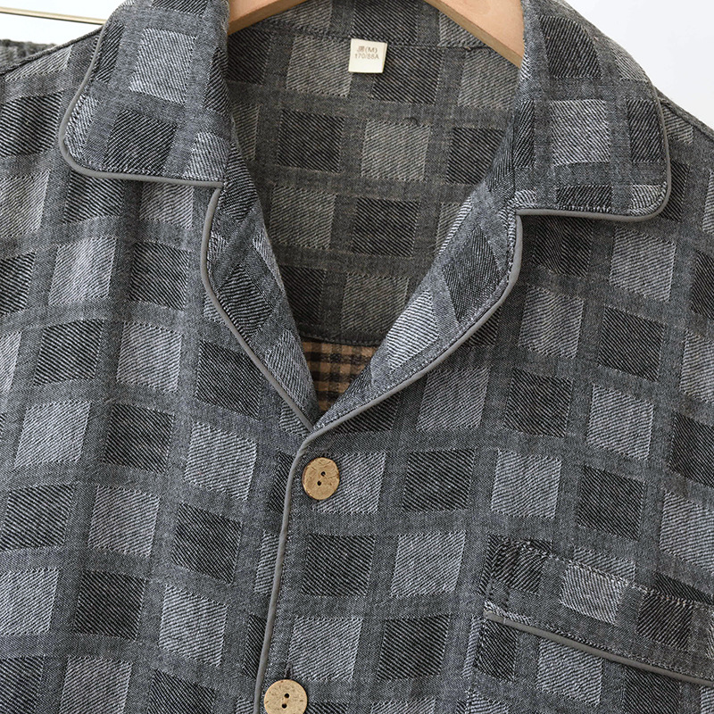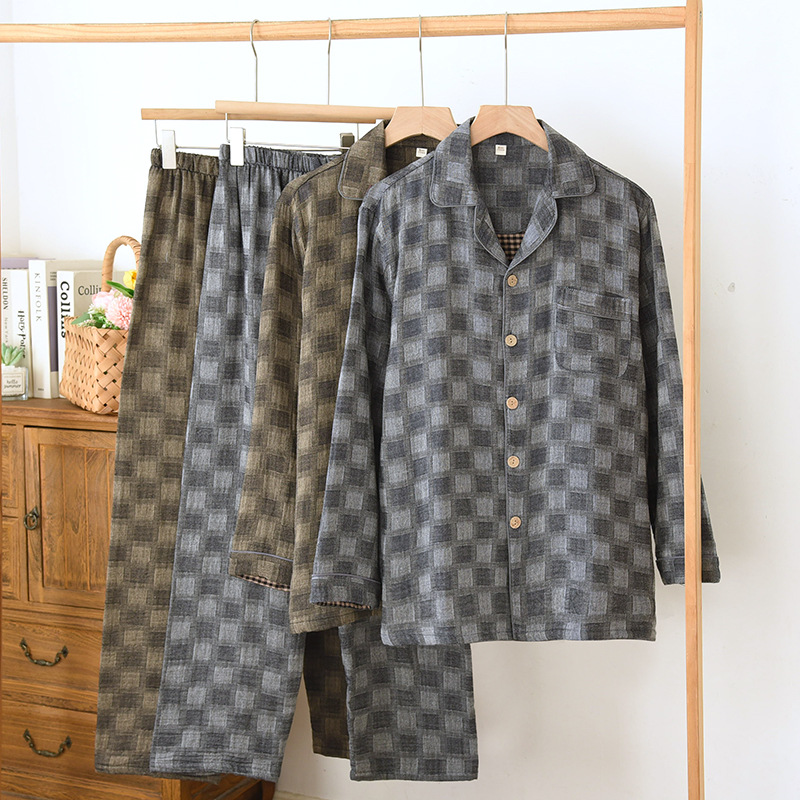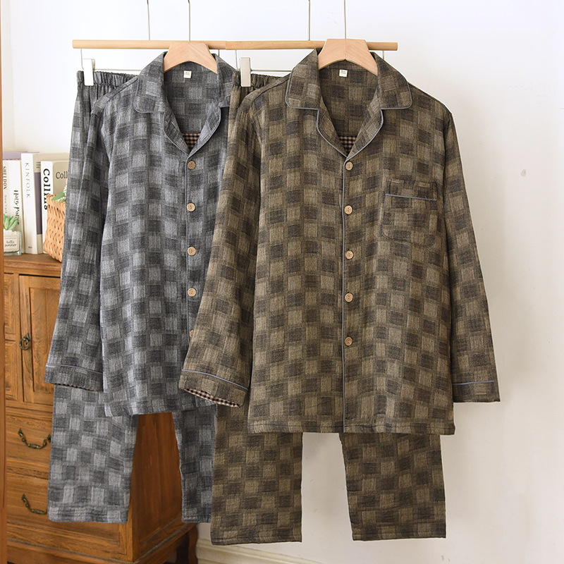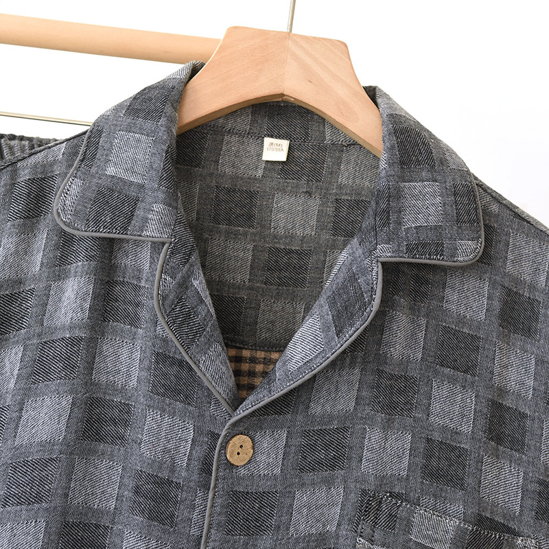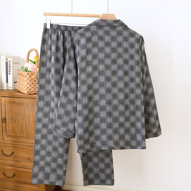 雀说 男士睡衣春秋款纯棉长袖格子家居服