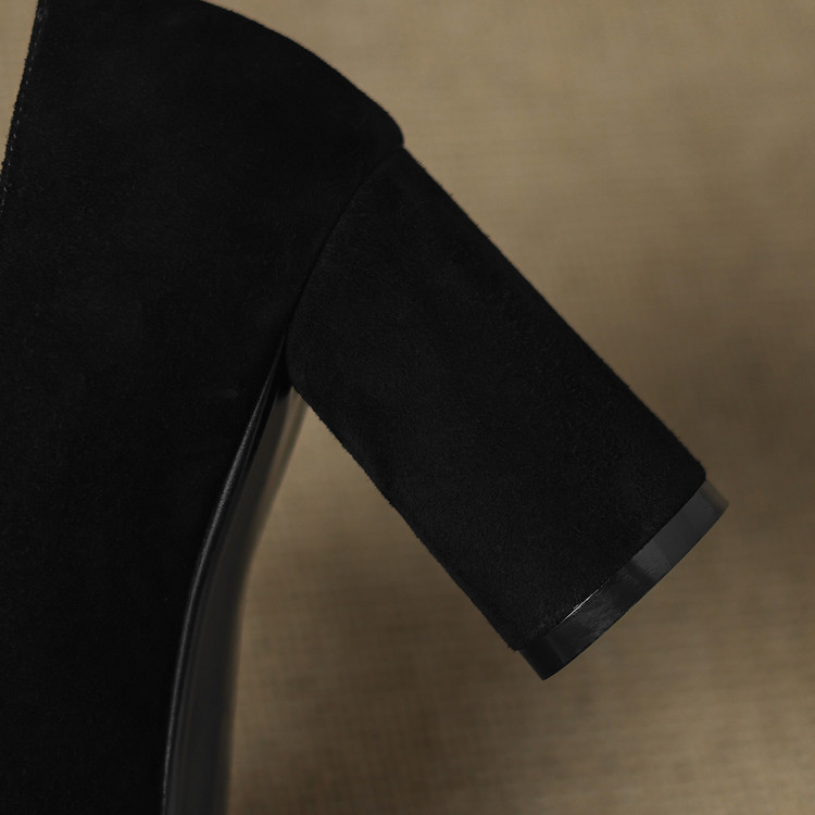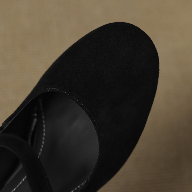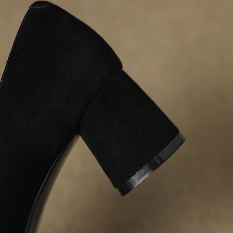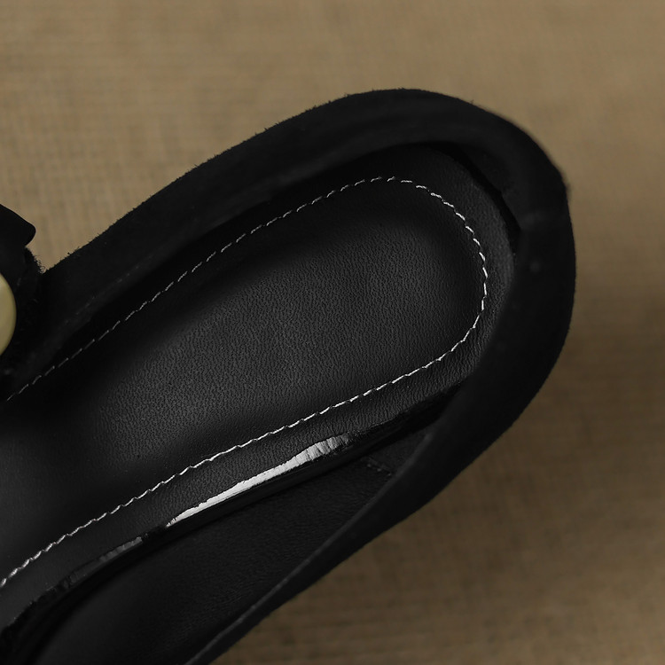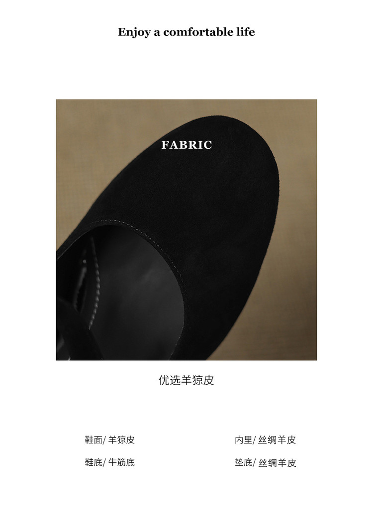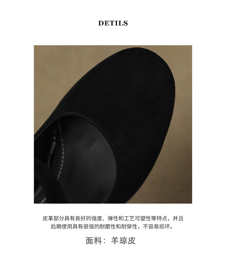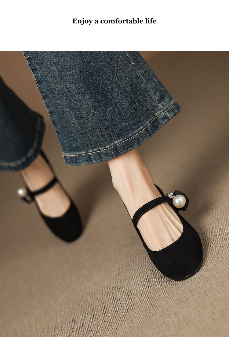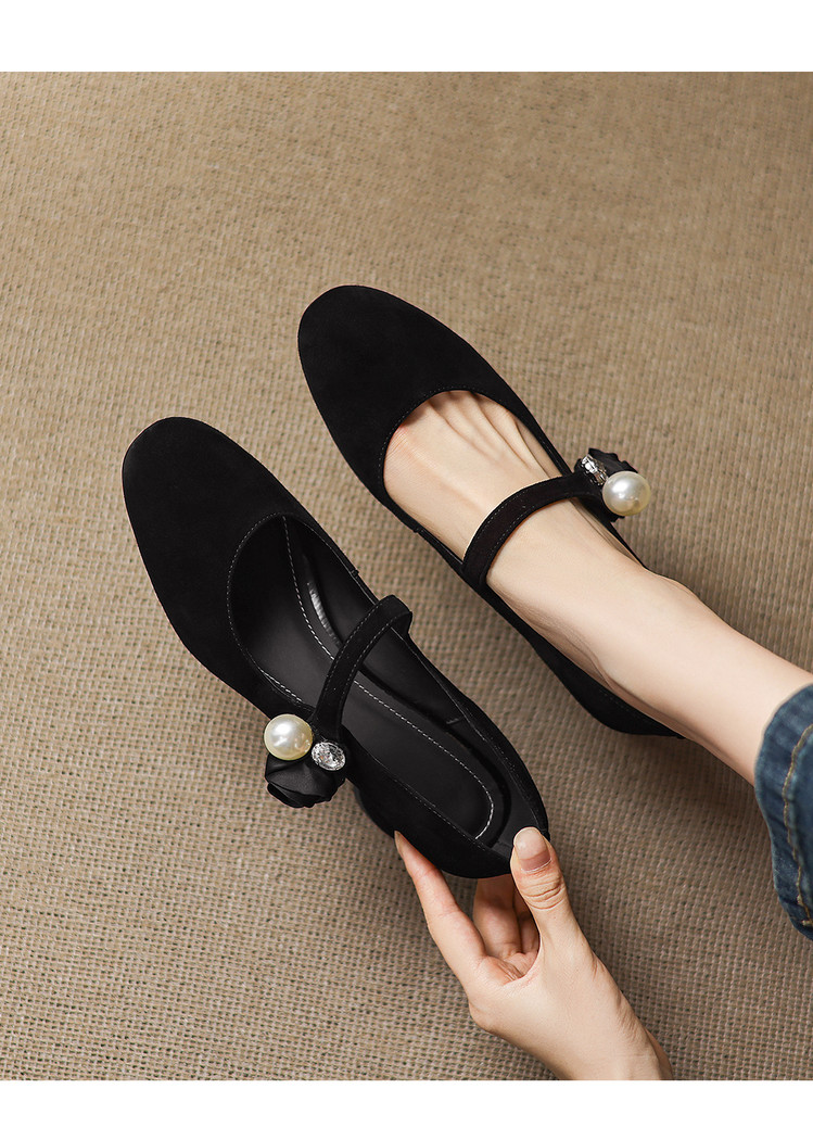 【预售5天】经典复古风黑色羊反皮粗跟珍珠一字带高跟单鞋百搭玛丽珍高跟鞋MNLS&D2533