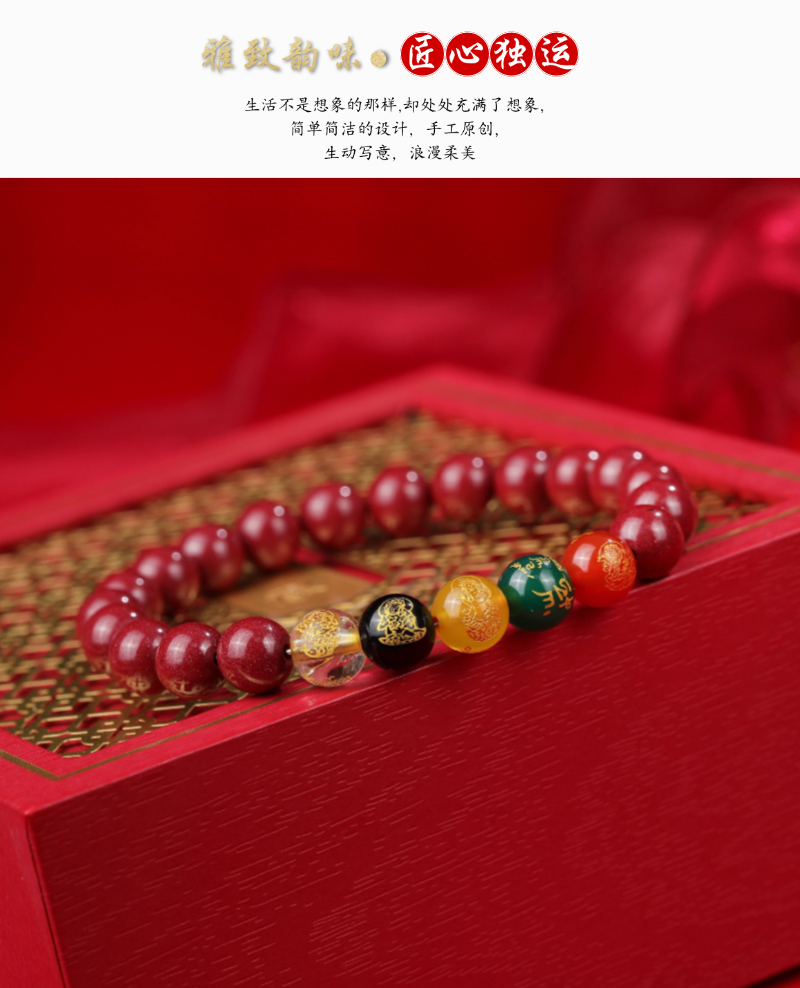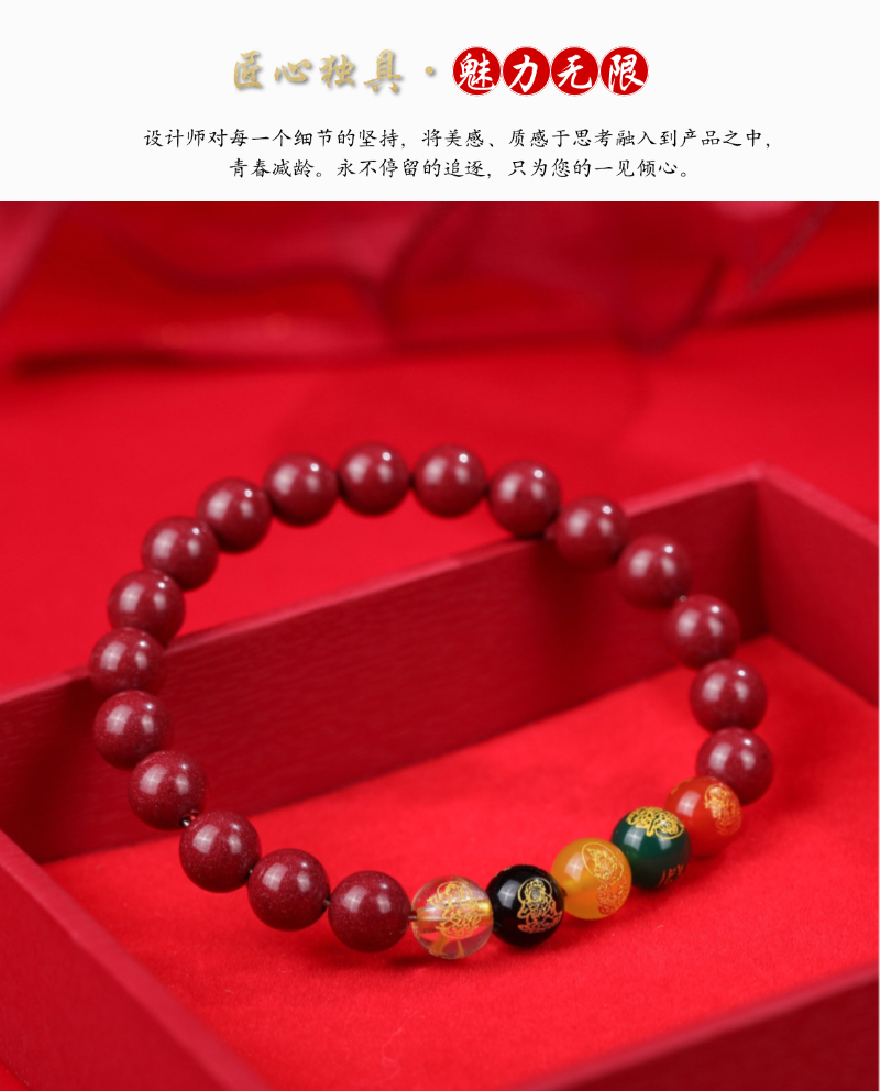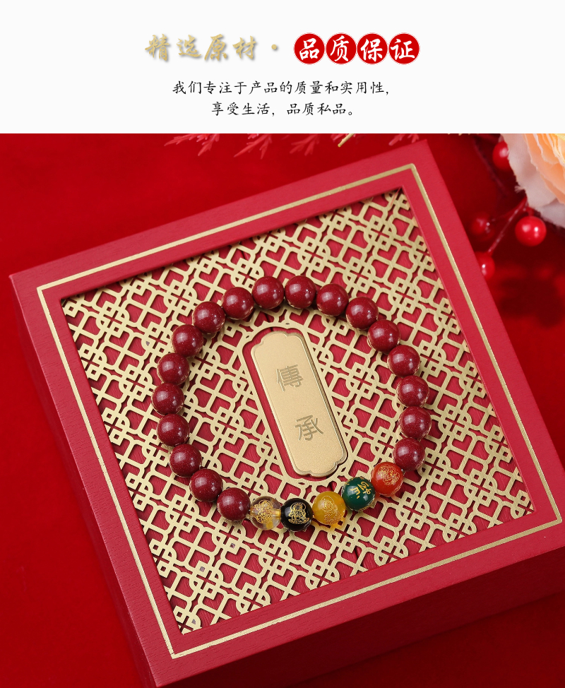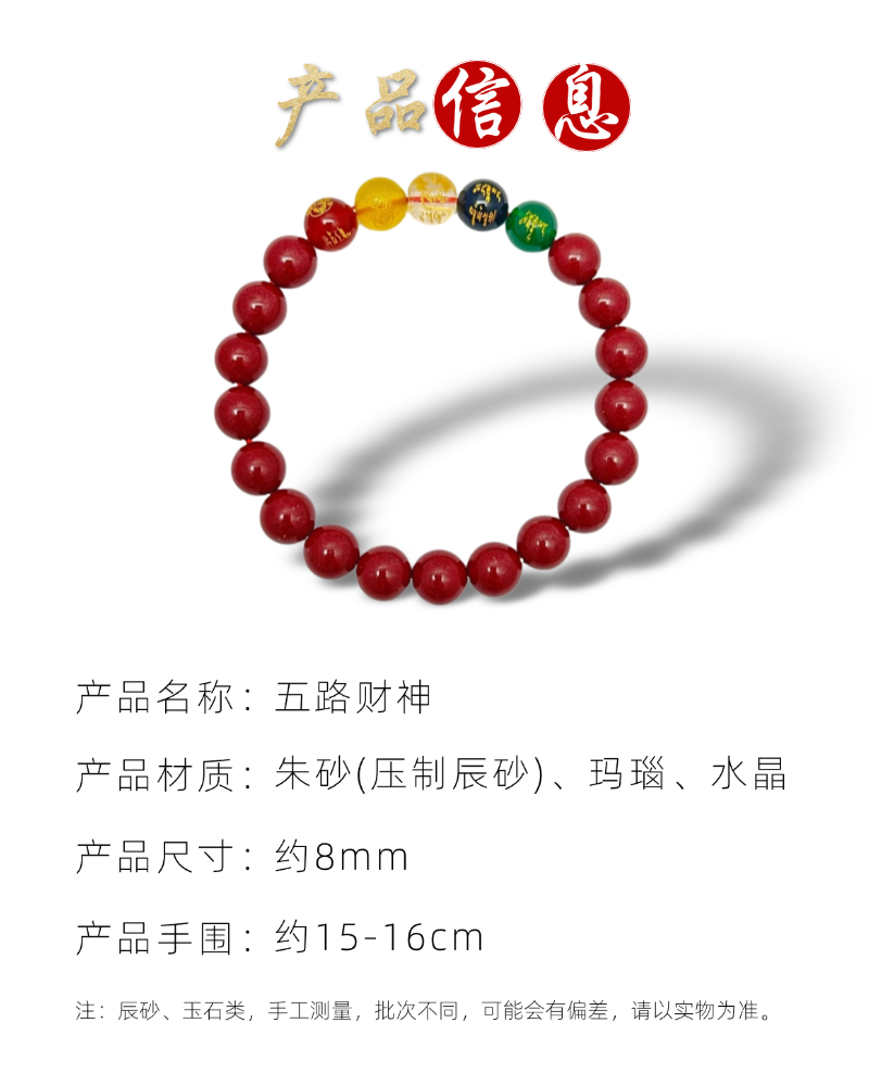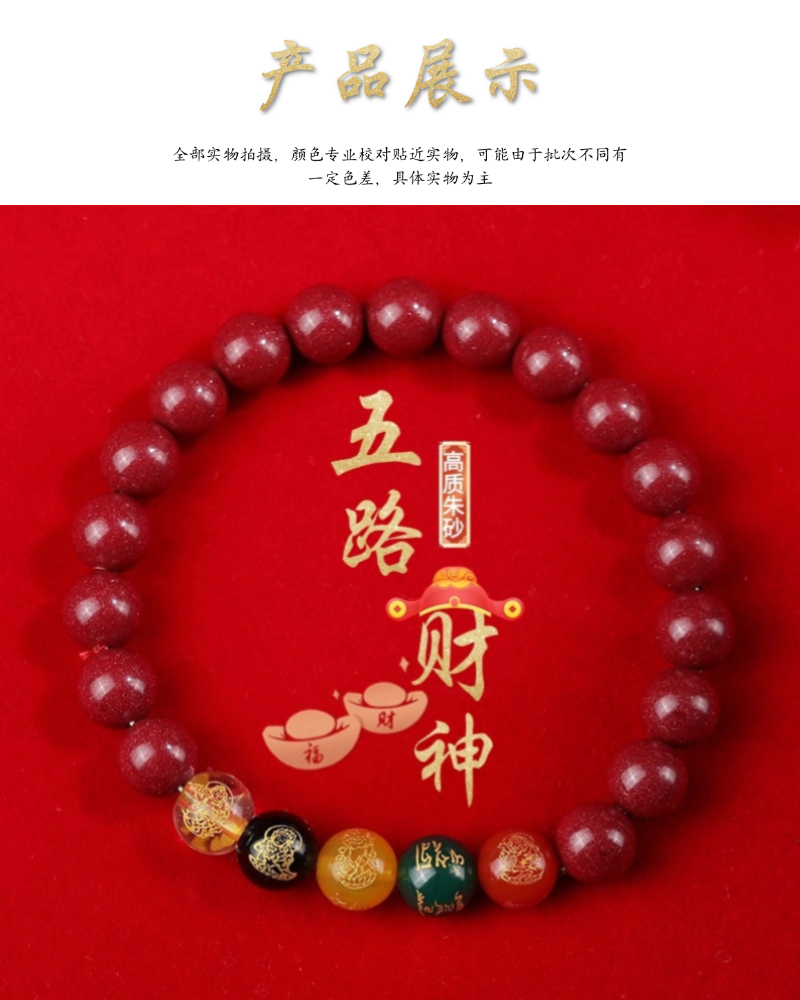 珩钻 国潮系列五路财神高质朱砂手链6mm