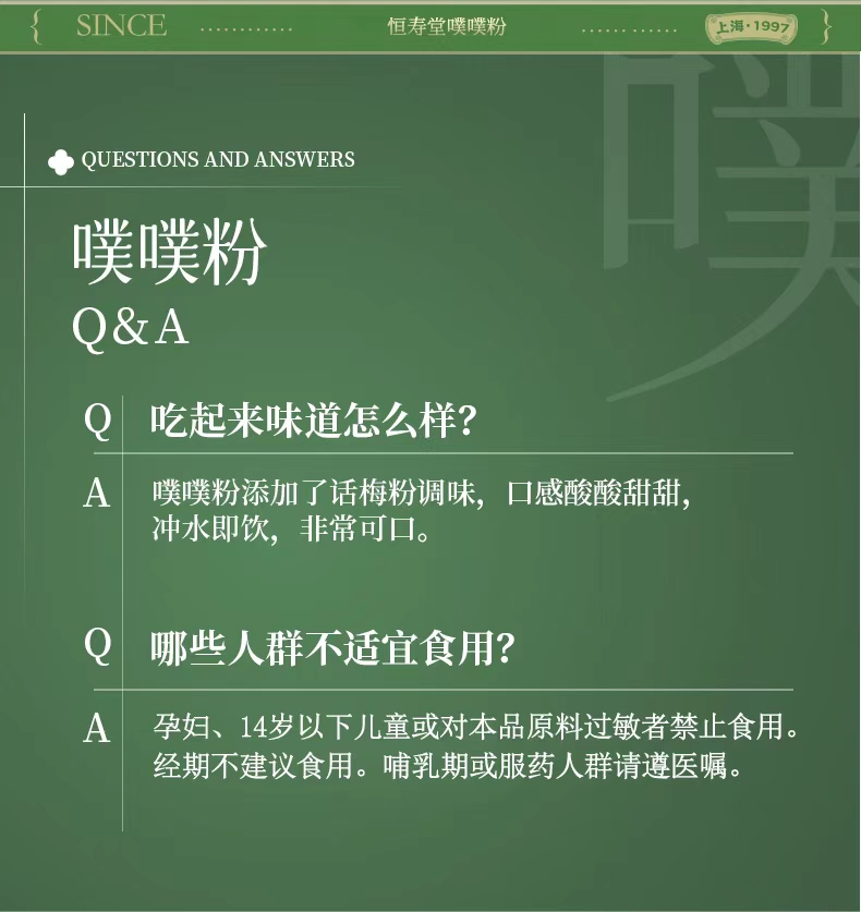 【品名】恒寿堂 噗噗粉 人参火麻仁膳食纤维粉 【规格】 6条*4盒(到手24条 疗程装) 10条*5盒(到手50条 周期装) 【产地】国内 【保质期】24个月 【发货包装】独立包装 【发货地】安徽 【发货快递】极兔、圆通、EMS随机发 【不发货区域】新疆、西藏、港澳台 【补邮费地区】内蒙古、宁夏、甘肃、青海、海南+6元/单 【发货时效】48-72小时,周末节假日顺延 |