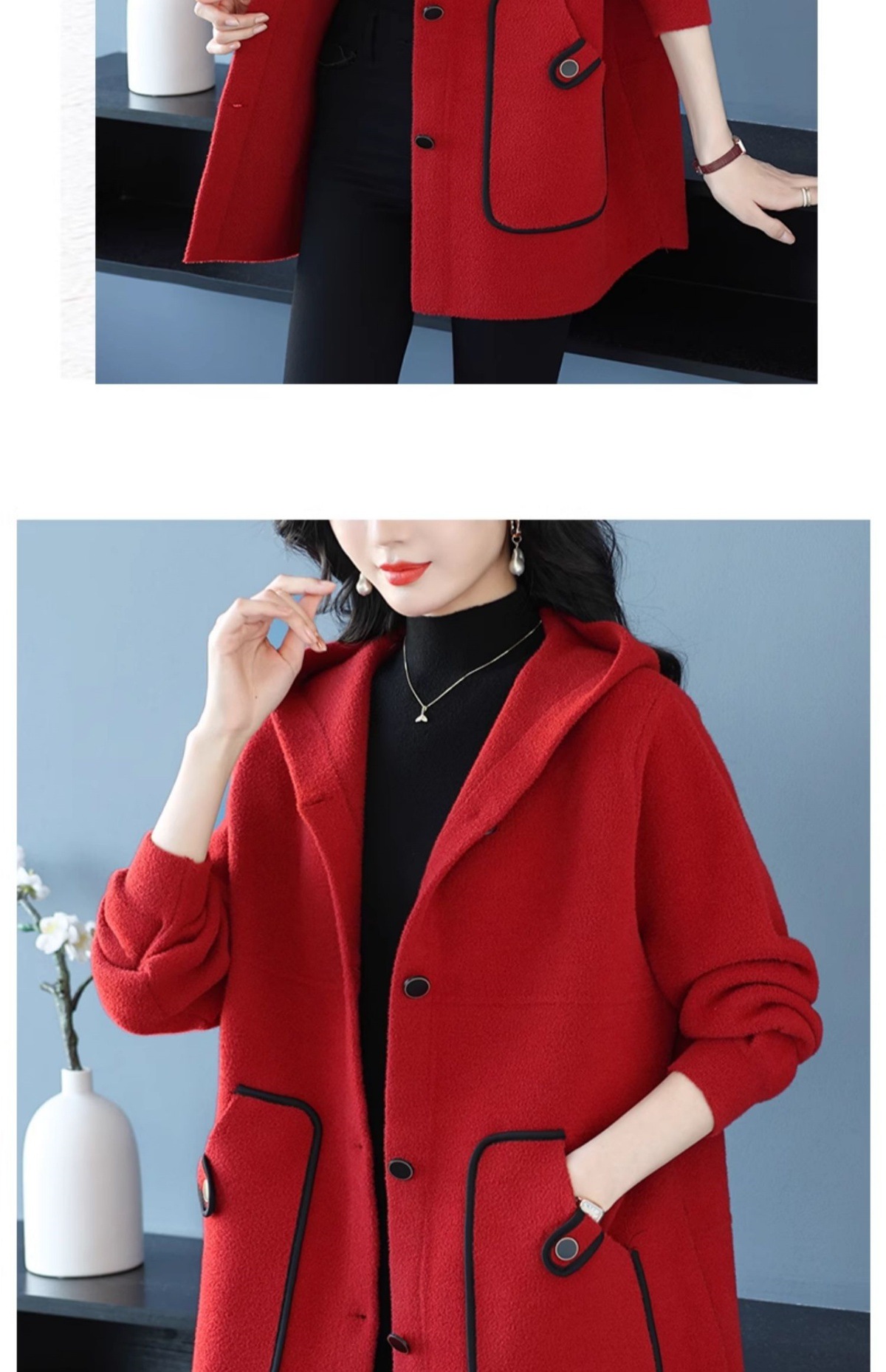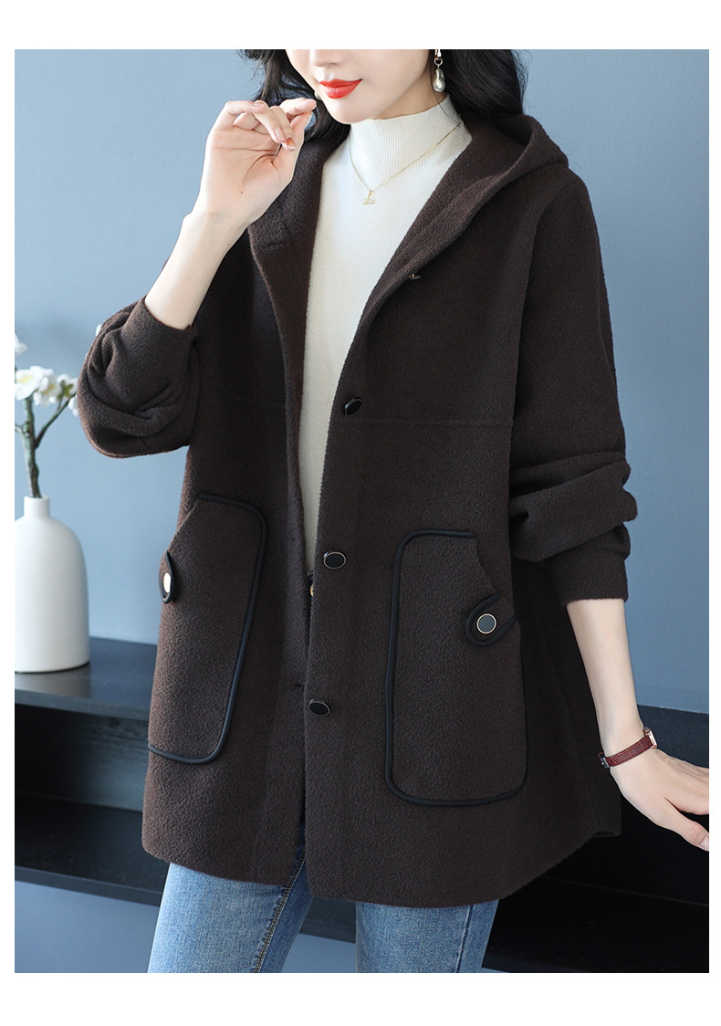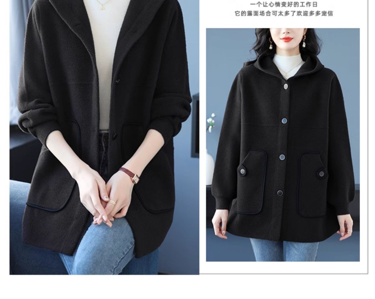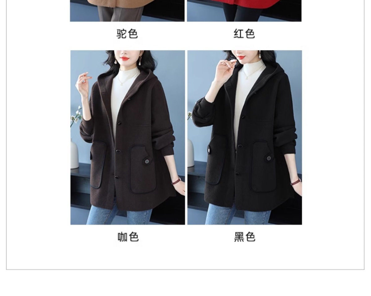 CC-10-5757气质小个子双面尼大衣女中长款2024年新款秋冬时尚宽松毛呢外套
