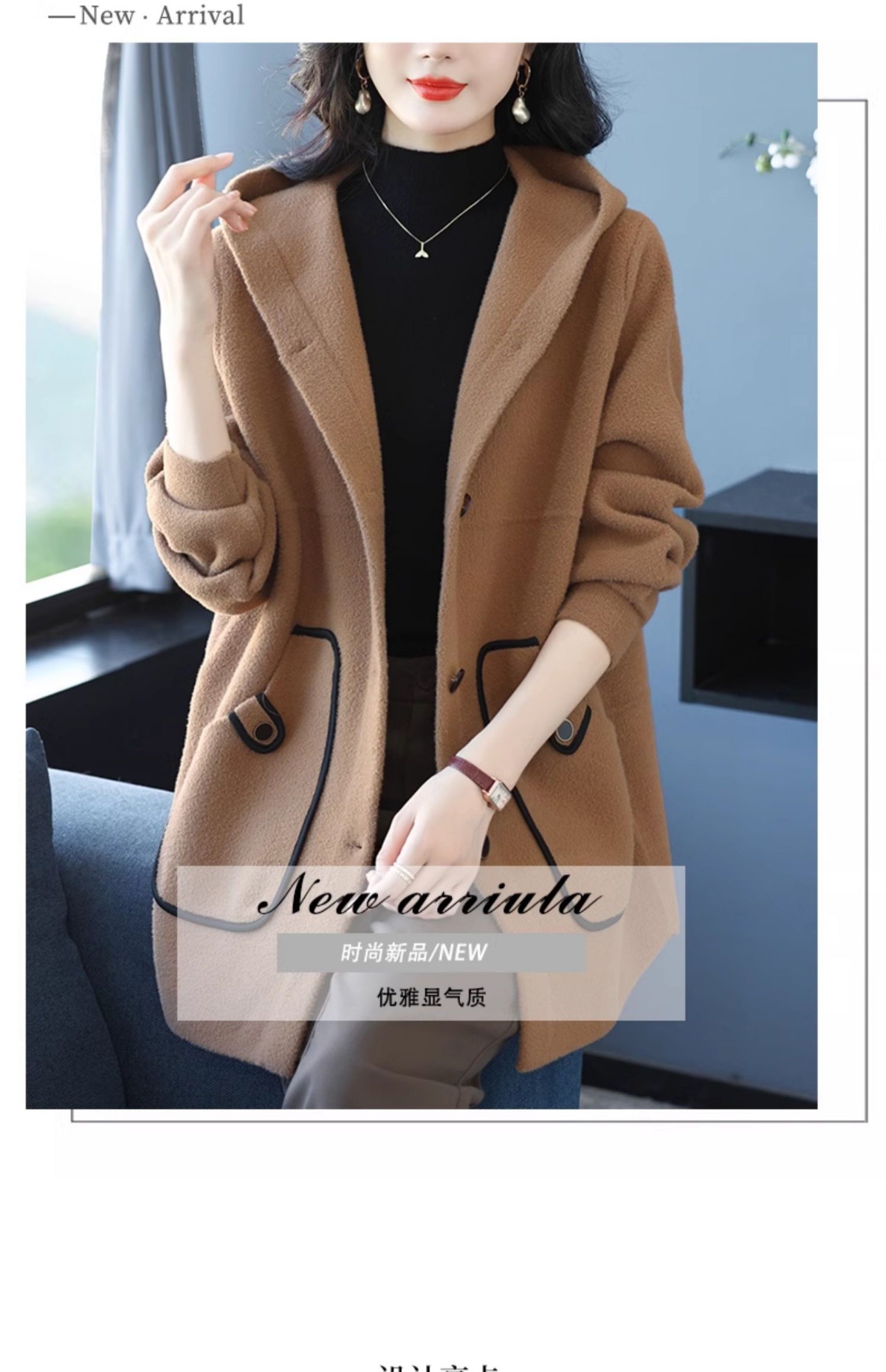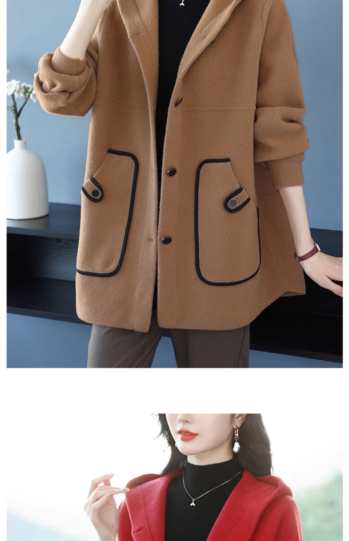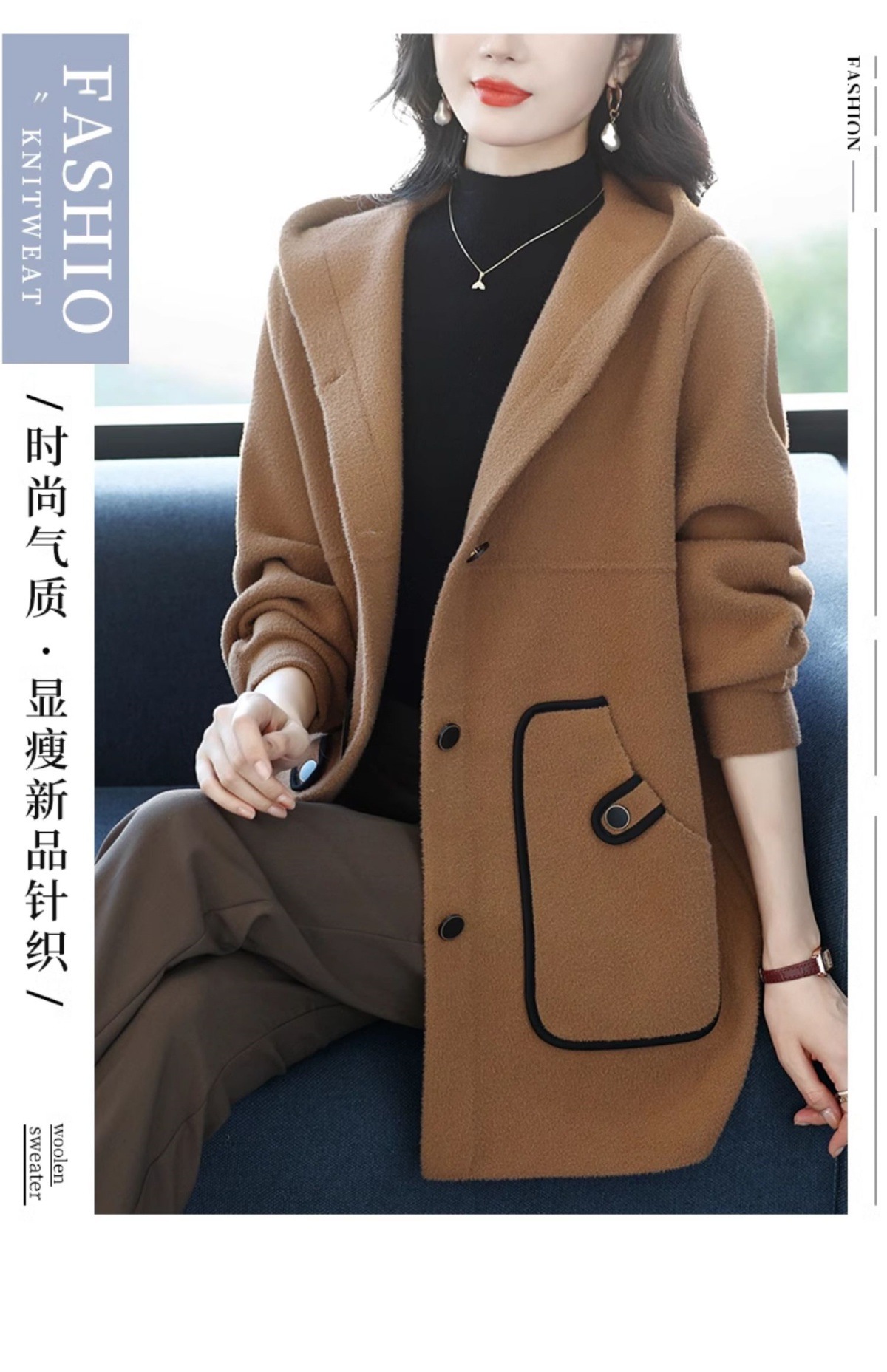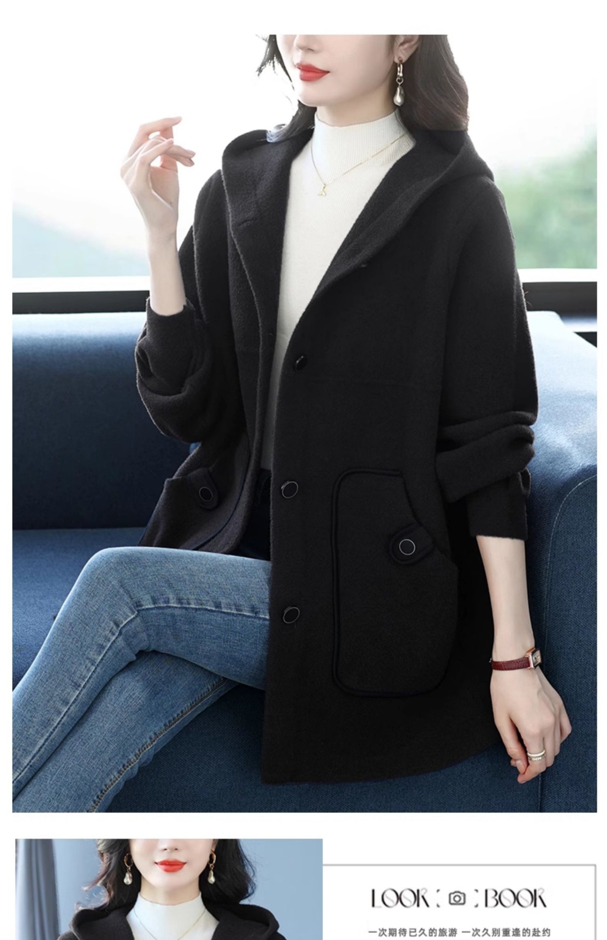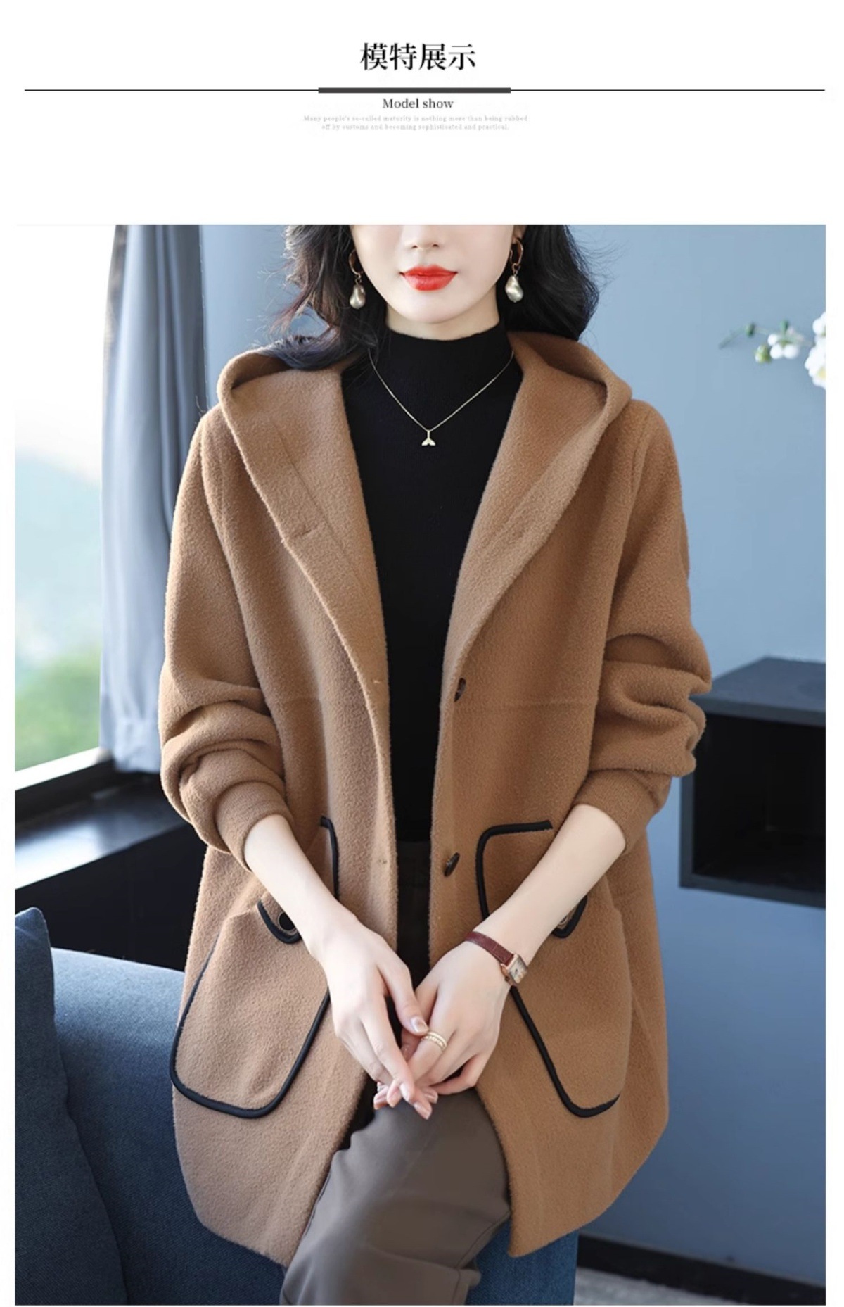 CC-10-5757气质小个子双面尼大衣女中长款2024年新款秋冬时尚宽松毛呢外套