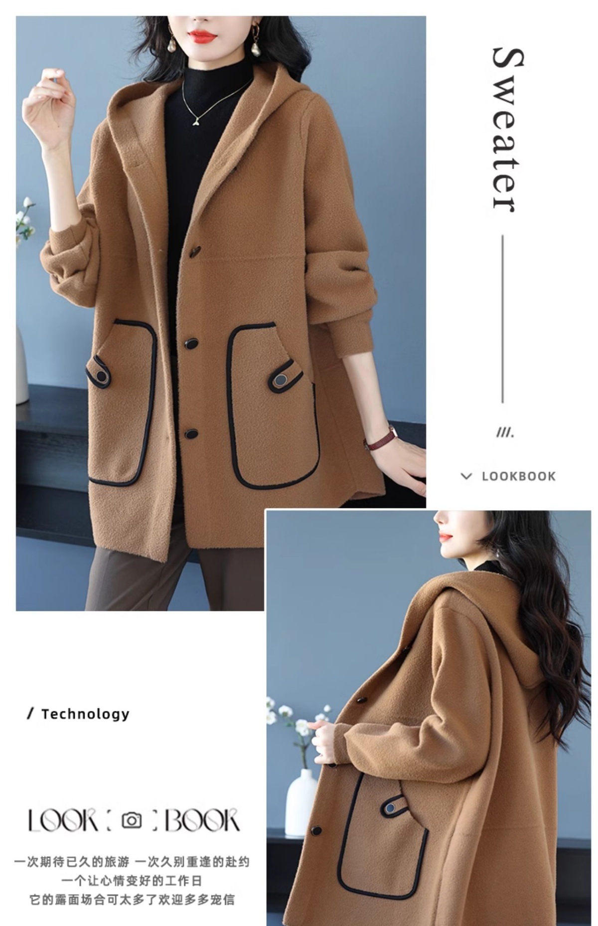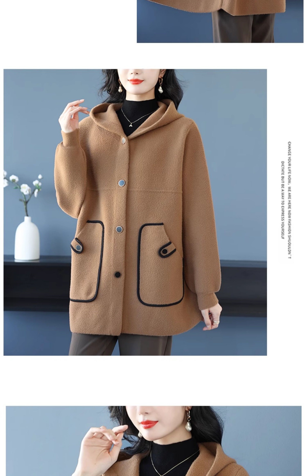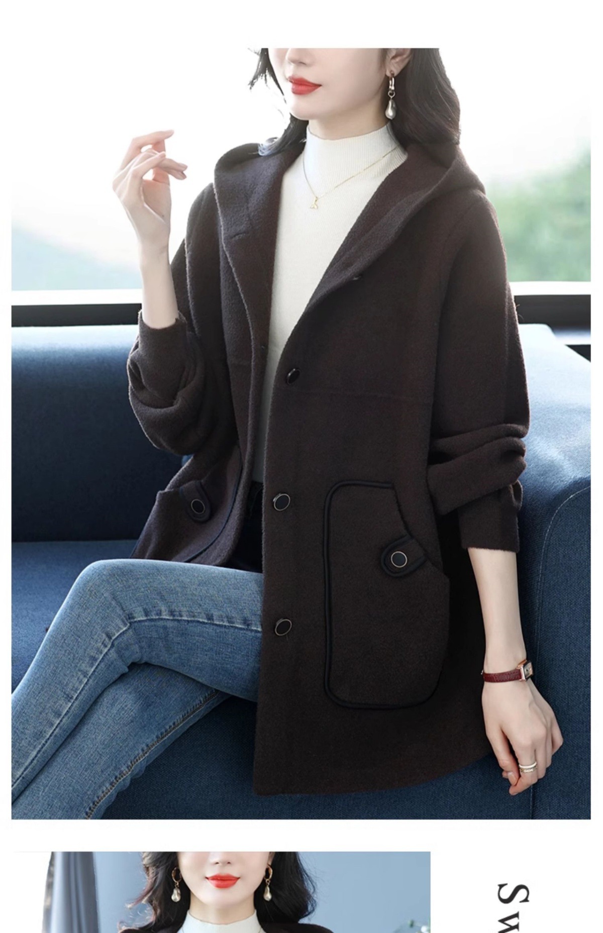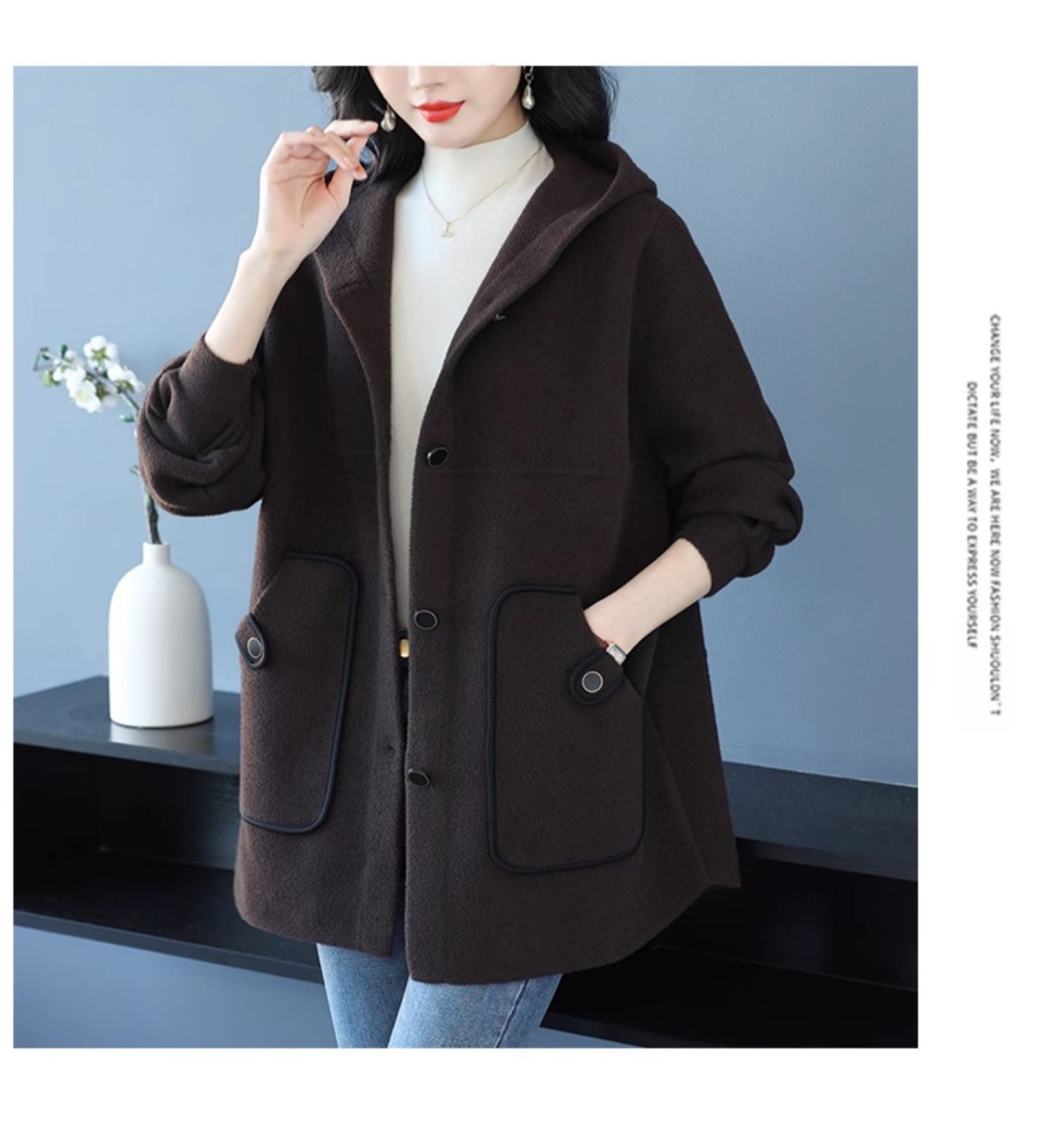CC-10-5757气质小个子双面尼大衣女中长款2024年新款秋冬时尚宽松毛呢外套