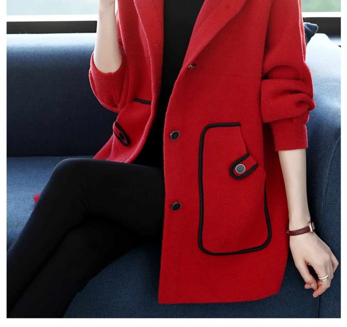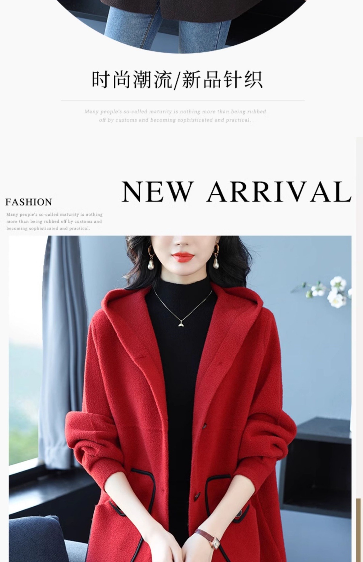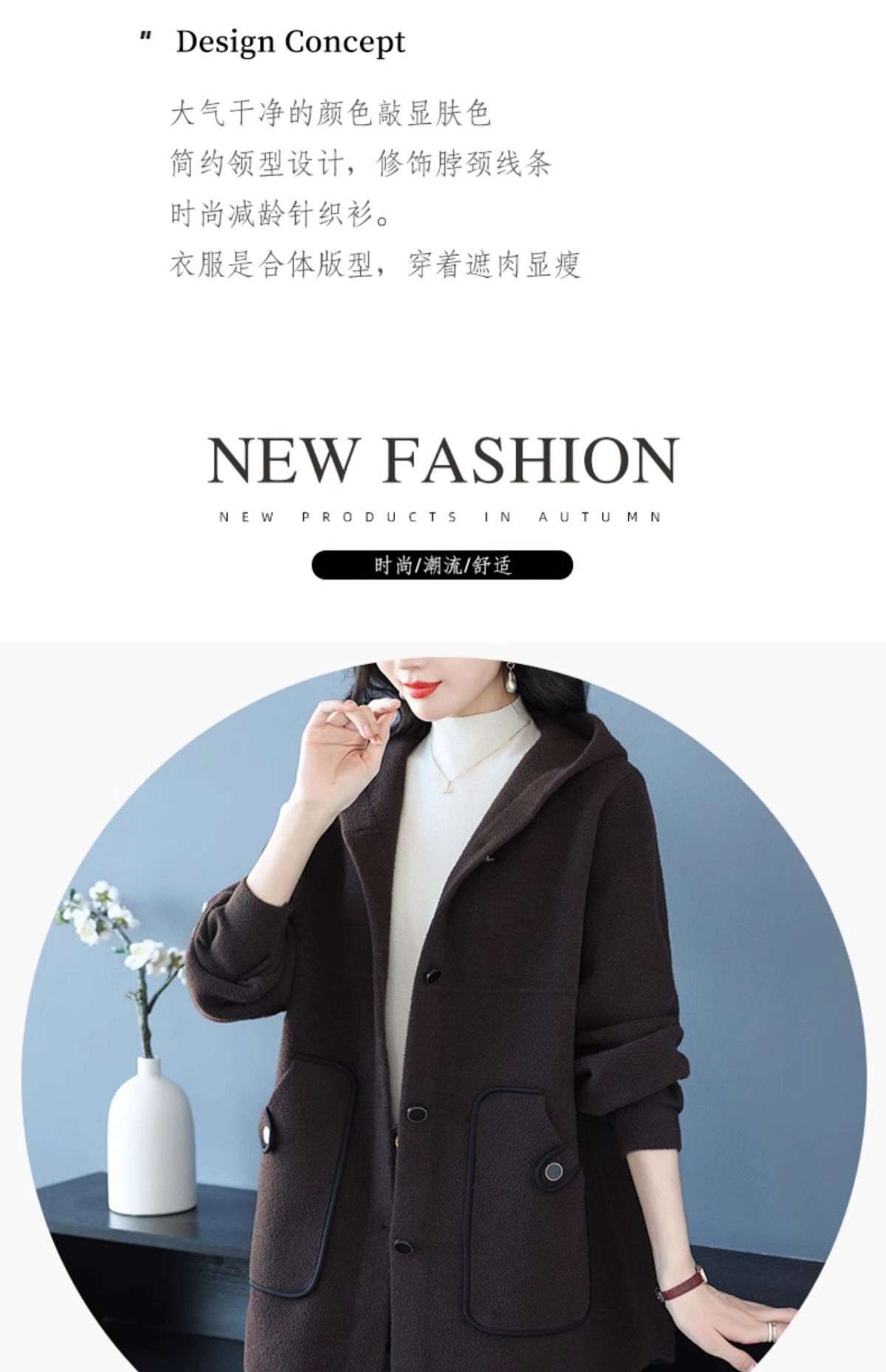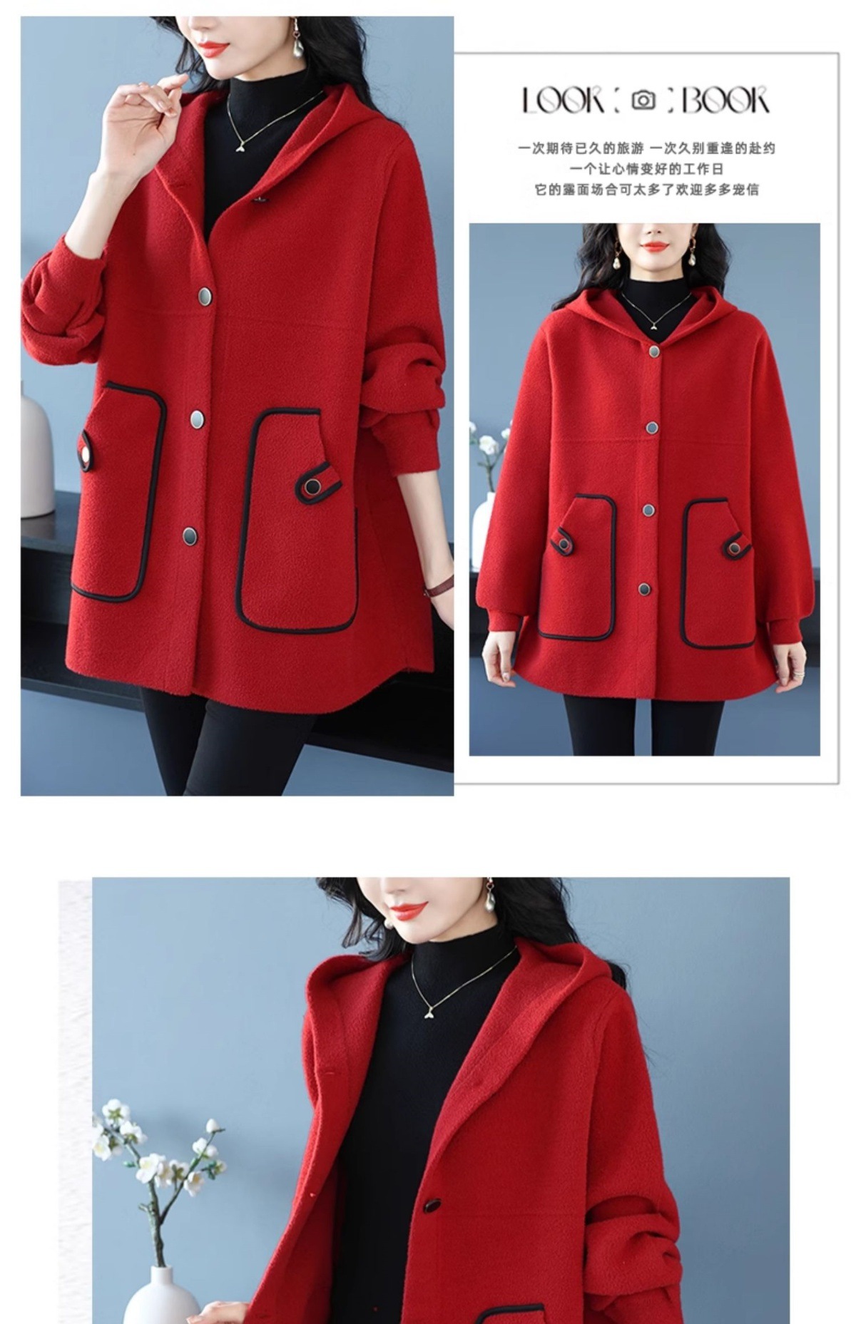 CC-10-5757气质小个子双面尼大衣女中长款2024年新款秋冬时尚宽松毛呢外套