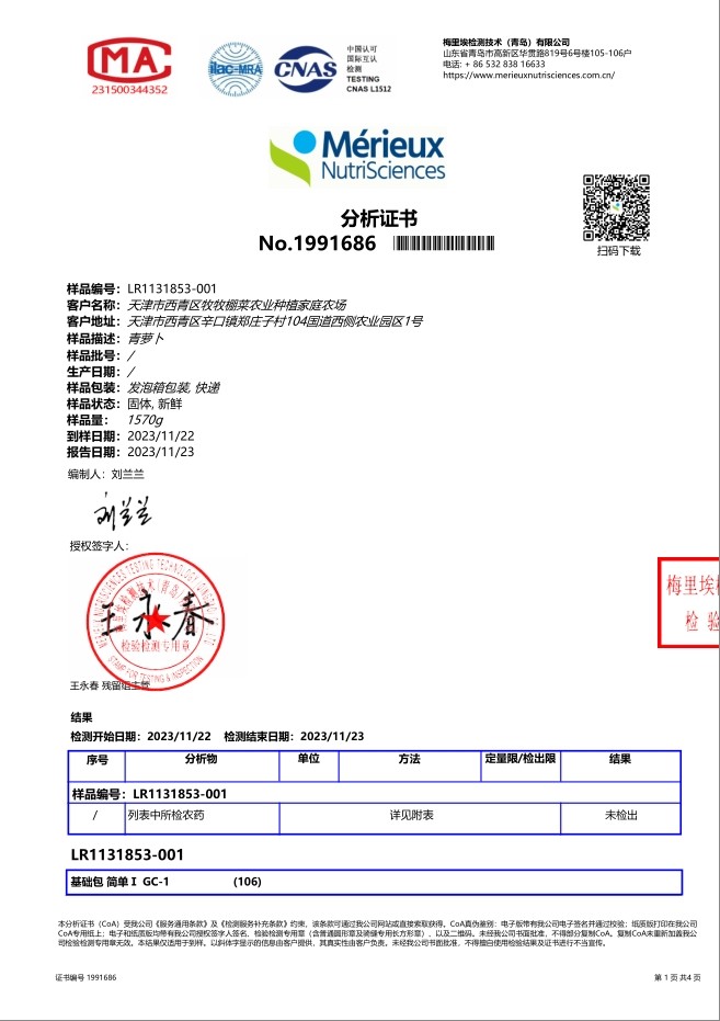 沙窝萝卜是天津市地方名特产品,我们的这款萝卜就产自沙窝萝卜的主要种植区辛口镇,土壤是上砂下粘的蒙金土,还能看到很多小贝壳在地面上,很适合种植萝卜,并且拿到了“沙窝萝卜”地理标志上标使用授权。