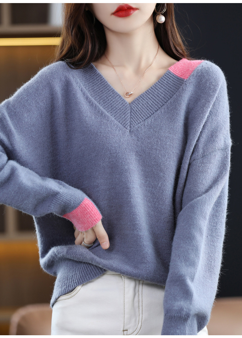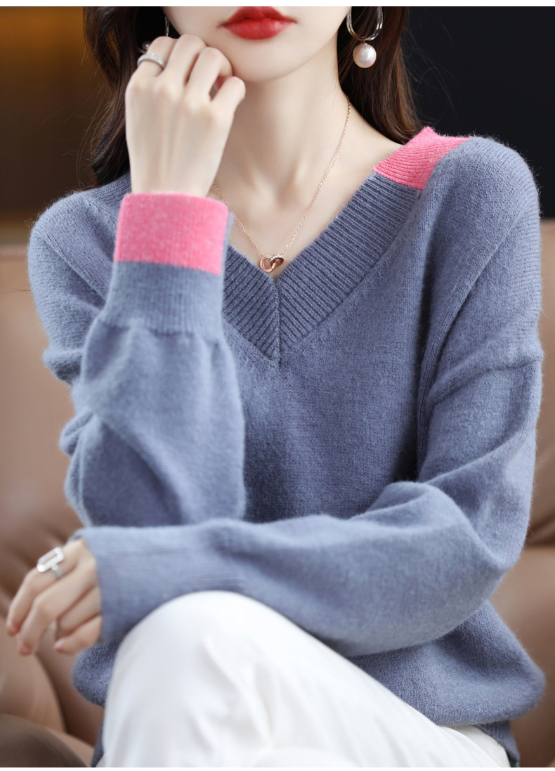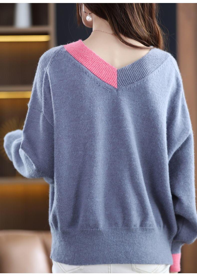 QHJY-JYZS2250新款韩版宽松套头针织衫拼接撞色外搭打底衫毛衣上衣
