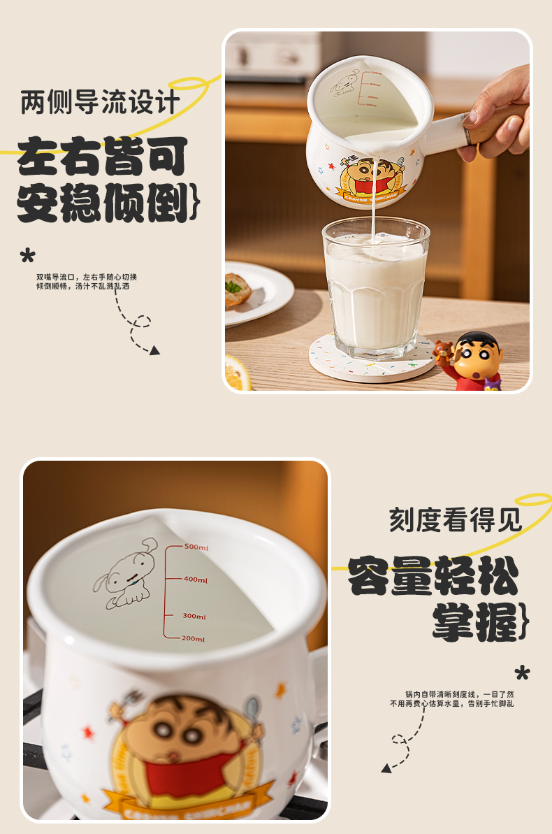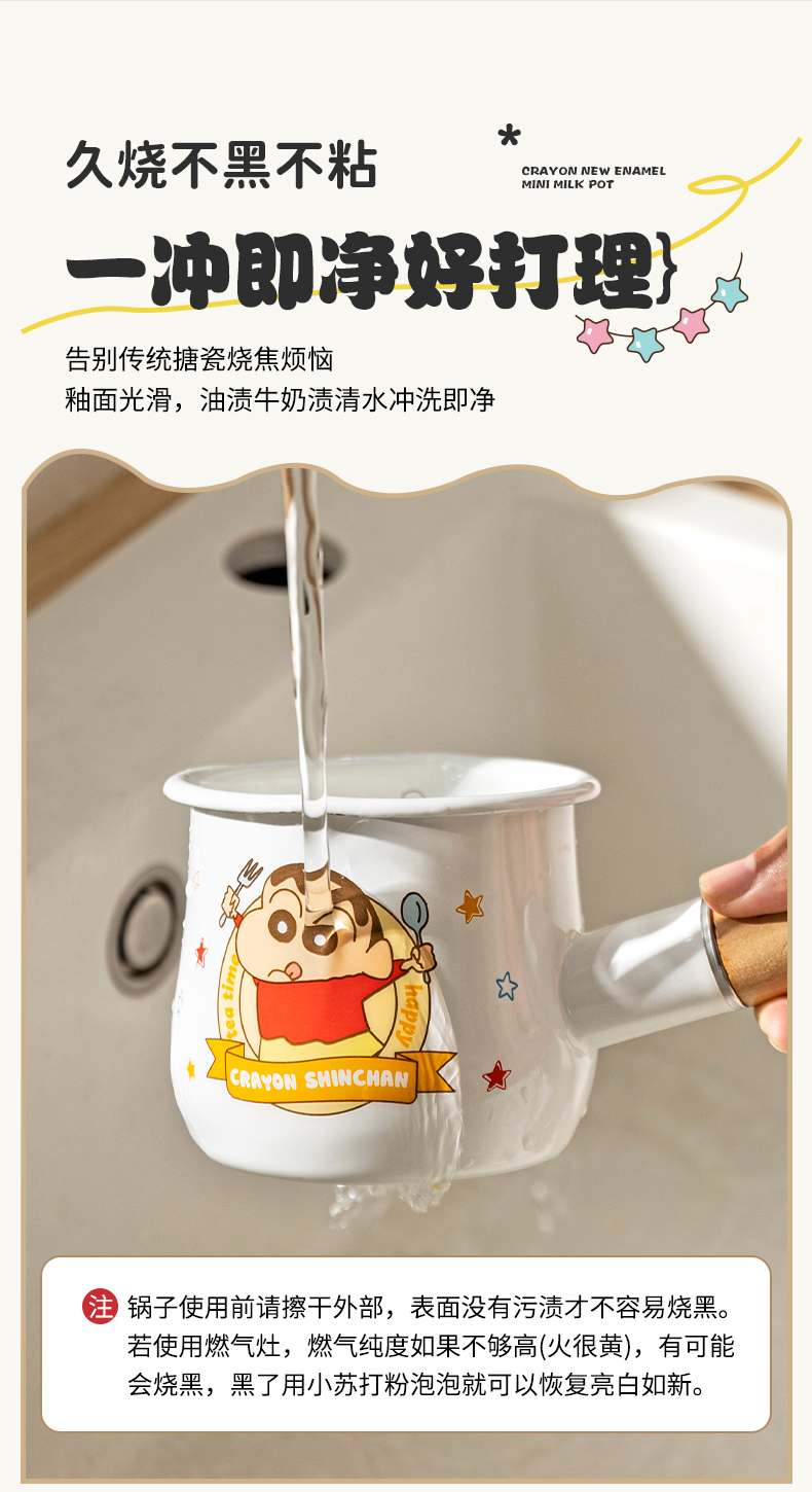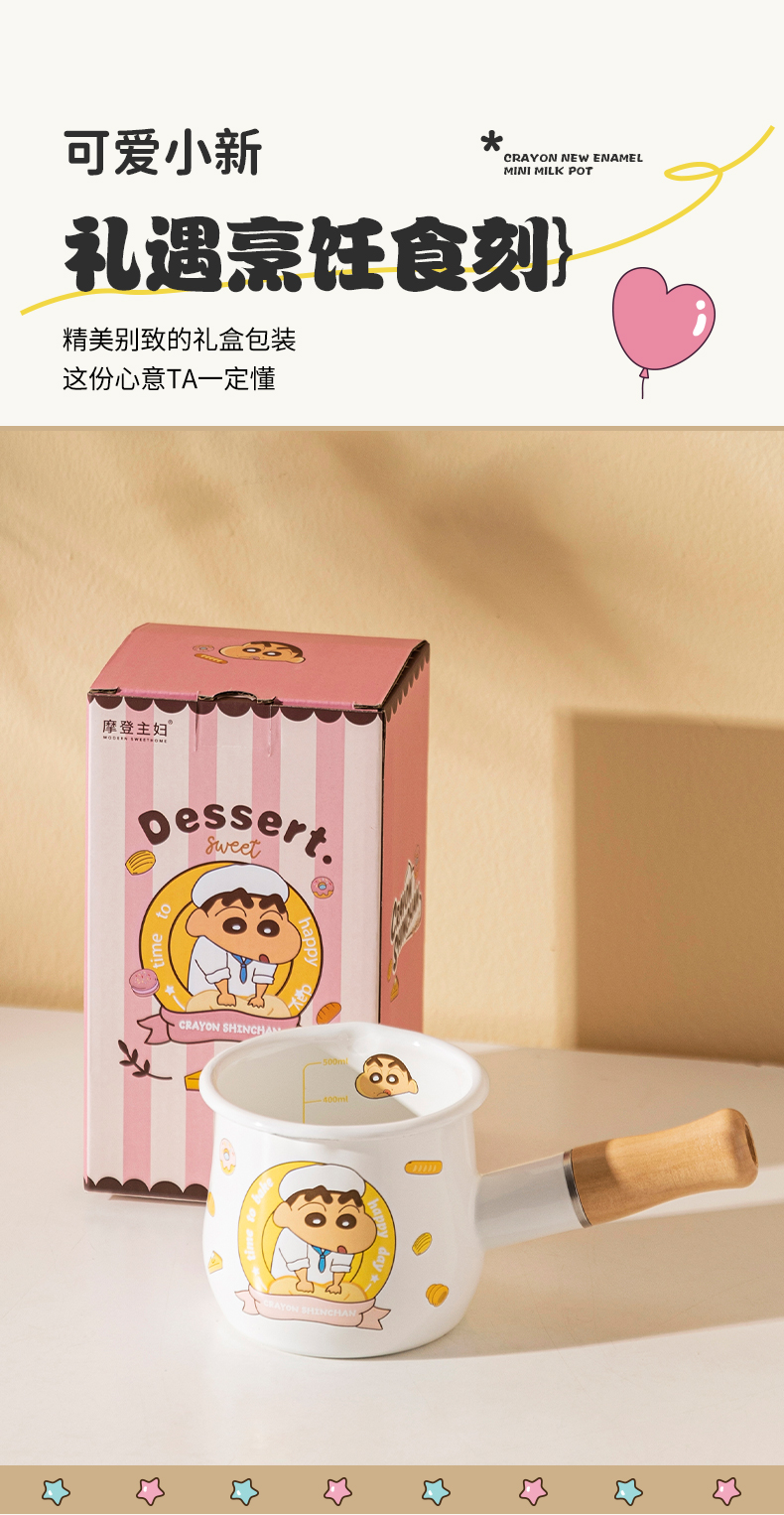 摩登主妇&蜡笔小新 搪瓷小奶锅热奶煮牛奶专用锅早餐辅食小锅