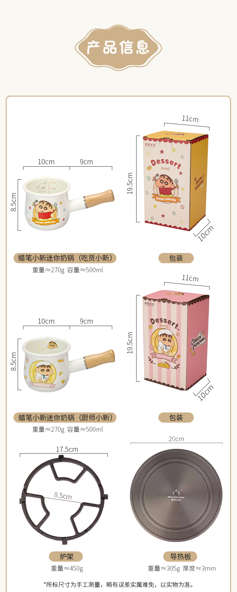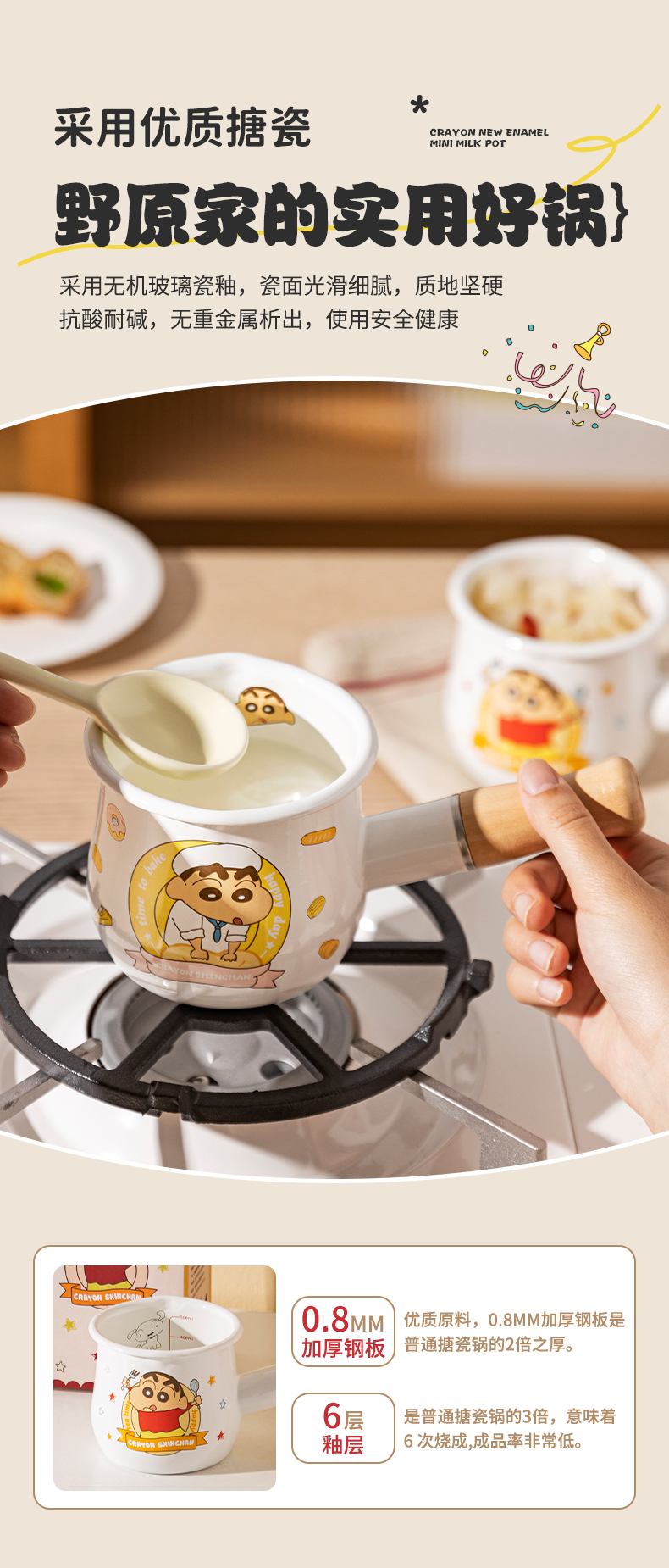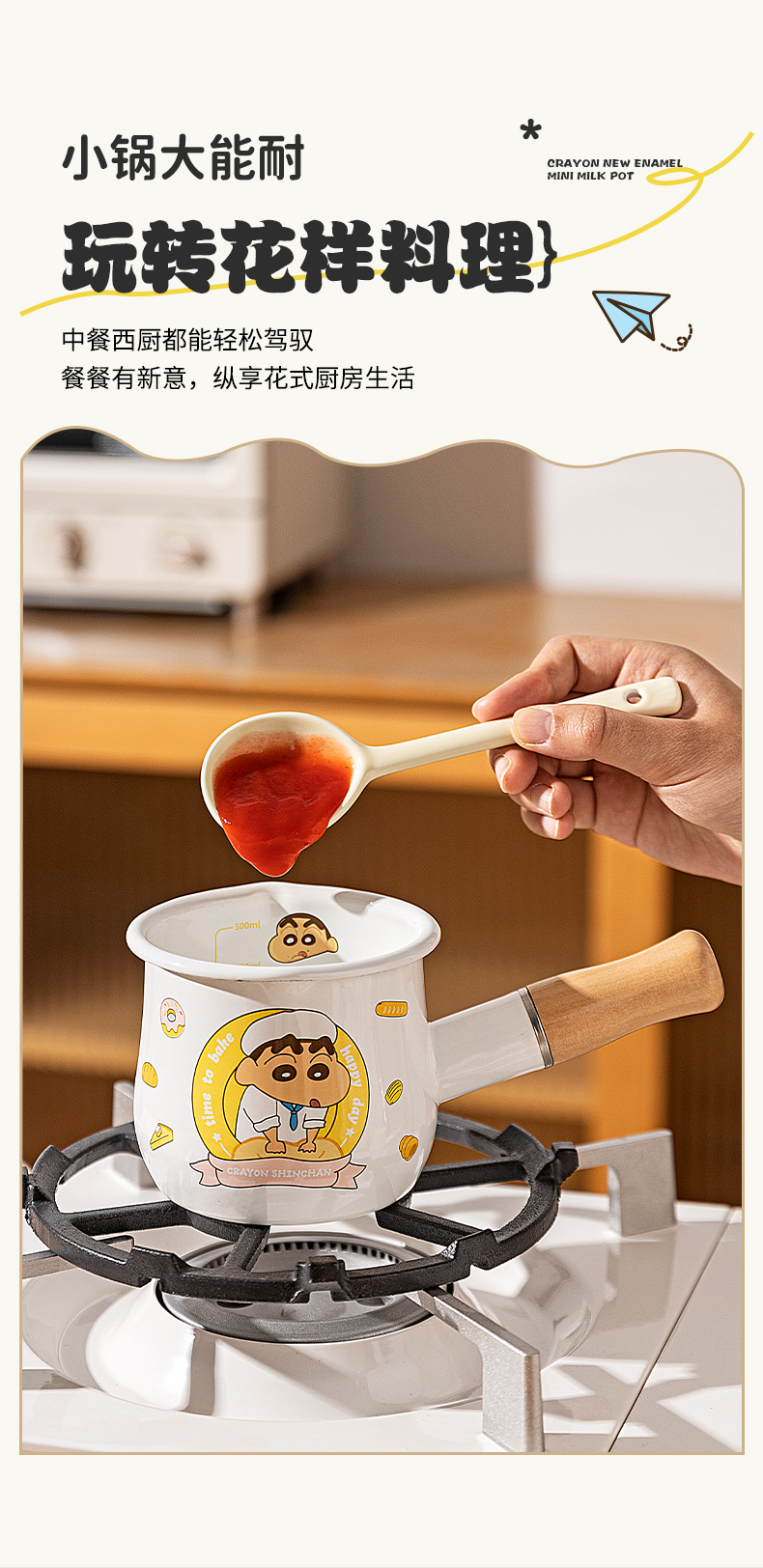 摩登主妇&蜡笔小新 搪瓷小奶锅热奶煮牛奶专用锅早餐辅食小锅