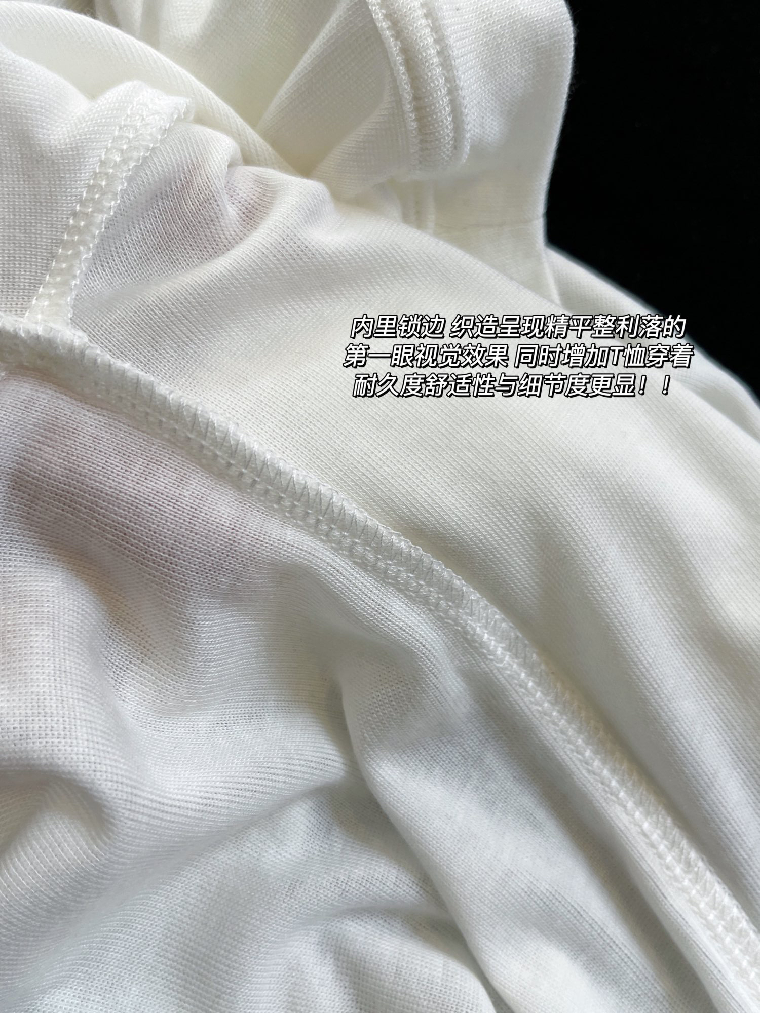 后领包条做光袖口➕领口全包边细节处理 袖口 内里锁边 织造呈现精平整利落的第一眼视觉效果 同时增加T恤穿着耐久度舒适性与细节度更显!!