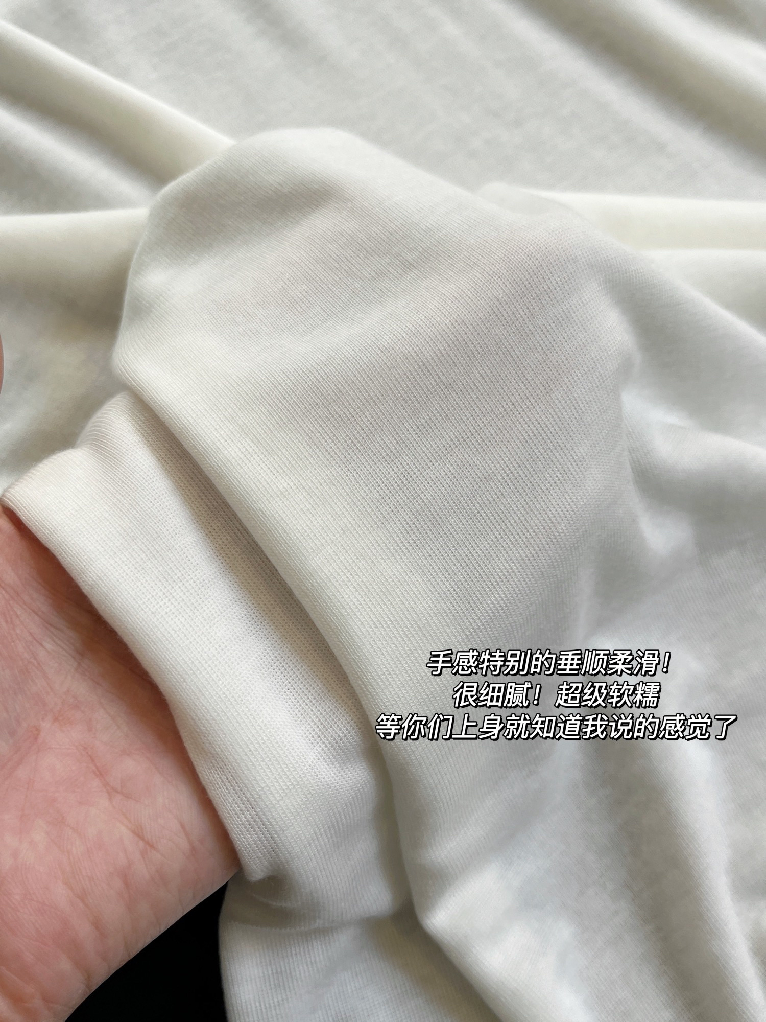 薄薄软软类似羊毛天丝的感觉!确实他含羊毛成分!手感特别的好!很好穿的呢种!特别的垂顺柔滑!很细腻!超级软糯等你们上身就知道我说的感觉了~